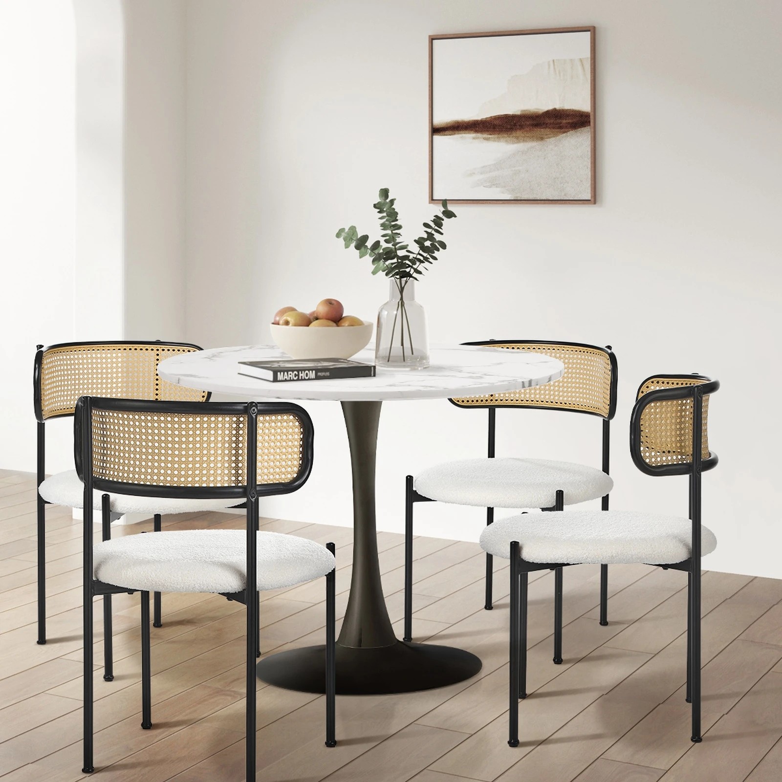 Oikiture 2x Dining Chair Round Boucle Kitchen Lounge Backrest Metal Legs - White