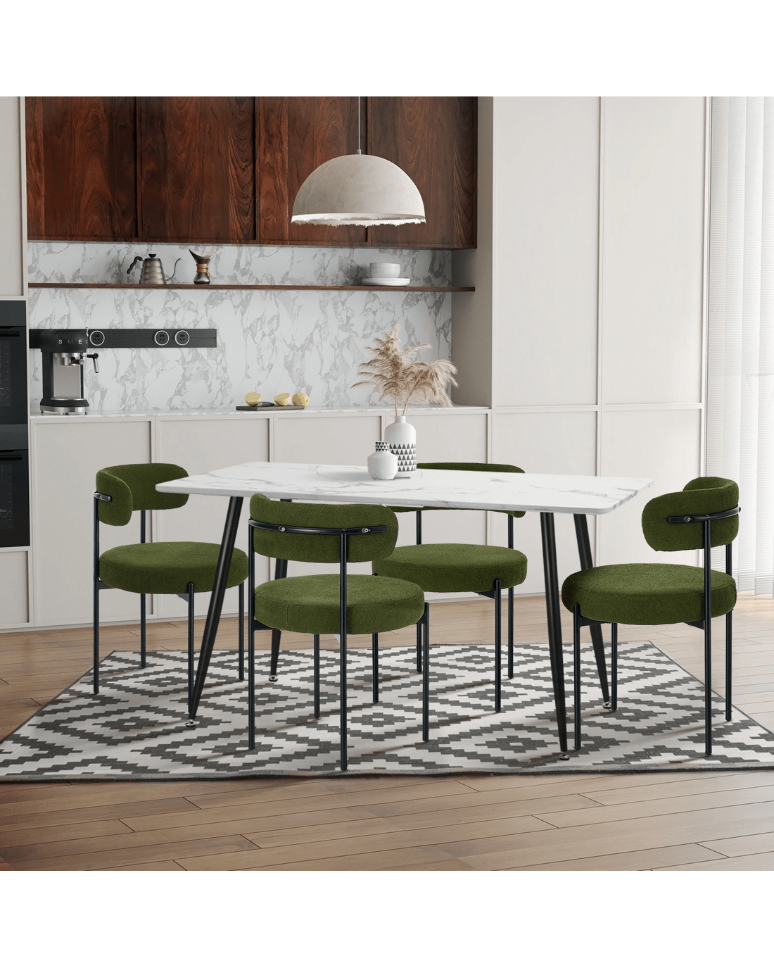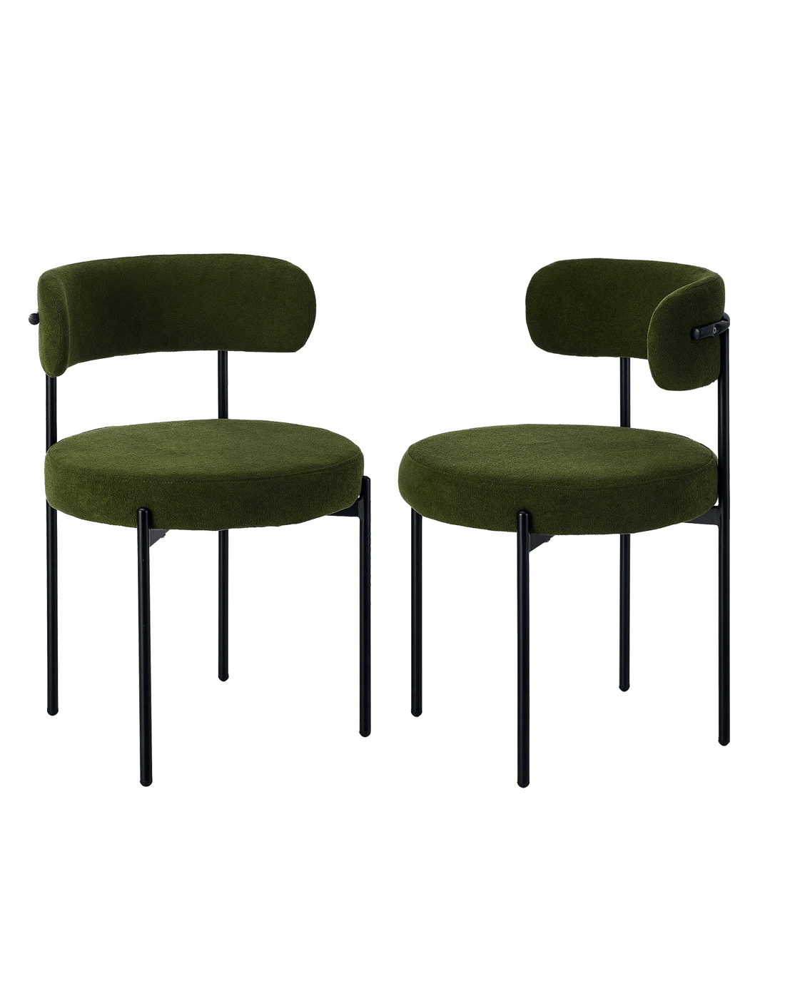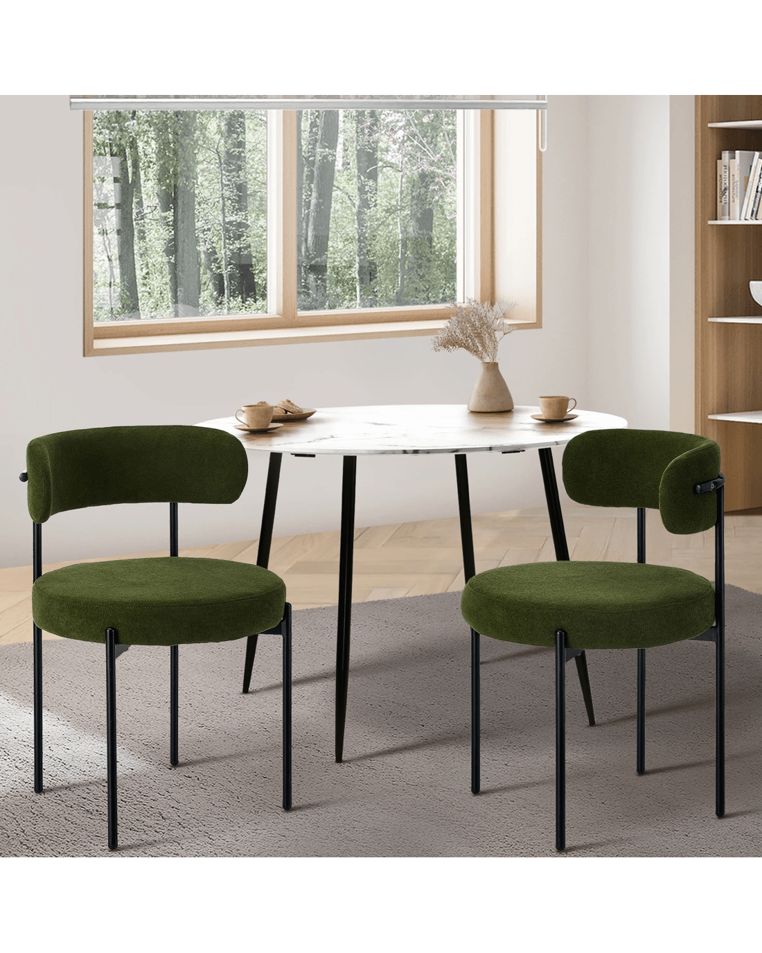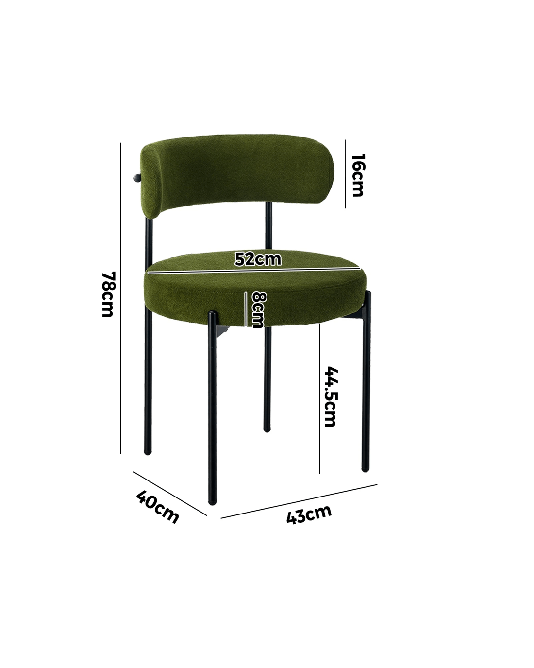 Sold by Kamprad's Oikos 1943Oikiture 2x Dining Chair Round Boucle Kitchen Lounge Seats Backrest - Green