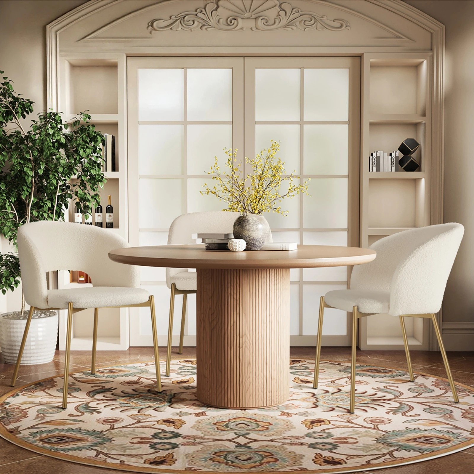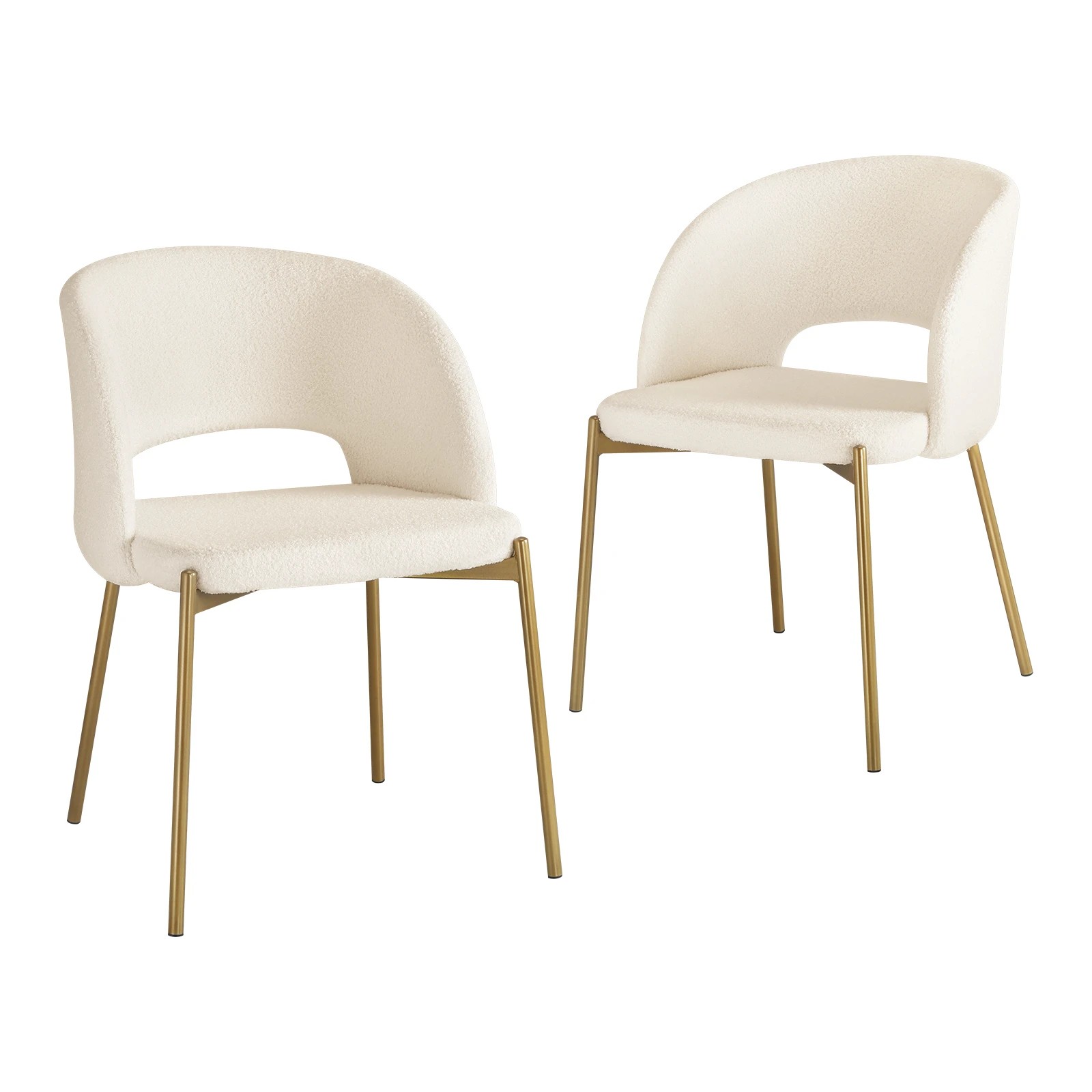 Oikiture 2x Dining Chair Sherpa Accent Chairs Tub Armchairs Gold Metal Legs - White