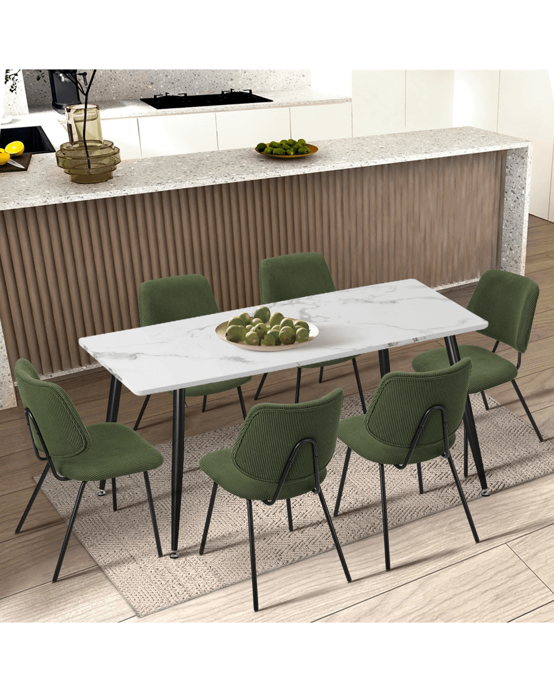 Sold by Kamprad's Oikos 1943Oikiture 2x Dining Chair Vintage Retro Polyester Kitchen Padded Lounge - Green