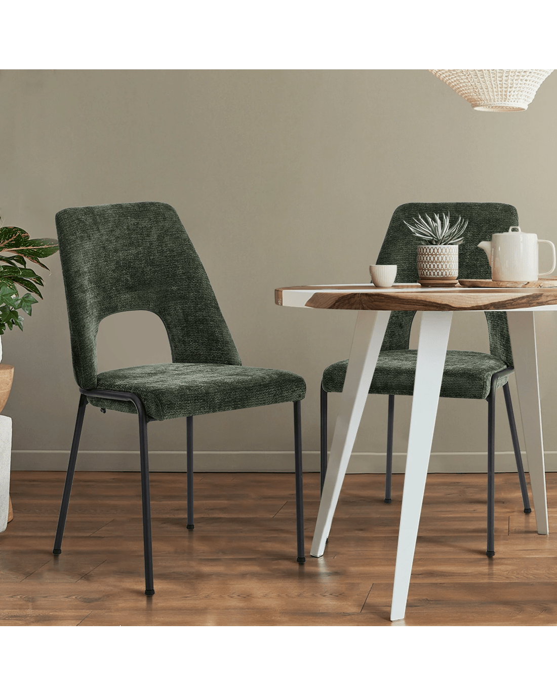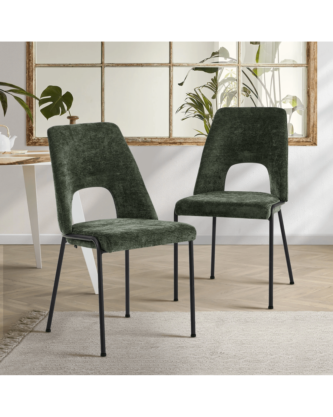 Sold by Kamprad's Oikos 1943Oikiture 2x Dining Chairs Chenille Fabric Kitchen Side Chair - Green