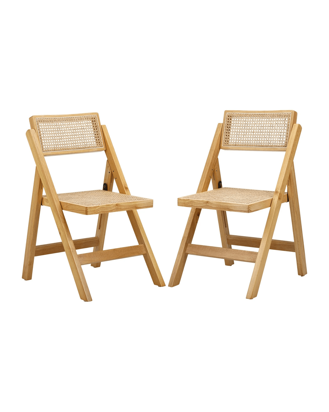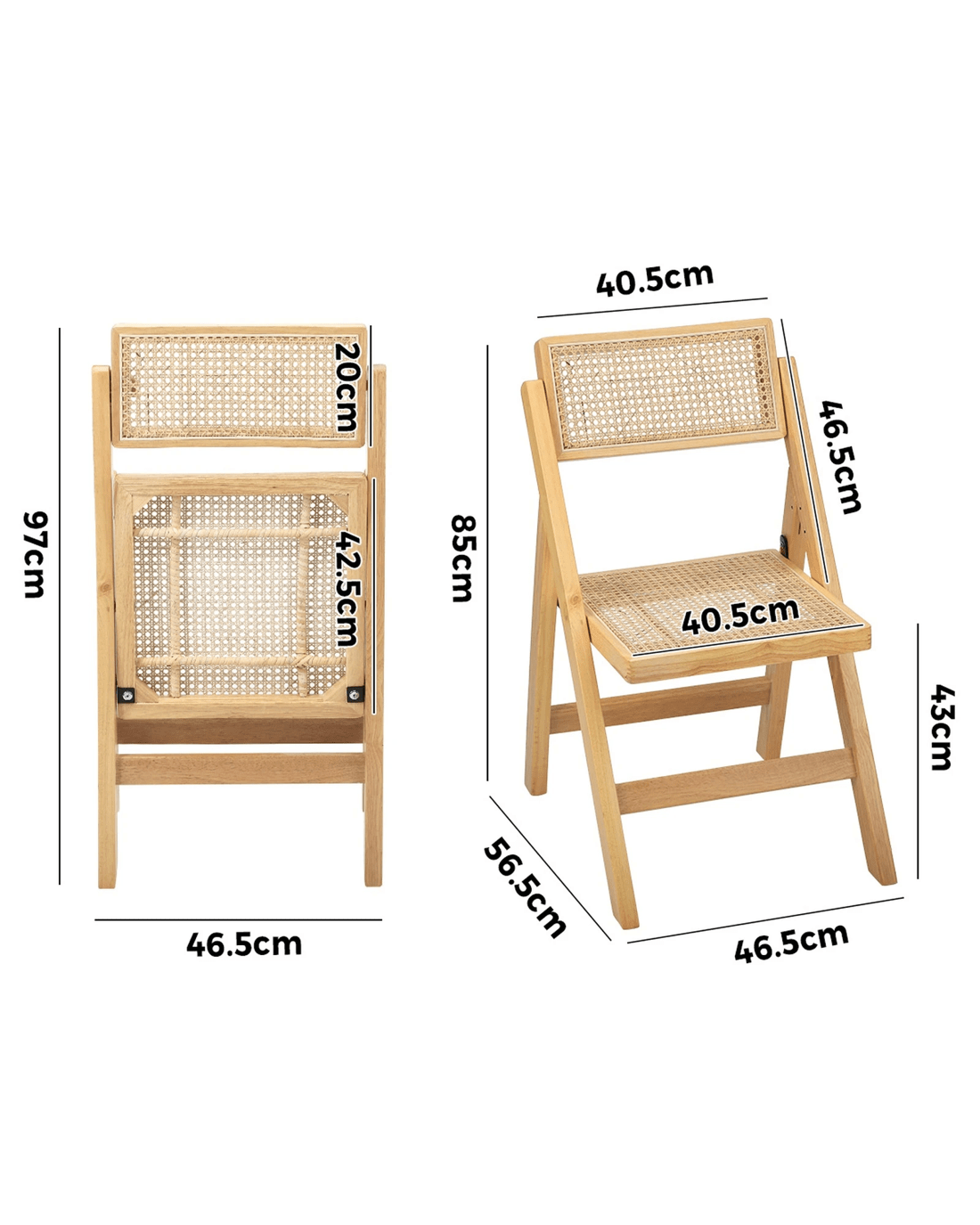 Oikiture 2x Dining Chairs Folding Rattan Chair Wooden Accent Chair - Natural