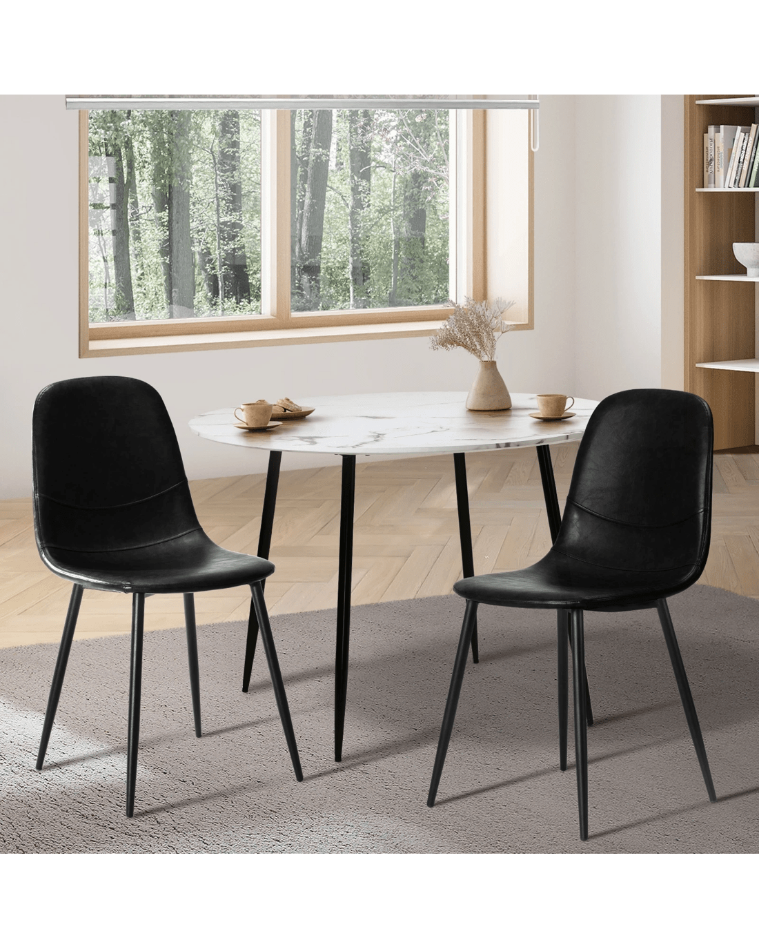 Crafted with high-quality polyurethane (PU) leather, these dining chairs exude an air of elegance and luxury. The smooth, easy-to-clean surface not only looks and feels like genuine leather but also makes maintenance a breeze. Sink into the generously padded seat and backrest and enjoy a comfortable dining experience.