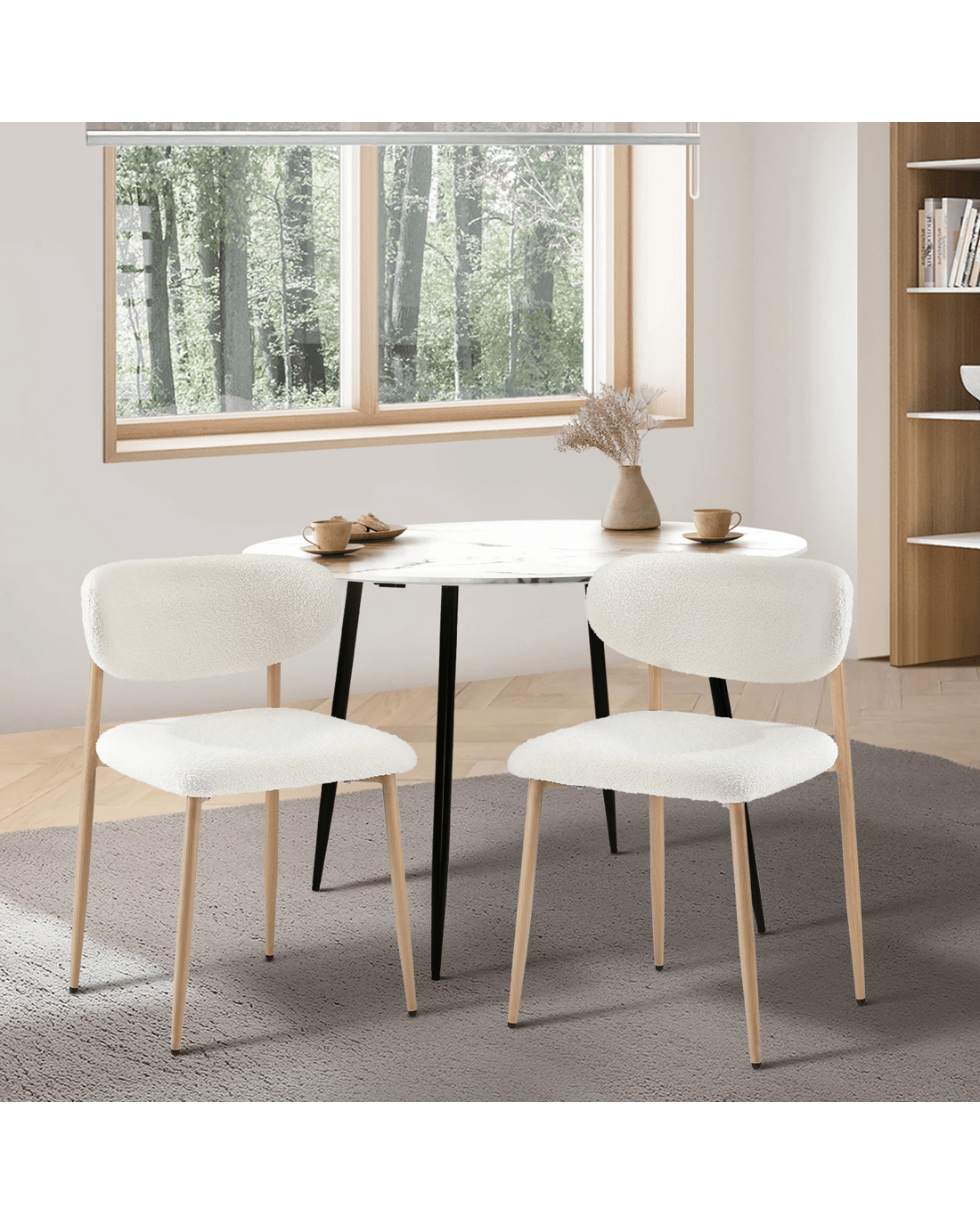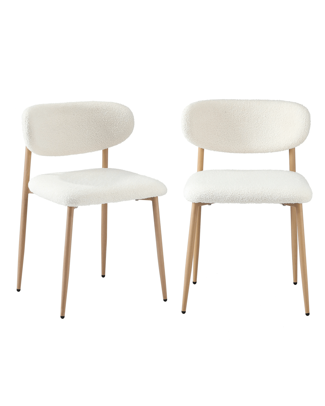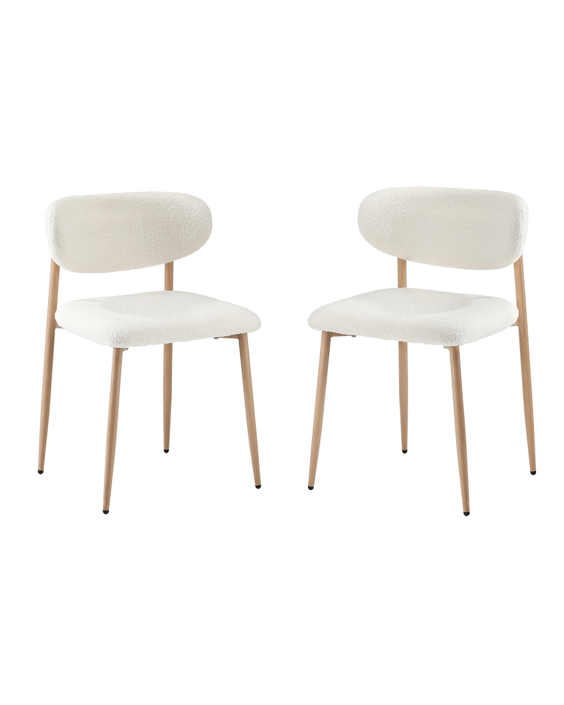 Oikiture 2x Dining Chairs Kitchen Chair Cafe Lounge Chair Boucle Timber-look Legs - White
