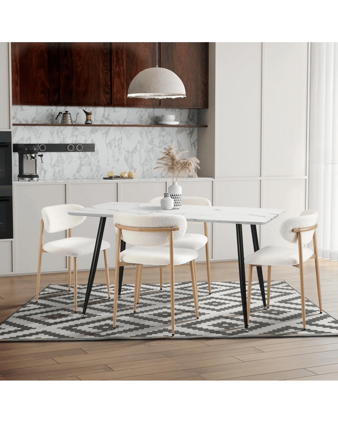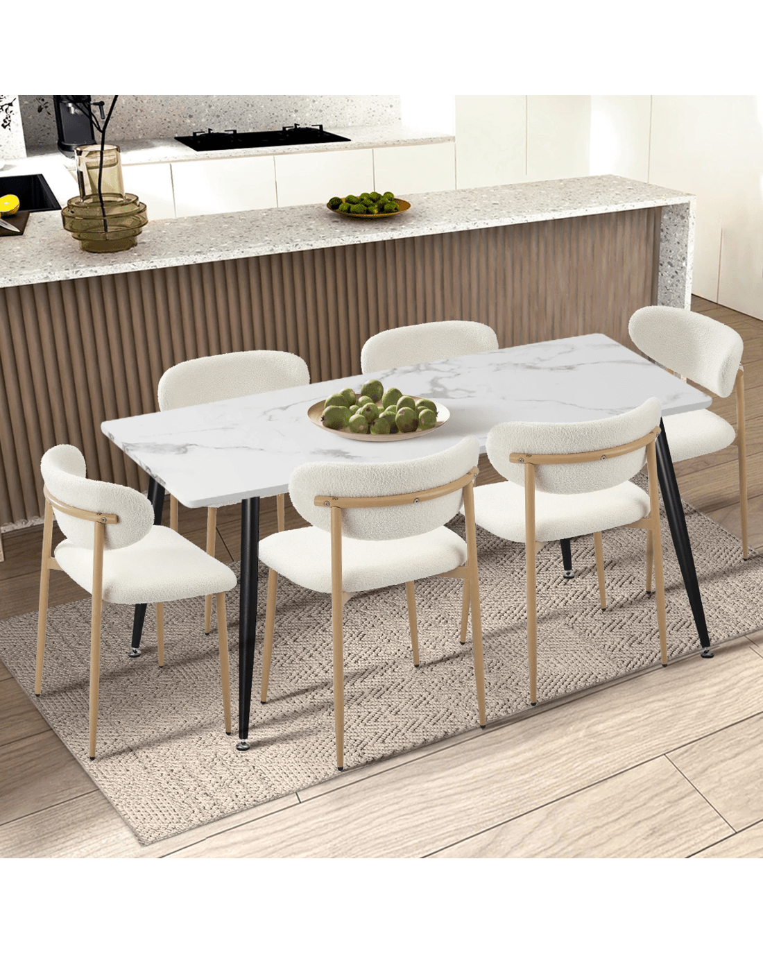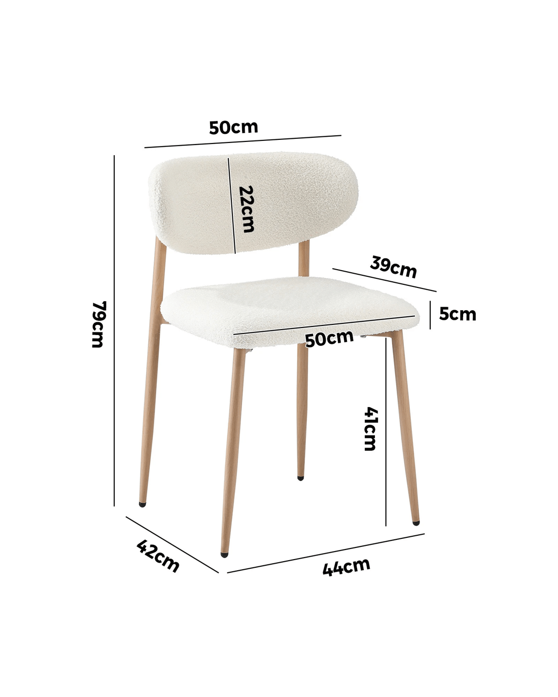 Oikiture 2x Dining Chairs Kitchen Chair Cafe Lounge Chair Boucle Timber-look Legs - White