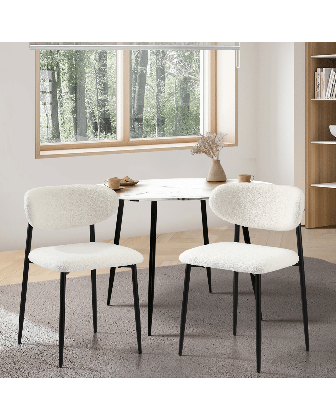 Sold by Kamprad's Oikos 1943Oikiture 2x Dining Chairs Kitchen Chair Cafe Lounge Chair Boucle - White