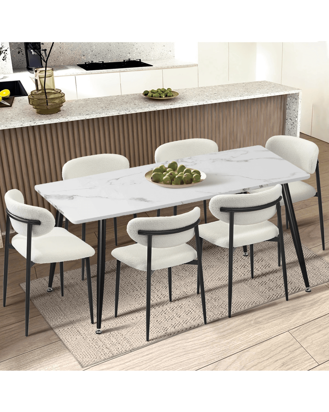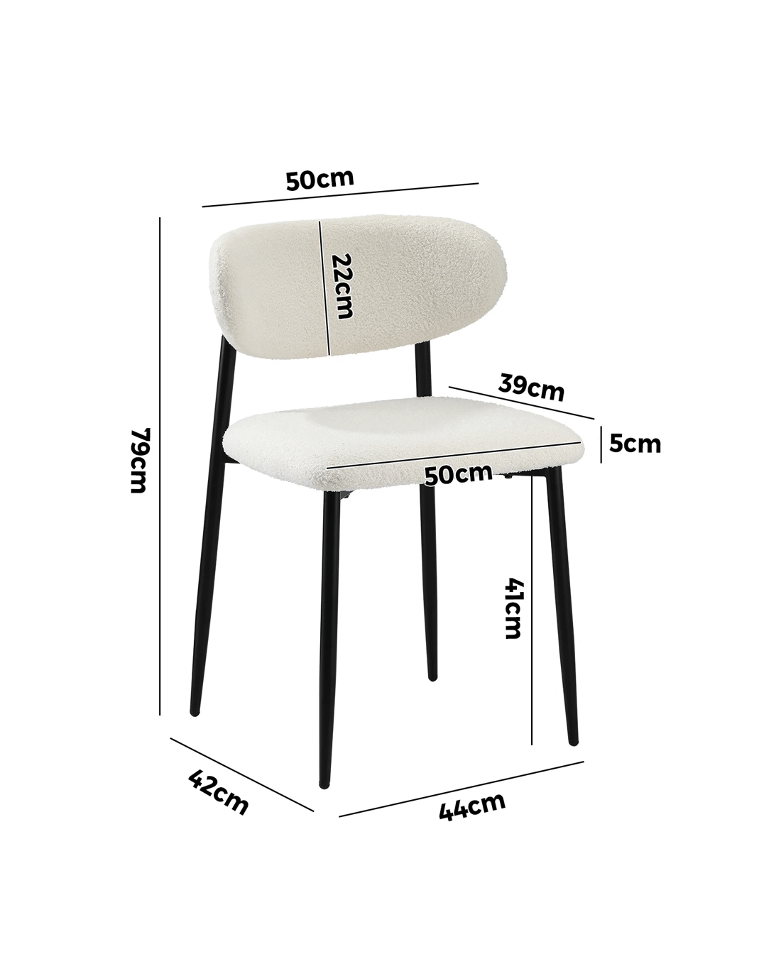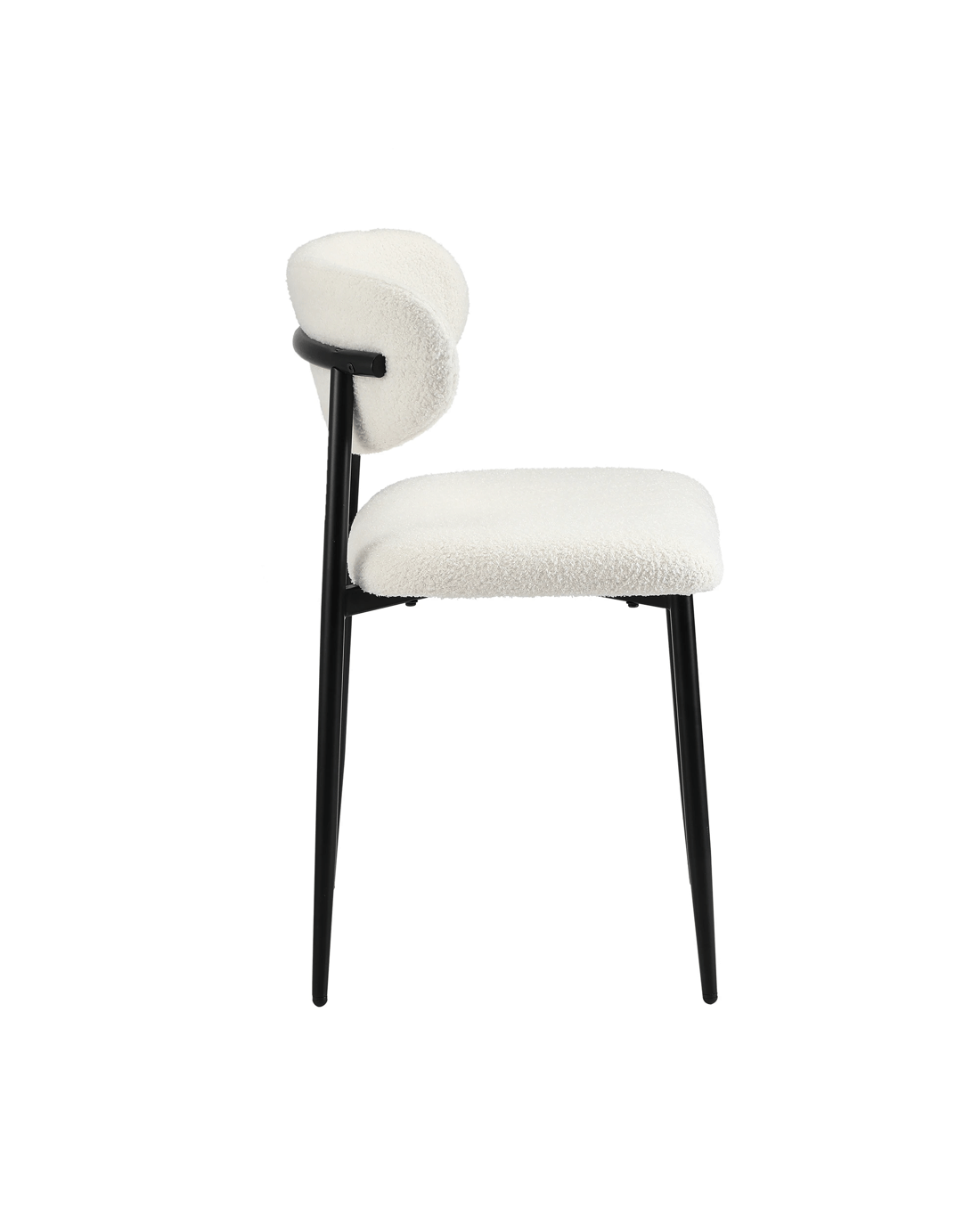 With its luxurious Boucle upholstery generously padded with high-density foam for the seat and backrest and, you're sitting on prime comfort. The contoured backrest also provides ample support for you to sit back and enjoy the seat. Soft and satisfying, the feeling is as good as savouring that delicious meal served to you. Aesthetically, the dining chair is simply captivating with either a sleek powder-coated metal legs in chic black or a natural wood colour finish to favour your decor (models specific) to accentuate the richness of the seat and curved backrest. Minimalist styling that renders maximum presence.