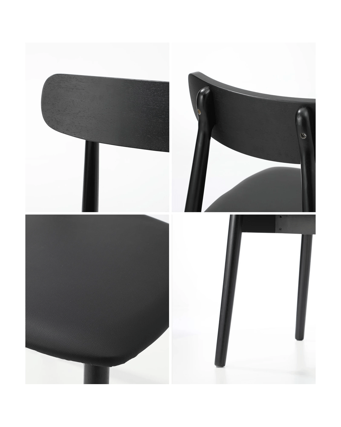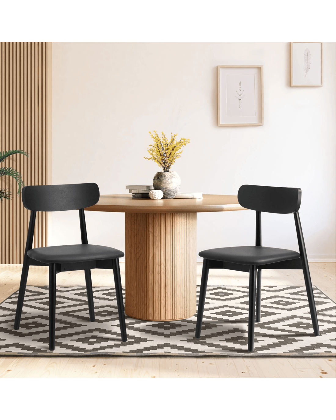 Sold by Kamprad's Oikos 1943Oikiture 2x Dining Chairs Kitchen Chair Pu Leather Solid Wood Cafe Lounge - Black