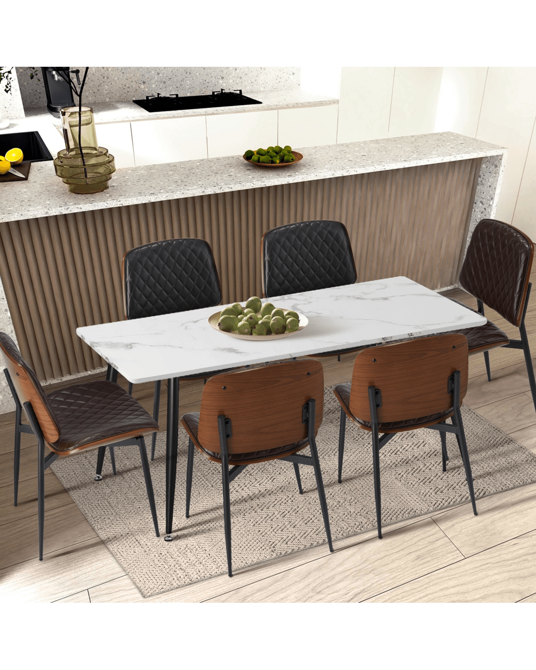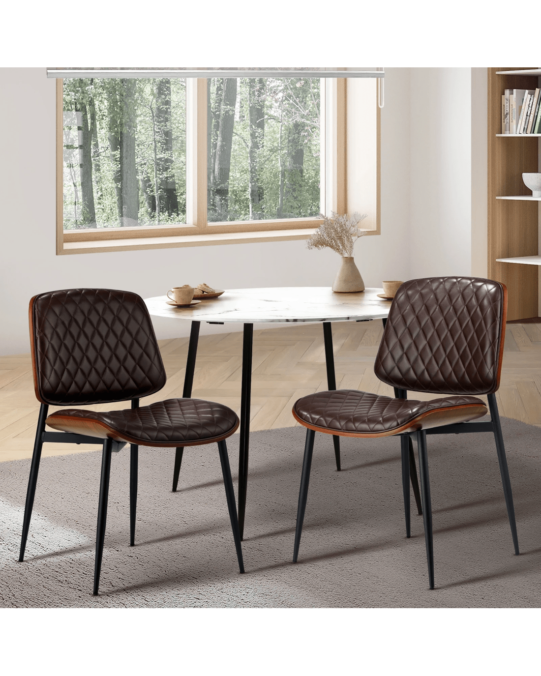 Crafted with both aesthetics and comfort in mind, these dining chairs offer a plush seating experience with the smooth and easy-to-maintain PU leather. The plywood frame guarantees stability, and the straight metal legs not only contribute to the chair's durability but also infuse a modern and timeless charm.