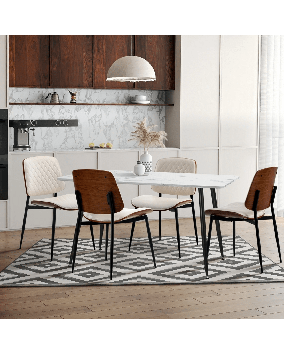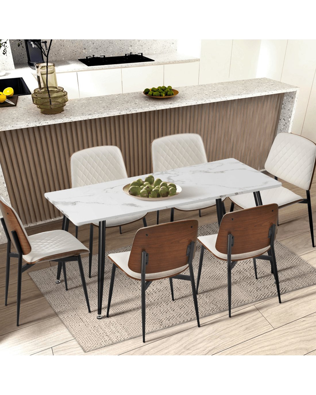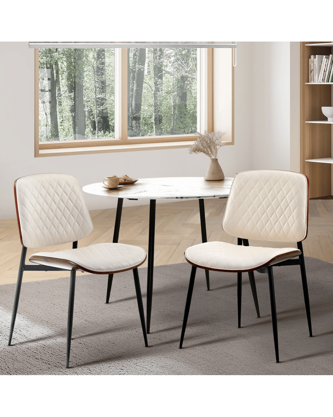 Crafted with both aesthetics and comfort in mind, these dining chairs offer a plush seating experience with the smooth and easy-to-maintain PU leather. The plywood frame guarantees stability, and the straight metal legs not only contribute to the chair's durability but also infuse a modern and timeless charm.