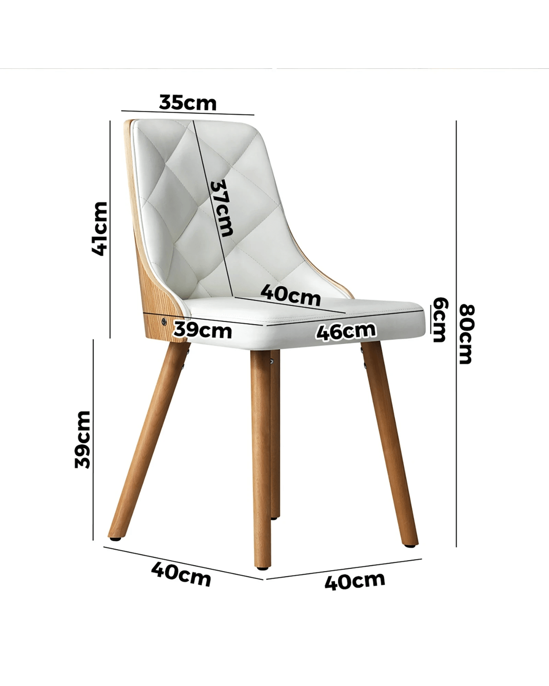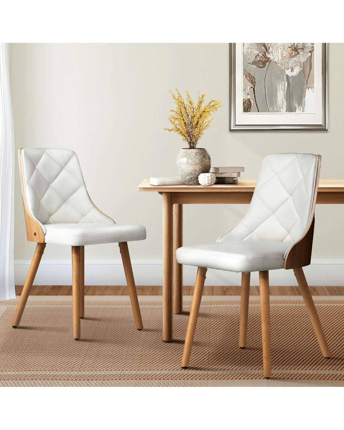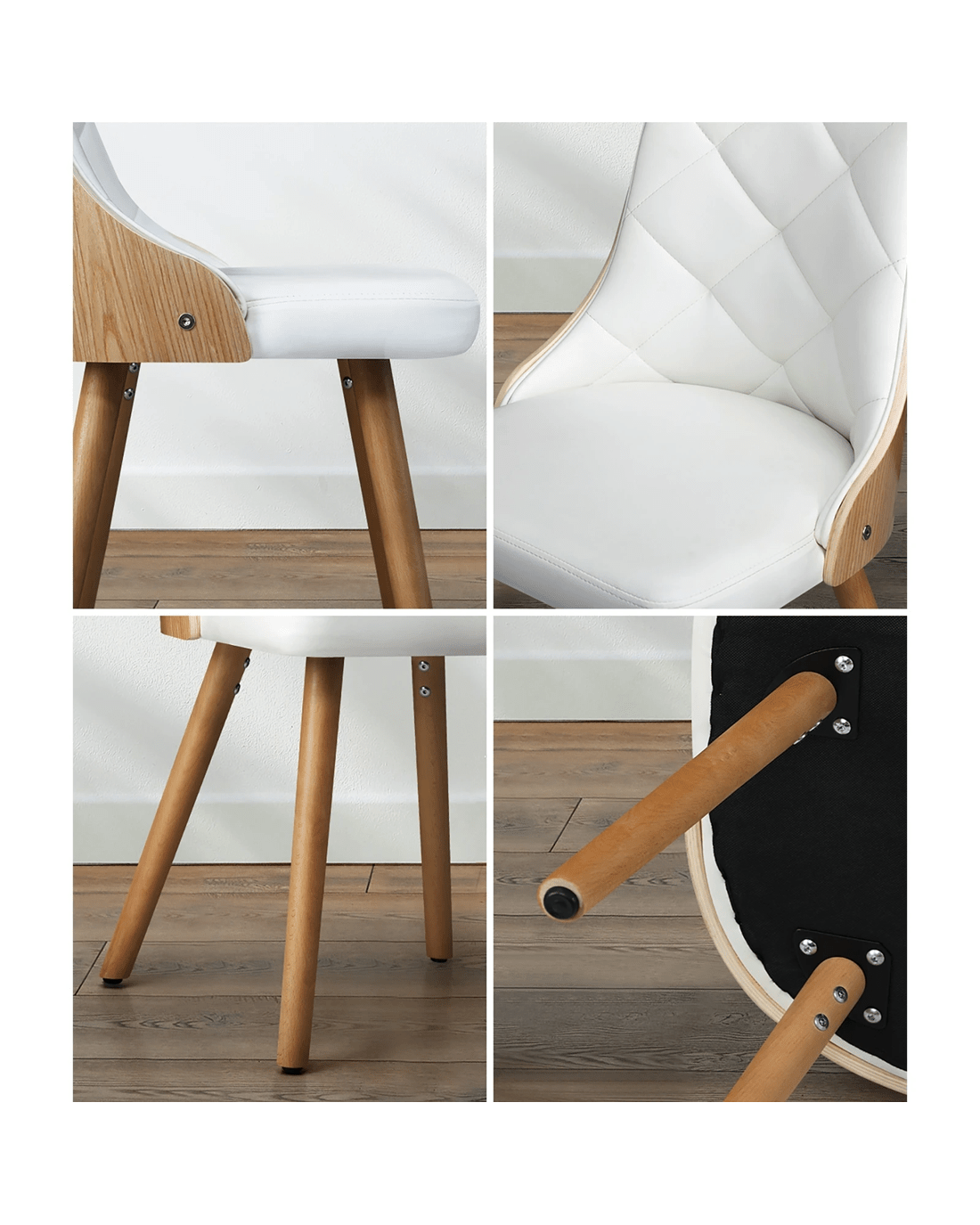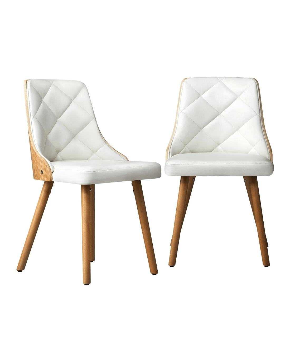 Oikiture 2x Dining Chairs Wooden Kitchen Chair Cafe Faux Pu Leather Padded Seat - White