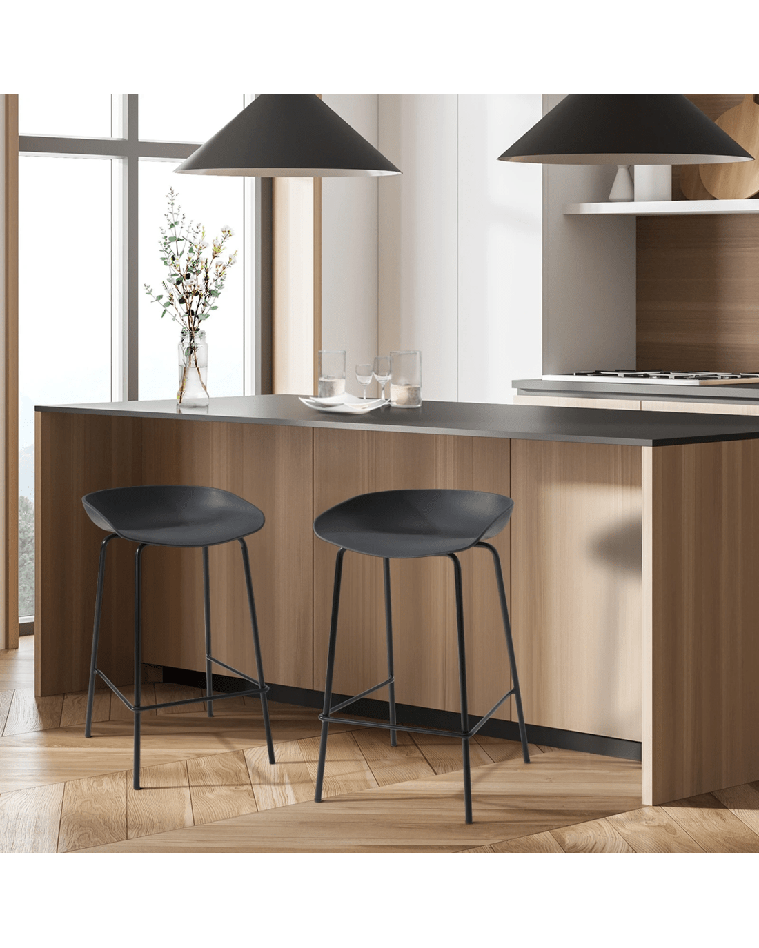 Designed for both comfort and functionality, the plastic seats offer a comfortable and easy-to-clean surface, making them ideal for everyday use. Whether you're enjoying a casual meal, entertaining guests, or simply relaxing with a drink, these bar stools are the perfect seating solution.