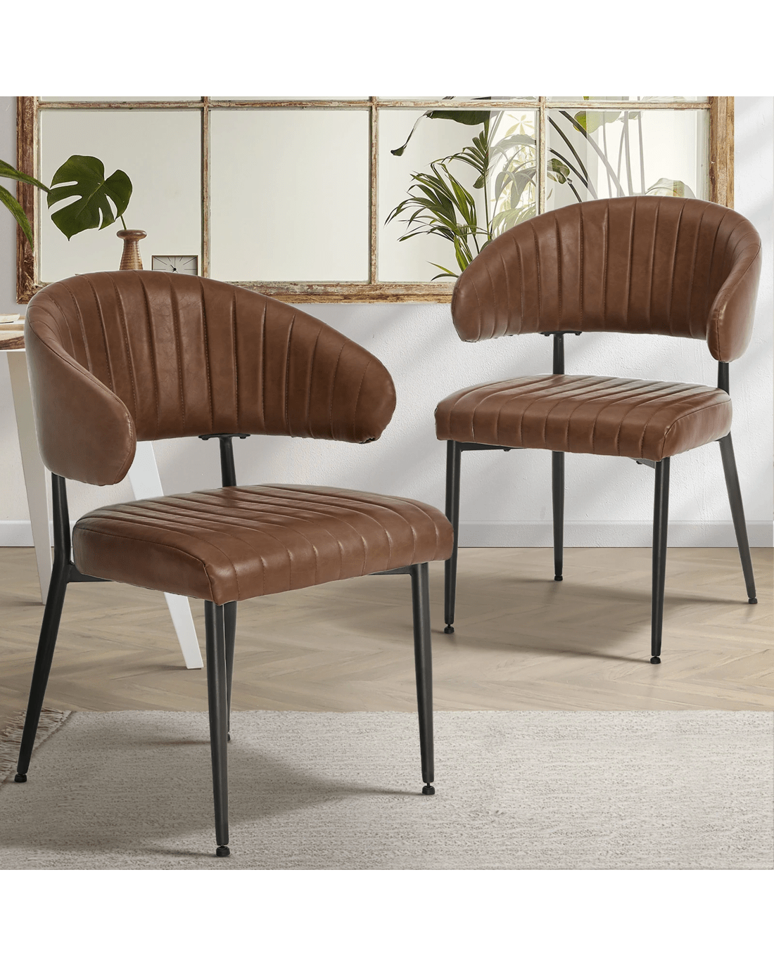 Sold by Kamprad's Oikos 1943Oikiture 2x PU Leather Dining Chair Kitchen Padded Seat - Brown