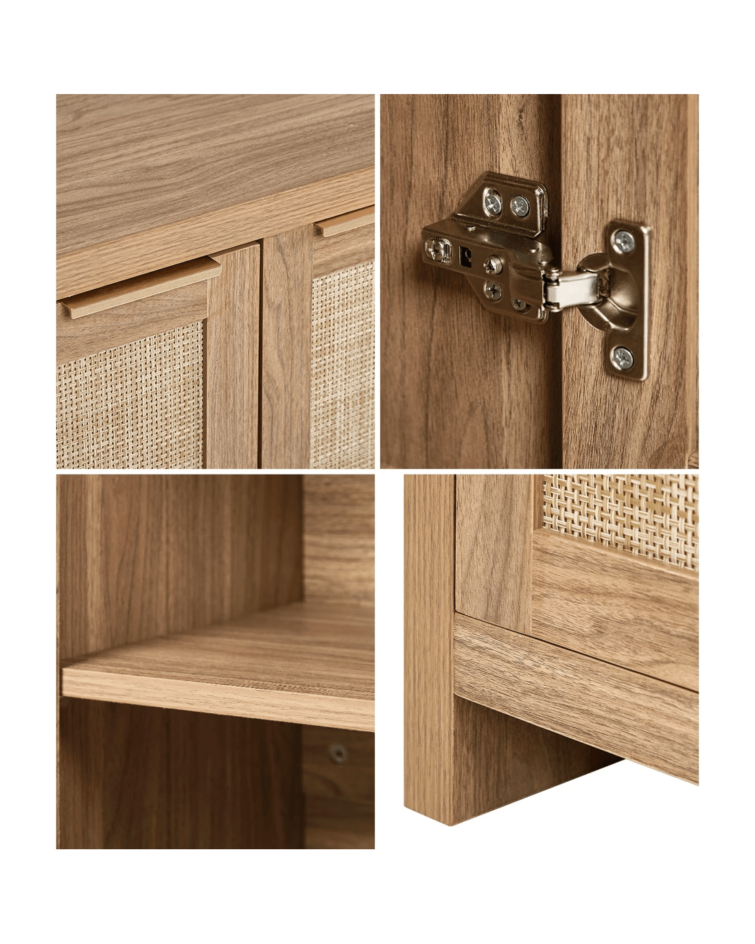 With its astounding good looks, this Oikiture Sideboard features a clean profile with rattan door panels that speak volumes of its commanding presence in any discerning home setting. First impressions are designed to captivate and this sideboard certainly does that perfectly with its generous display and storage space.