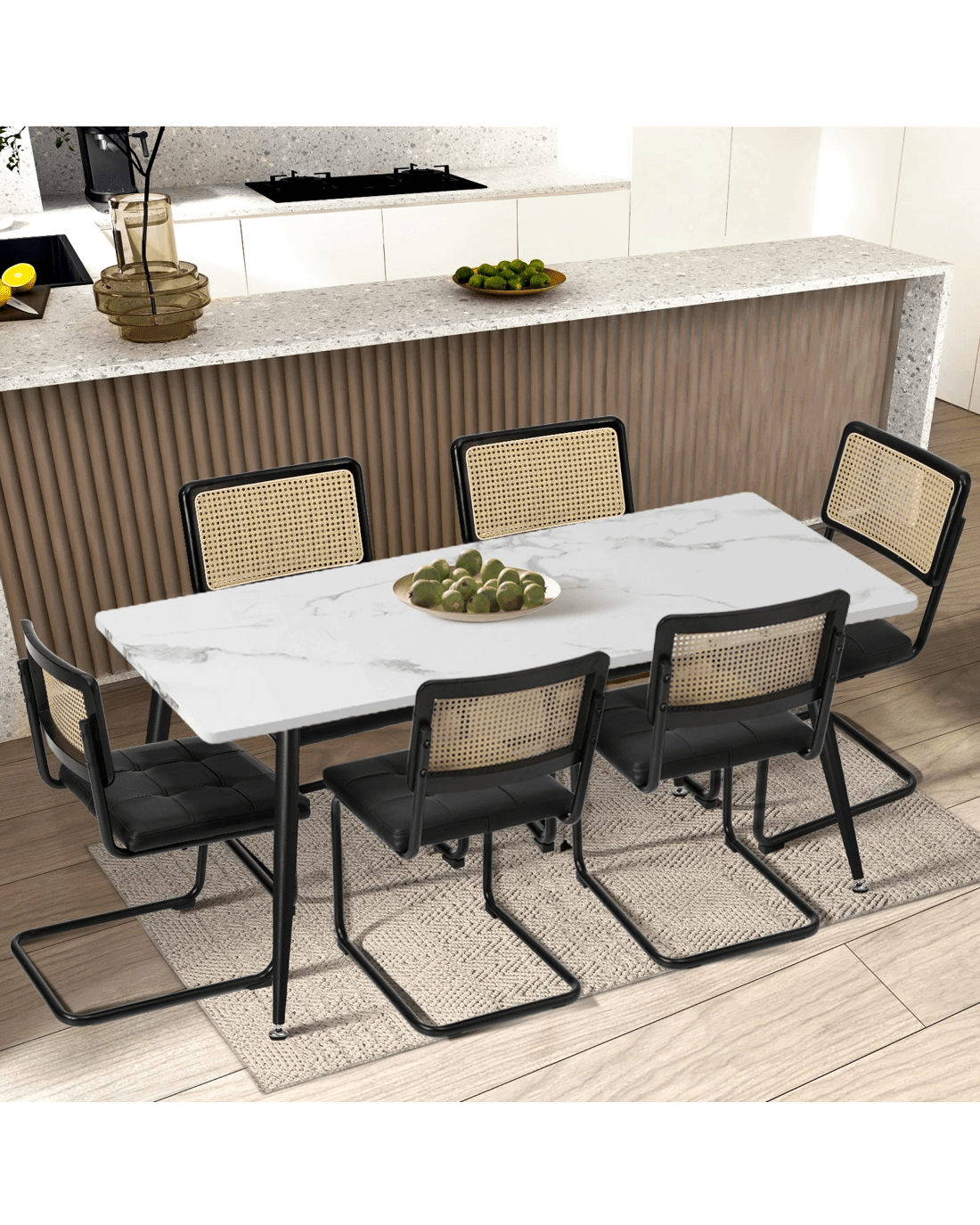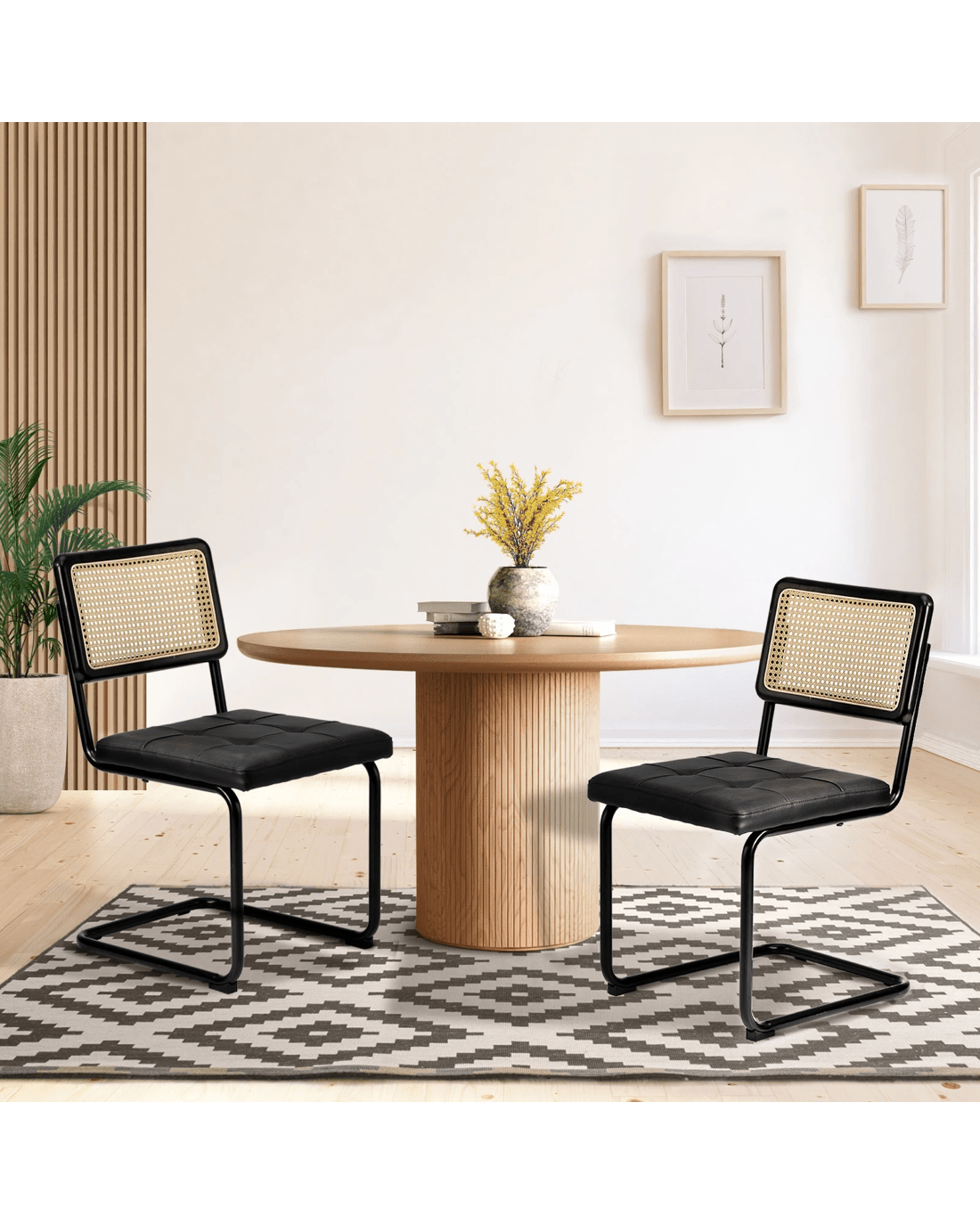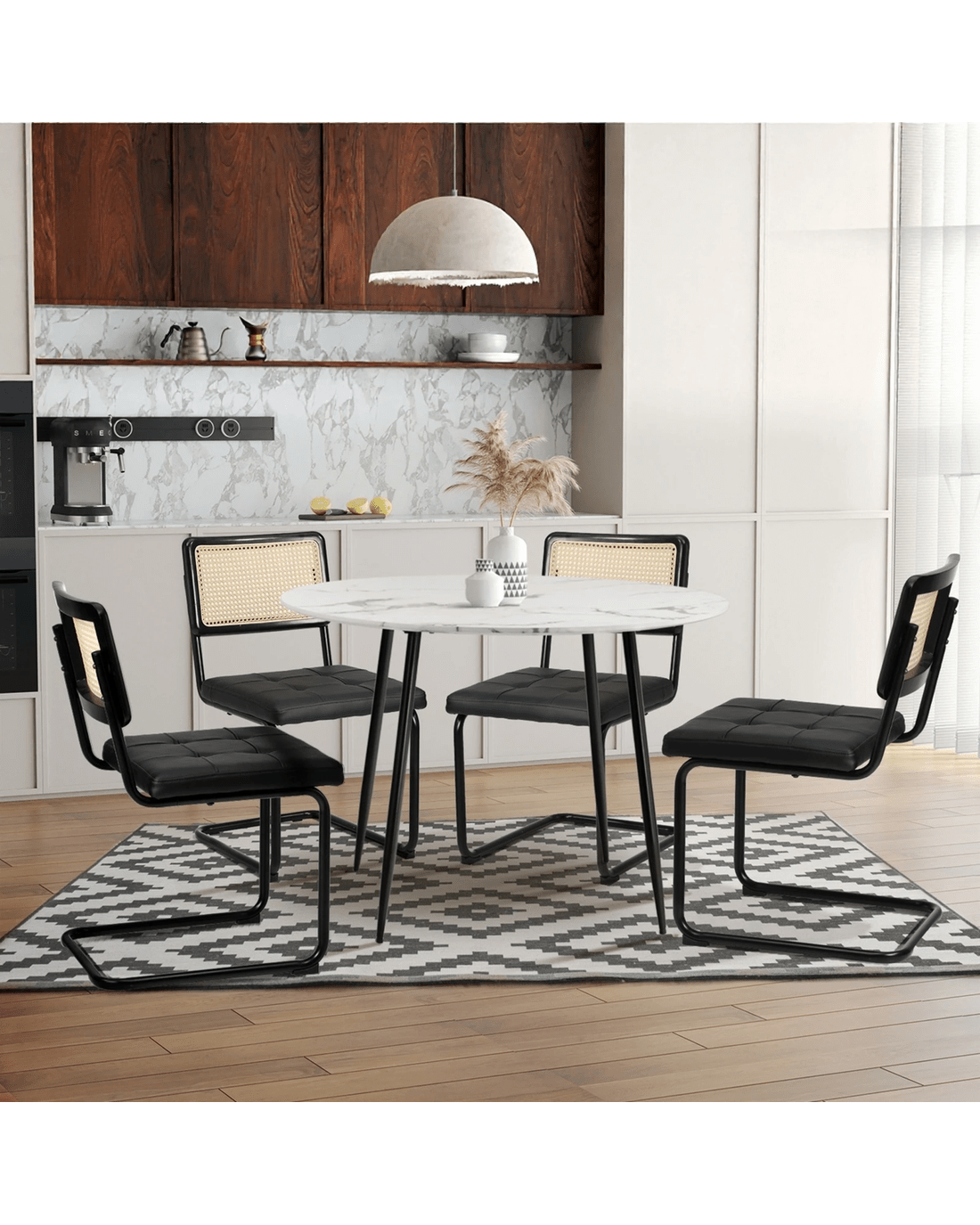 With the easy-to-clean PU leather and PE rattan, these chairs are designed to withstand the demands of daily use while maintaining their attractive appearance, ensuring your dining space always looks its best.