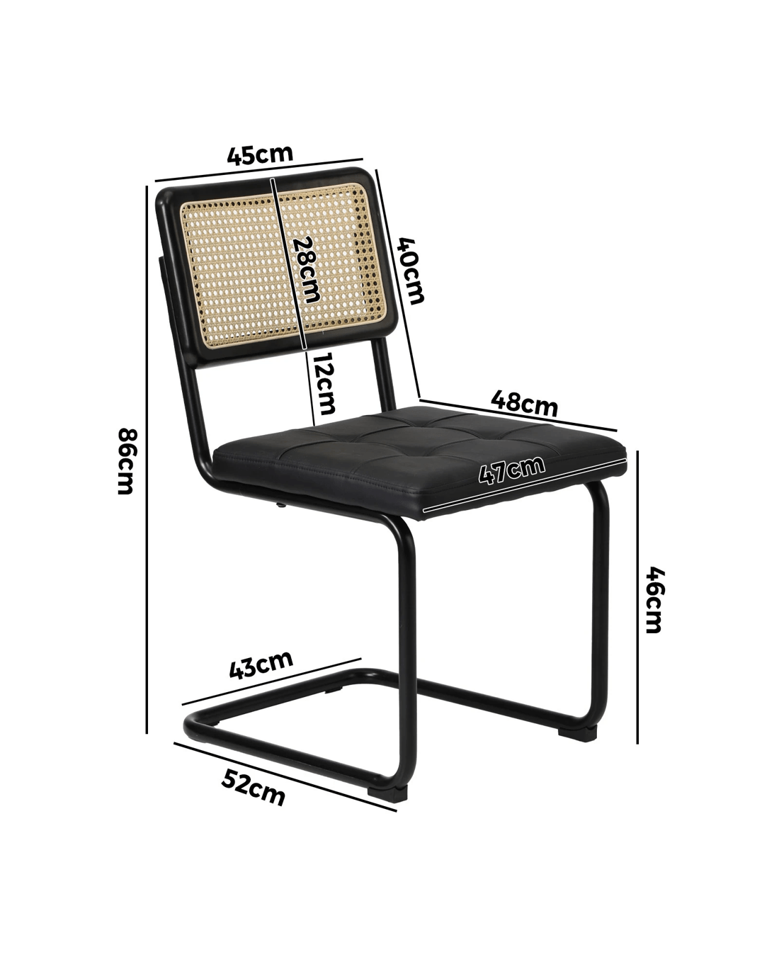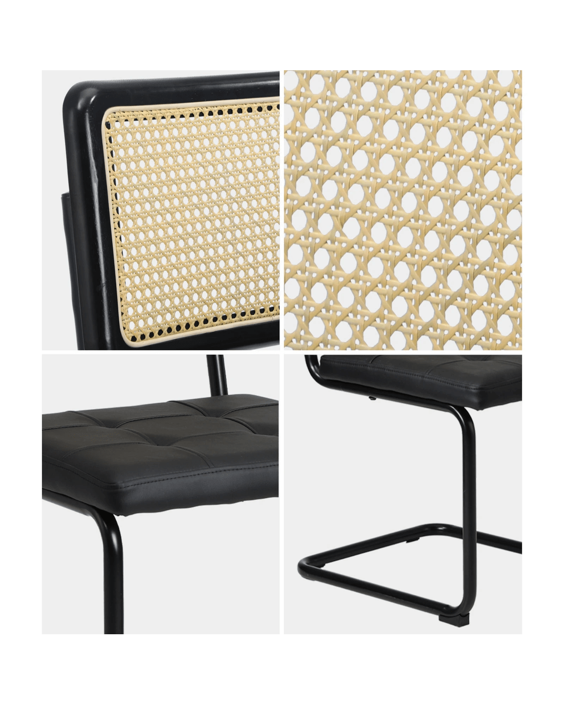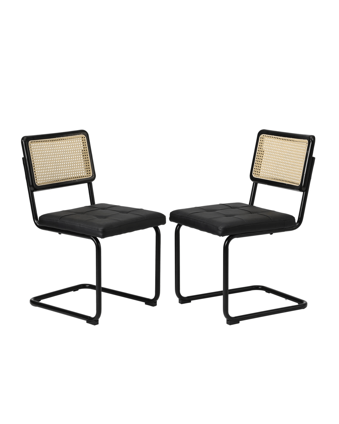 Sold by Kamprad's Oikos 1943Oikiture 2x Rattan Dining Chair Cesca Replica Cantilever Pu Leather Padded - Black