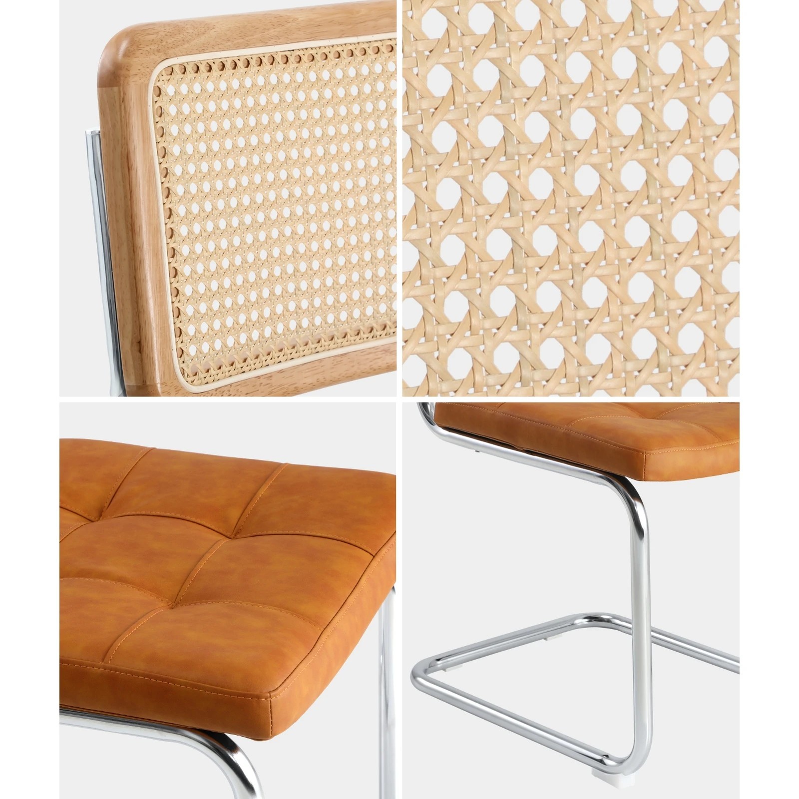Oikiture 2x Rattan Dining Chair Cesca Replica Cantilever Pu Leather Padded - Brown