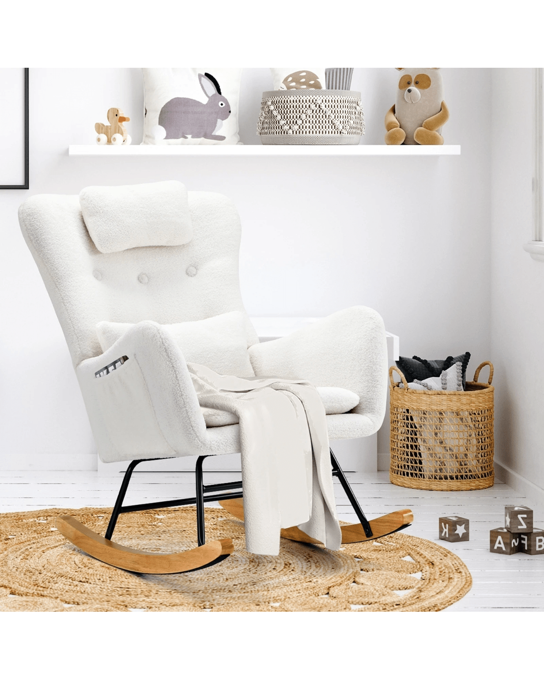 Whether you place it by the fireplace for cozy evenings, in the nursery for soothing your little one to sleep, or as a stylish addition to your reading nook, this armchair seamlessly combines functionality and charm in any space.