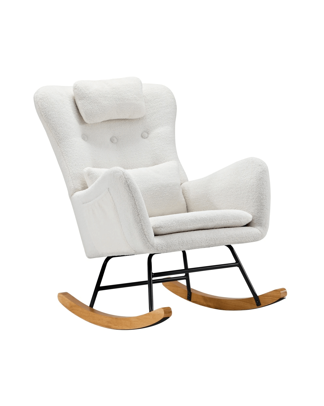 Crafted from premium Sherpa fabric, this rocking armchair boasts an irresistibly soft and velvety texture. Sink into its sumptuous embrace and experience unparalleled comfort that envelops you in warmth and coziness. Enjoy a soothing, gentle rocking motion as you settle into this armchair. The rocking mechanism is meticulously designed to cradle you in ultimate comfort, making it the perfect spot for reading, lounging, or unwinding after a long day.