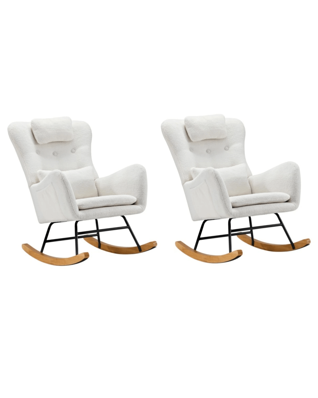 Oikiture 2x Rocking Chair Nursing Armchair Sherpa Chairs With 2 Pillow - White
