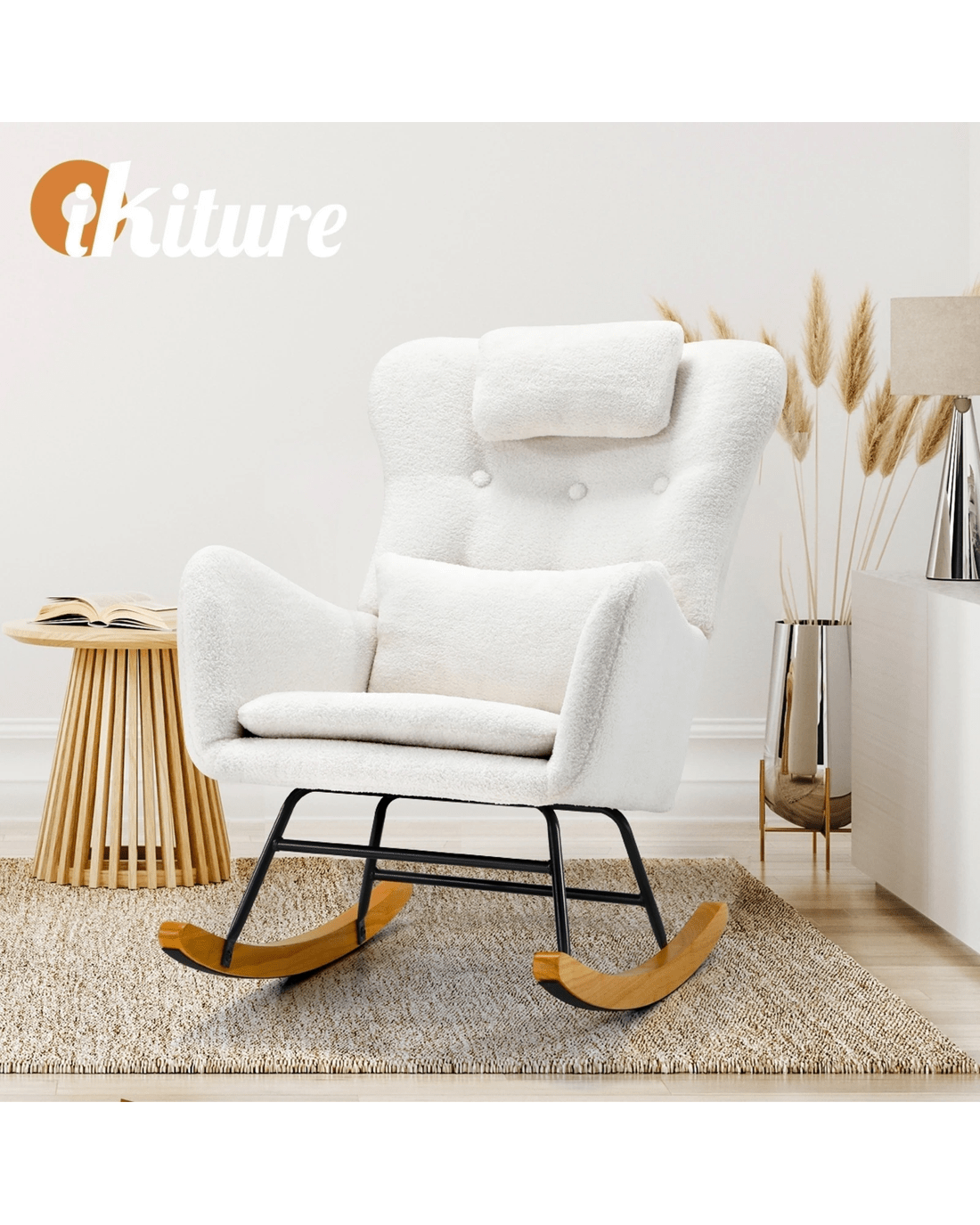 Indulge in the pinnacle of comfort and style with our new Sherpa Rocking Armchair by Oikiture, complete with a plush headrest and bolster pillow. This exceptional piece of furniture is designed to provide you with an unparalleled relaxation experience while enhancing the aesthetic appeal of your home.