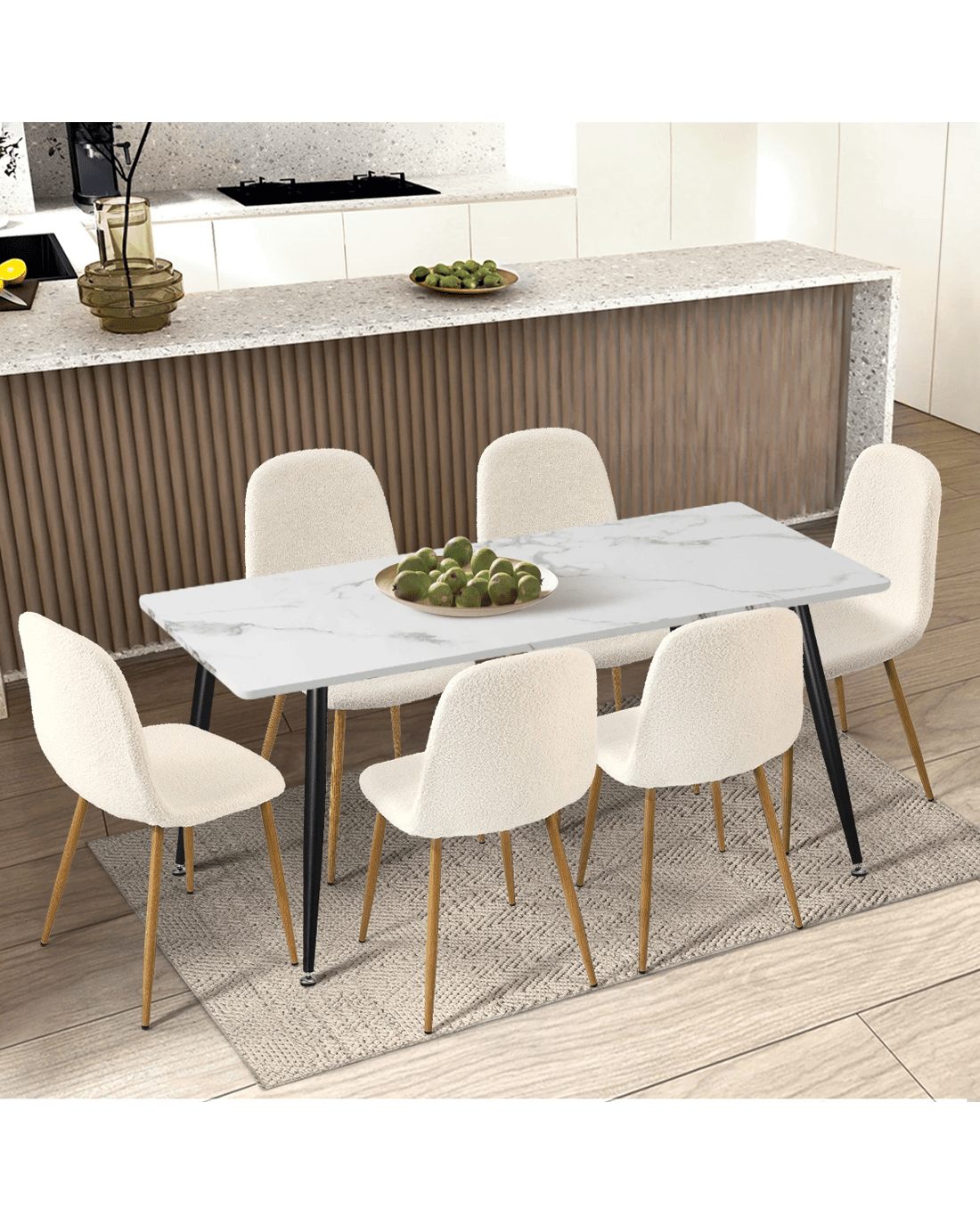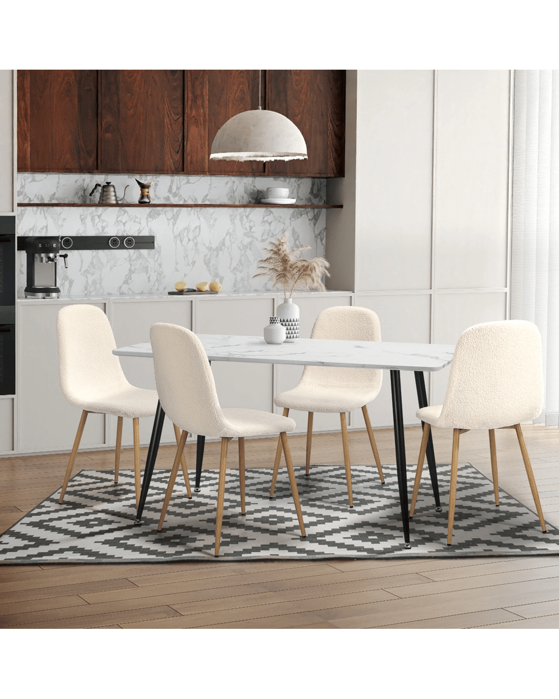 Crafted with high-quality Sherpa, these dining chairs exude an air of elegance and luxury. The smooth, easy-to-clean surface not only looks and feels like genuine Sherpa but also makes maintenance a breeze. Sink into the generously padded seat and backrest and enjoy a comfortable dining experience.