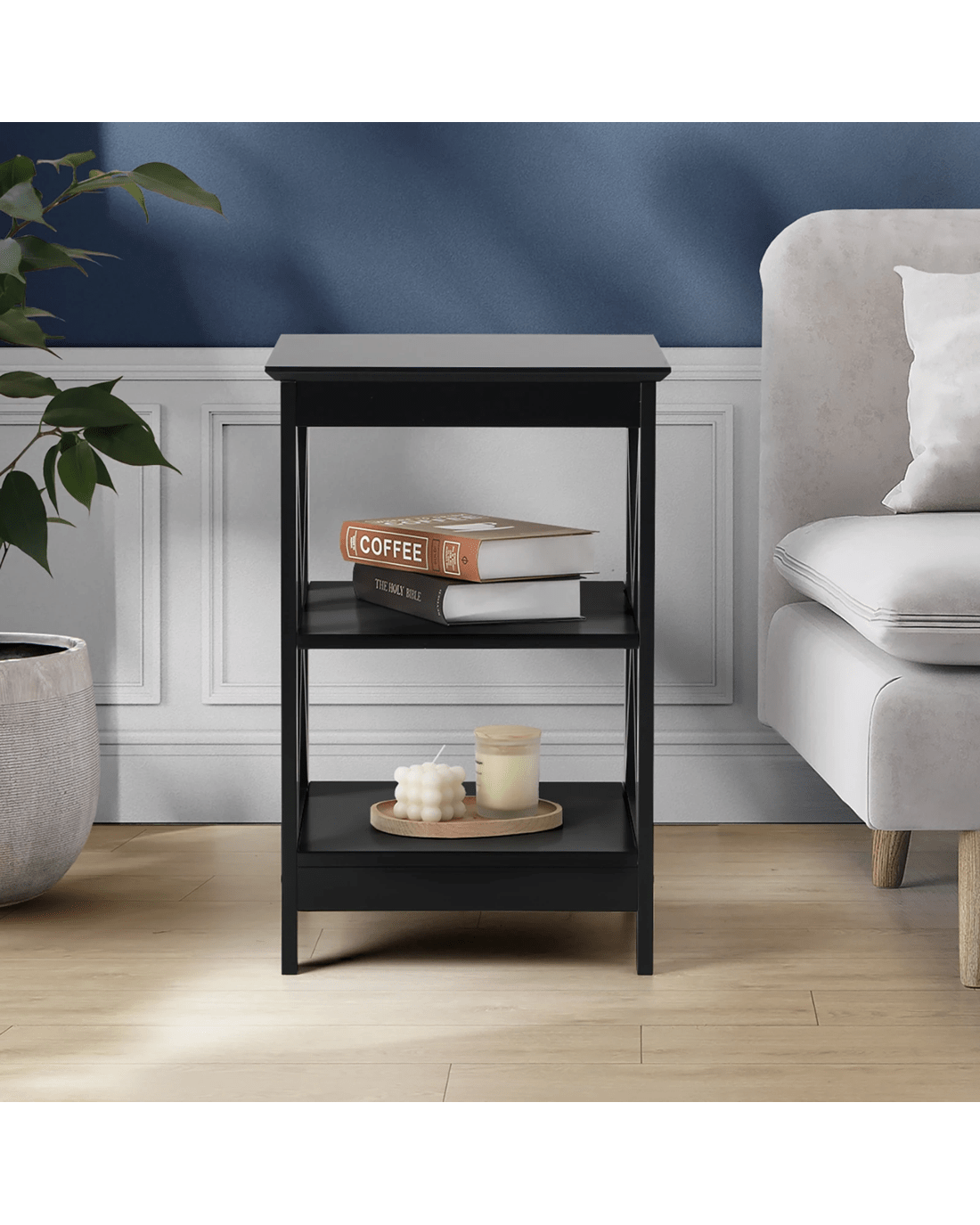 Sold by Kamprad's Oikos 1943Oikiture 2x Side Table Coffee Bedside Sofa End Tables 3-tier Shelf - Black