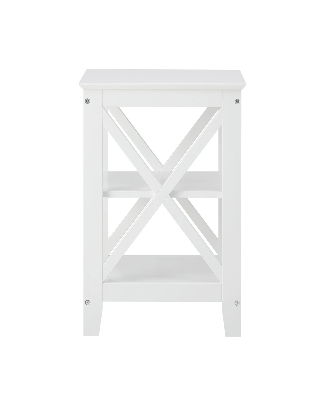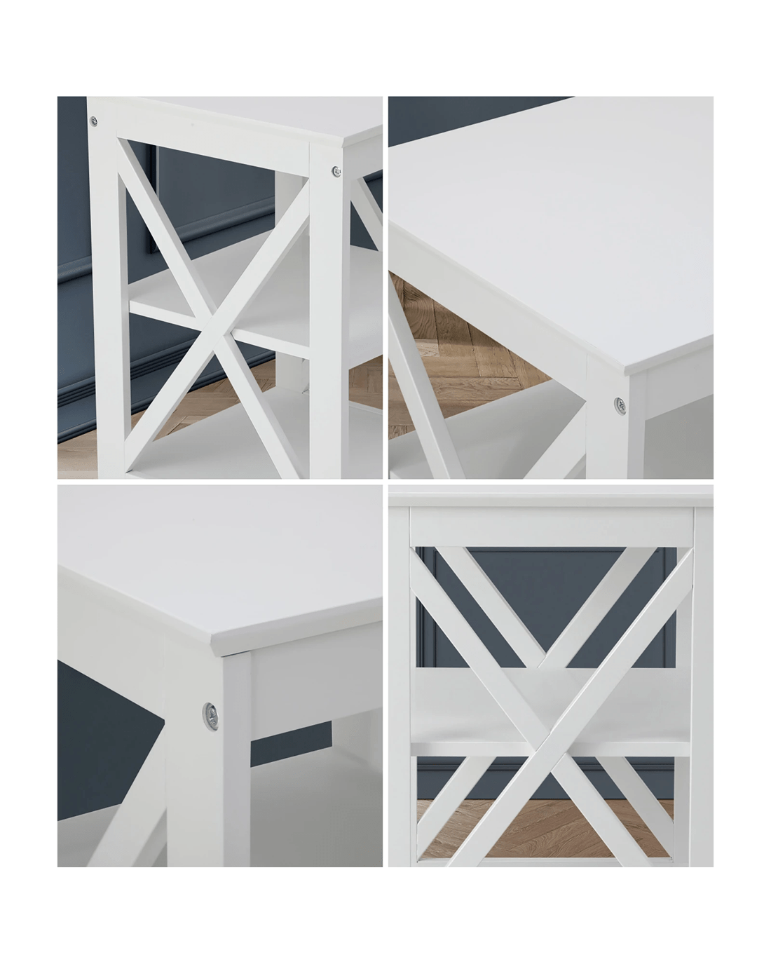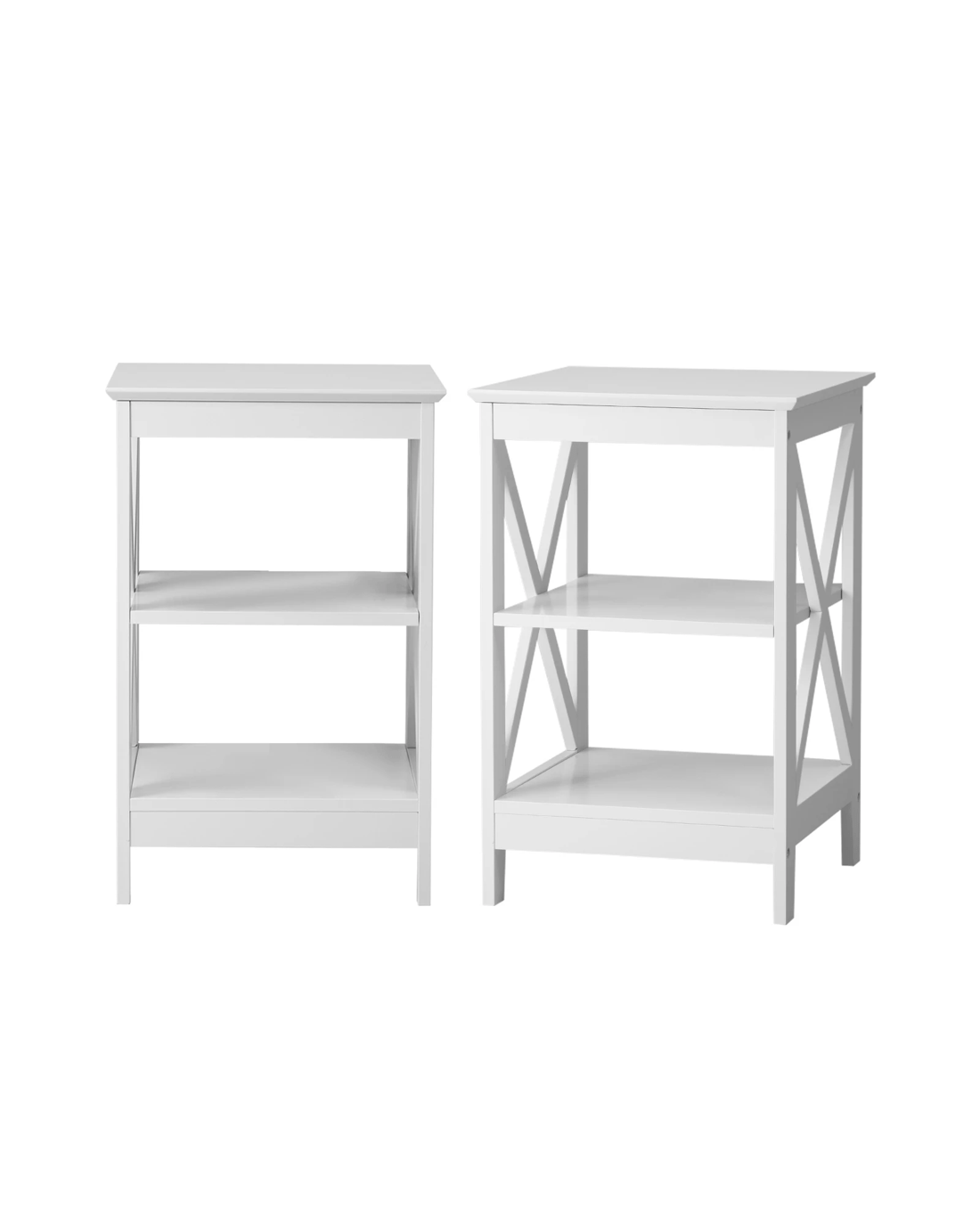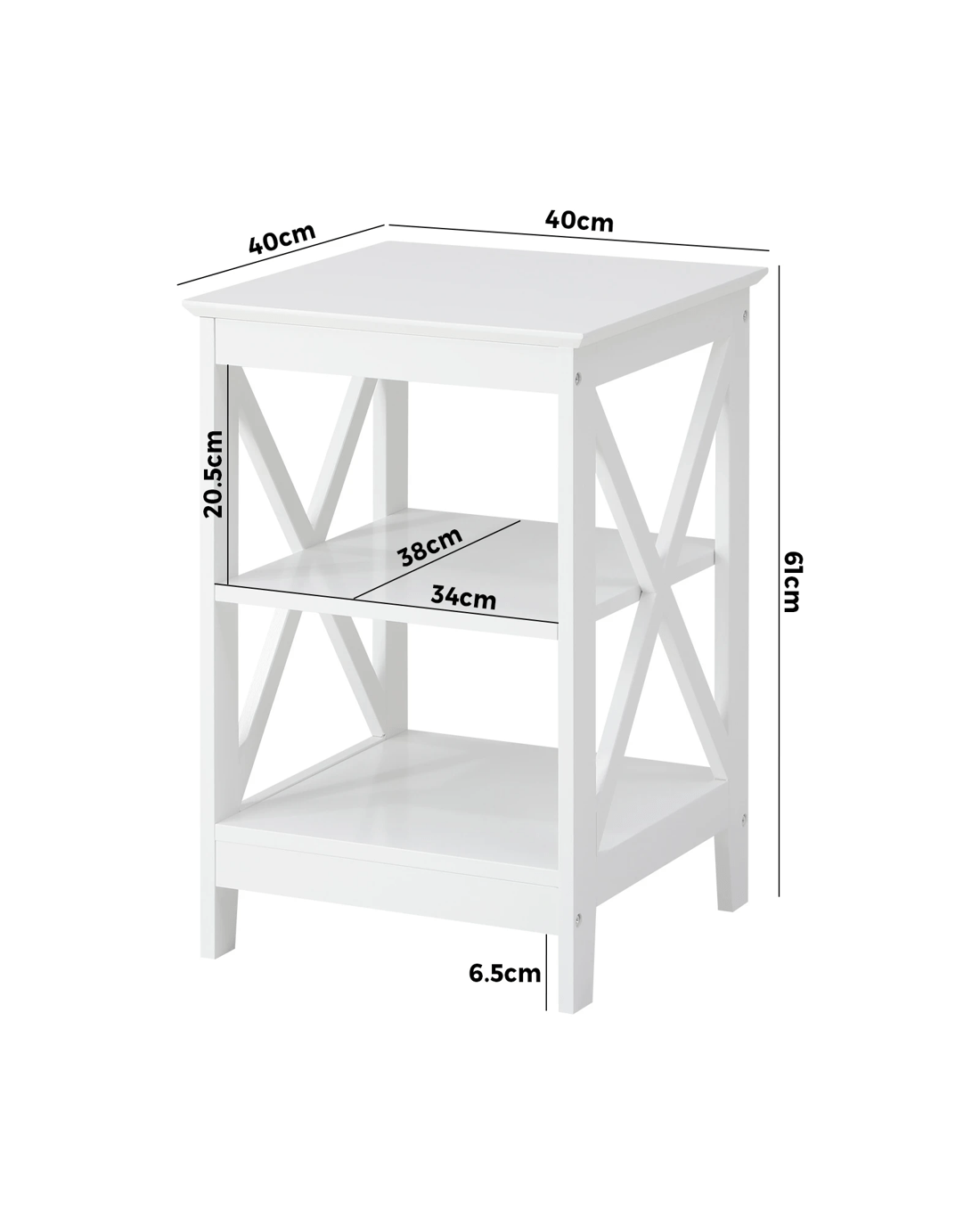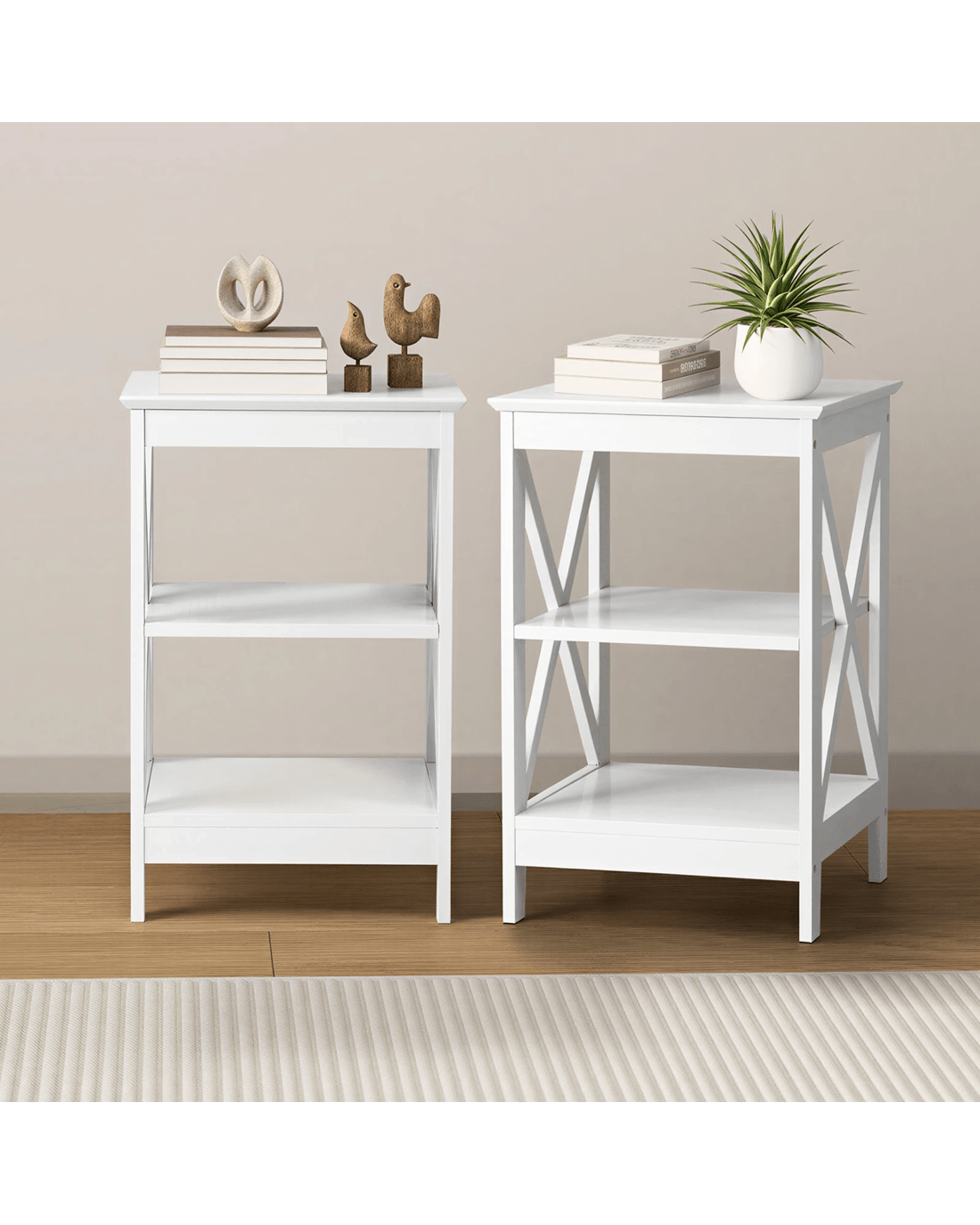 Oikiture 2x Side Table Coffee Bedside Sofa Storage End Tables 3-tier Shelf - White