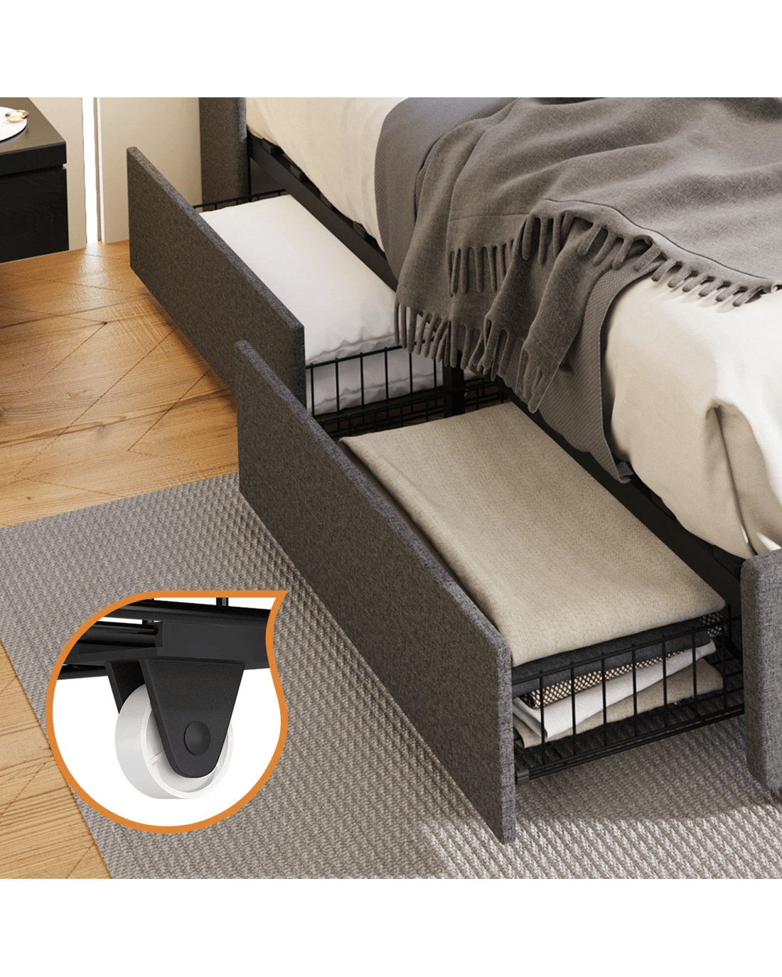 Oikiture 2x Trundle Drawers for Bed Frame with Wheels Metal - Grey - Grey