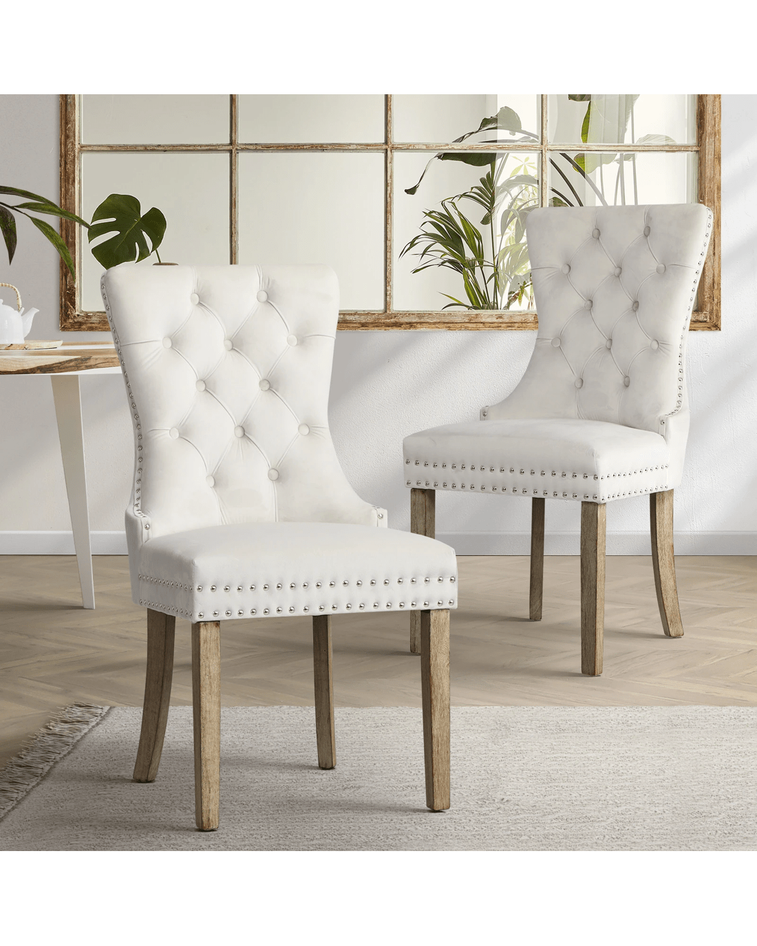 Oikiture 2x Velvet Dining Chairs Upholstered French Provincial Tufted - Beige