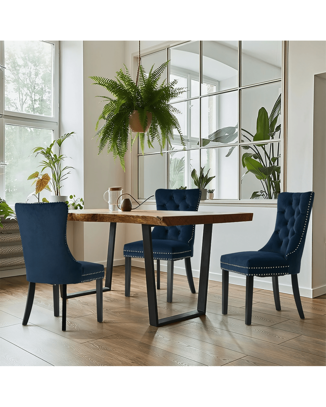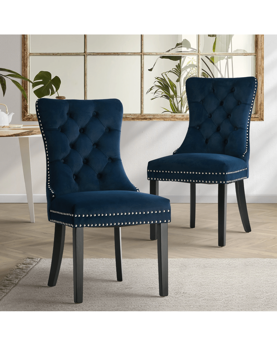 Sold by Kamprad's Oikos 1943Oikiture 2x Velvet Dining Chairs Upholstered French Provincial Tufted - Blue