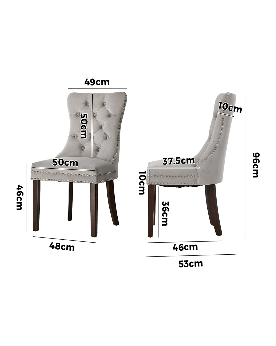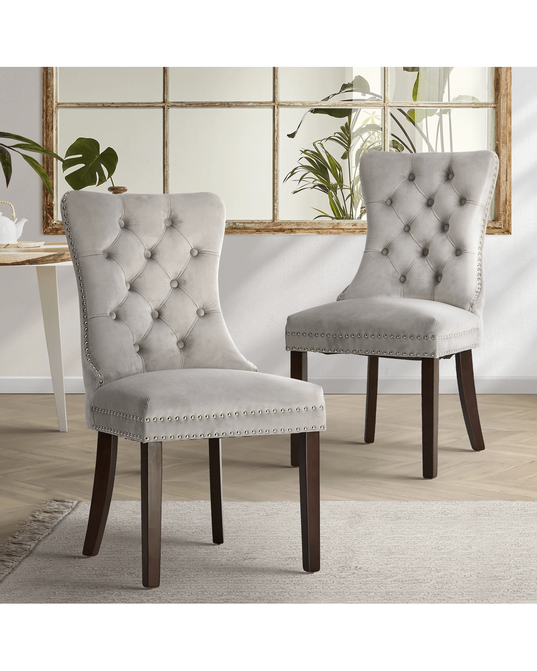 Sold by Kamprad's Oikos 1943Oikiture 2x Velvet Dining Chairs Upholstered French Provincial Tufted Light - Grey