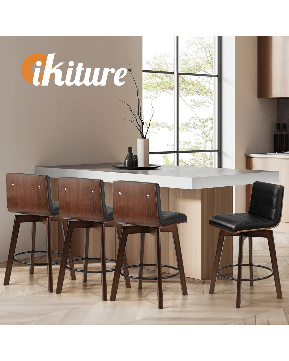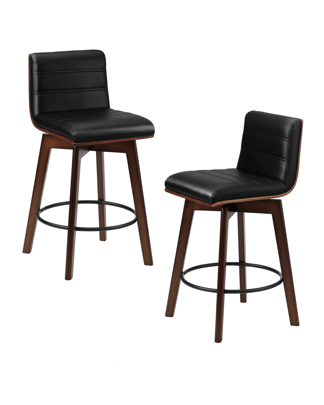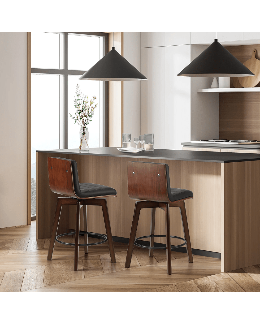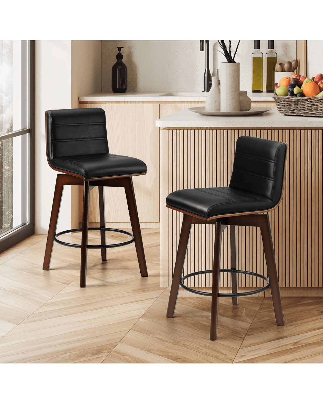 Oikiture 2x Wooden Bar Stools Kitchen Counter Swivel Dining Chair Pu Leather - Black