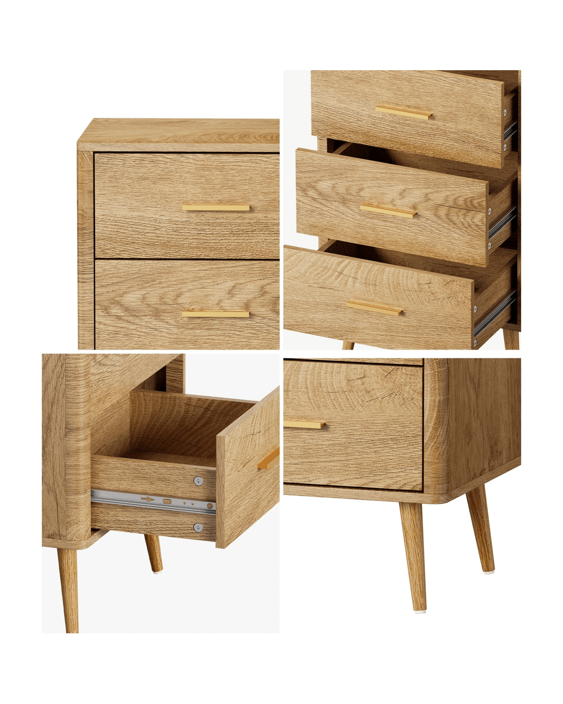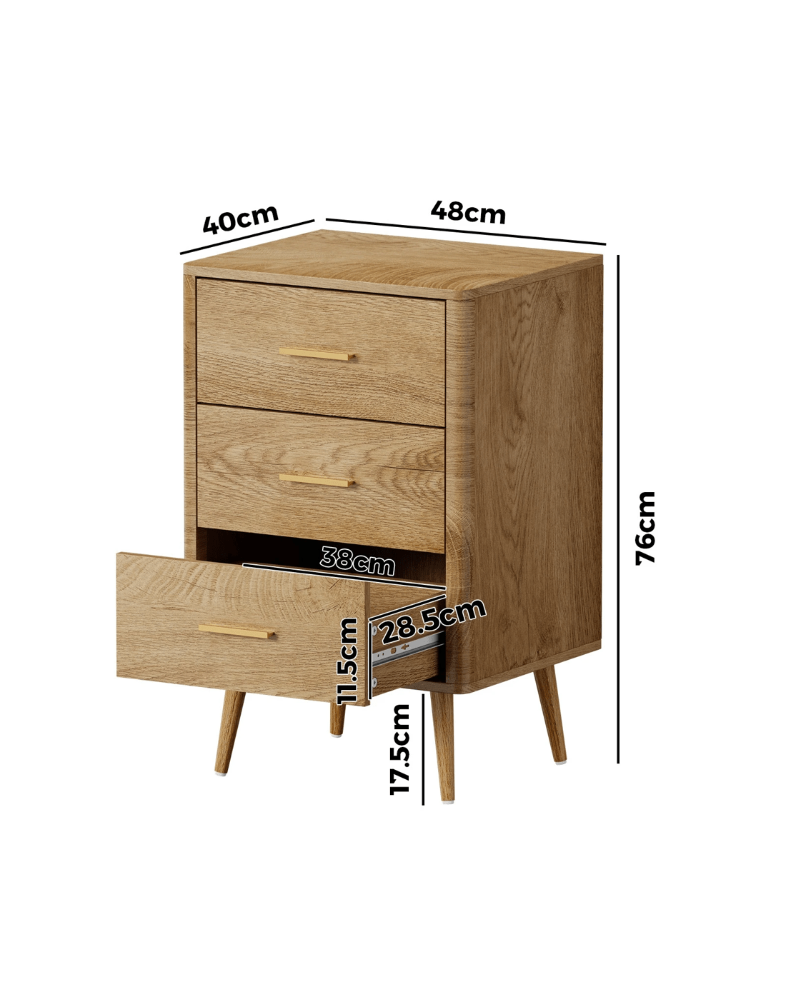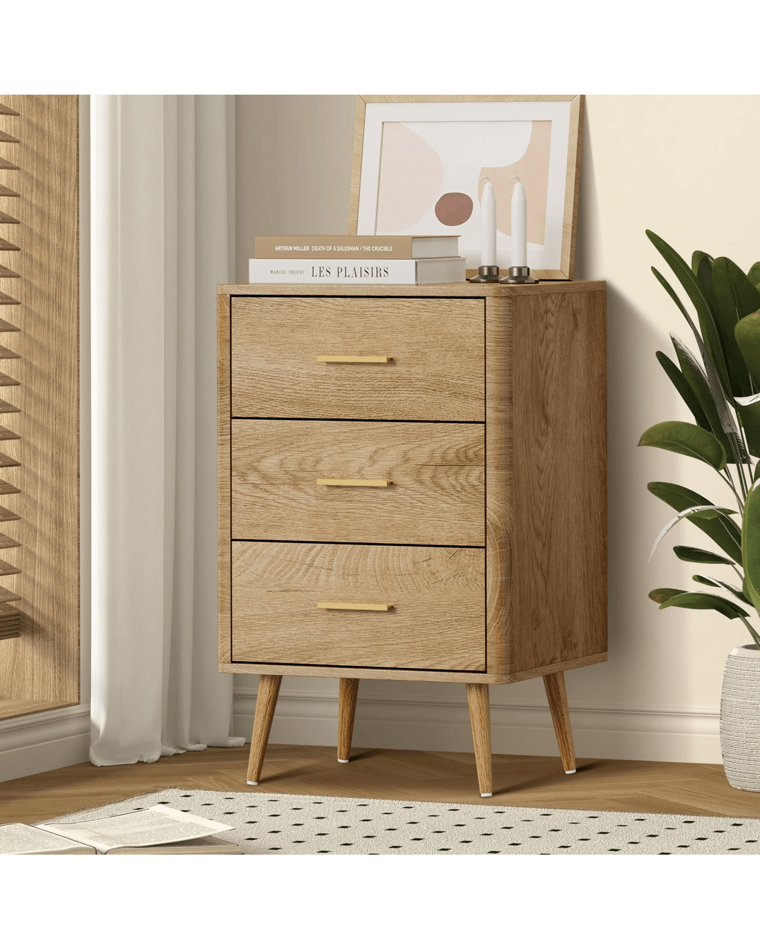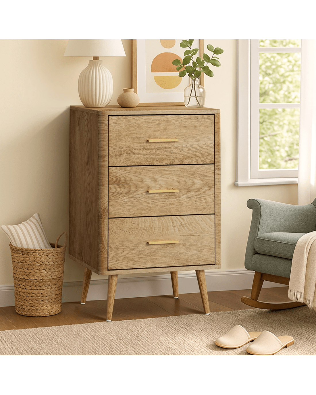 Oikiture 3 Chest Of Drawers Dresser Tallboy Storage Cabinet - Natural