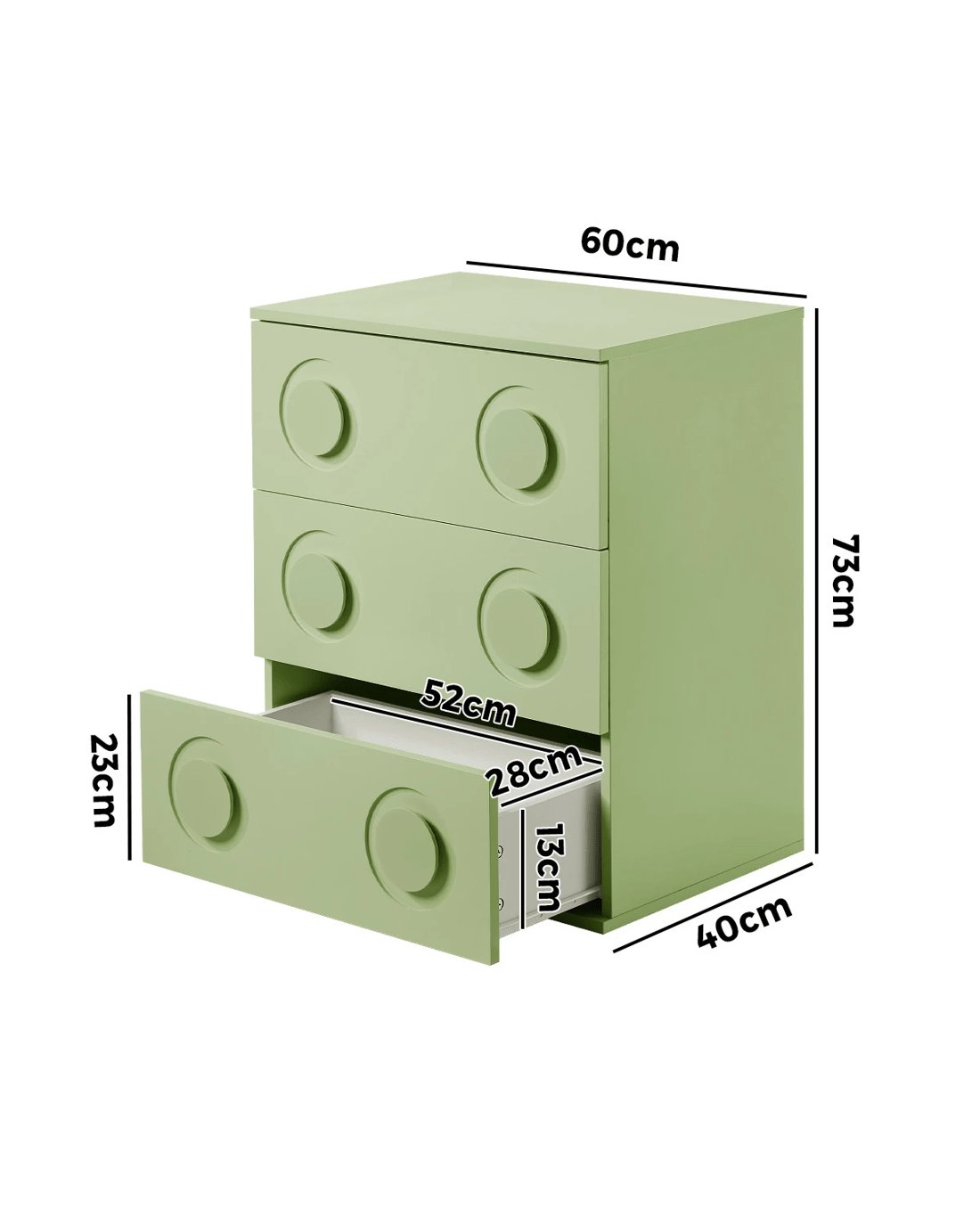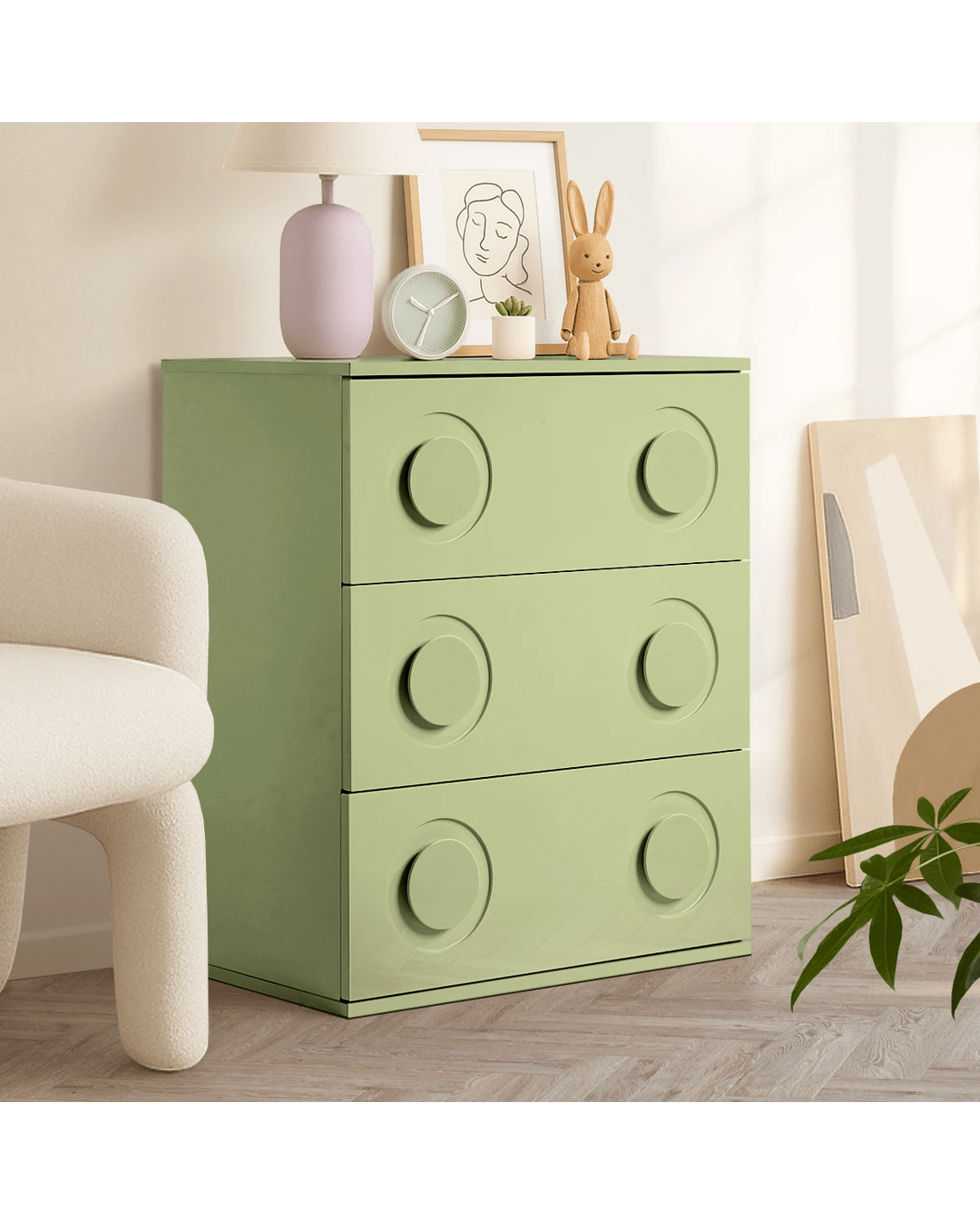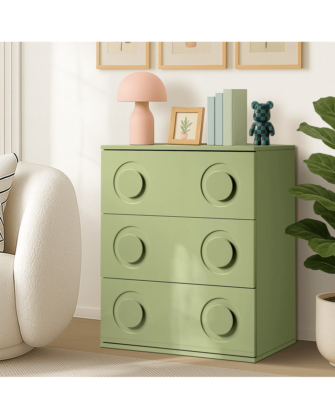 Oikiture 3 Chest of Drawers Spacious Cabinet Bedroom Dresser Nightstand - Green