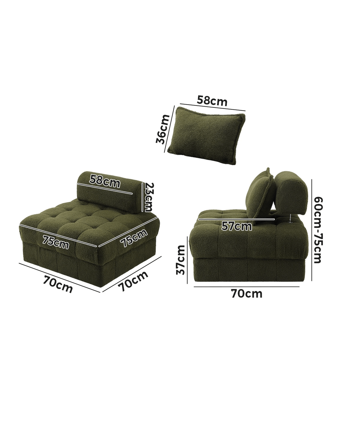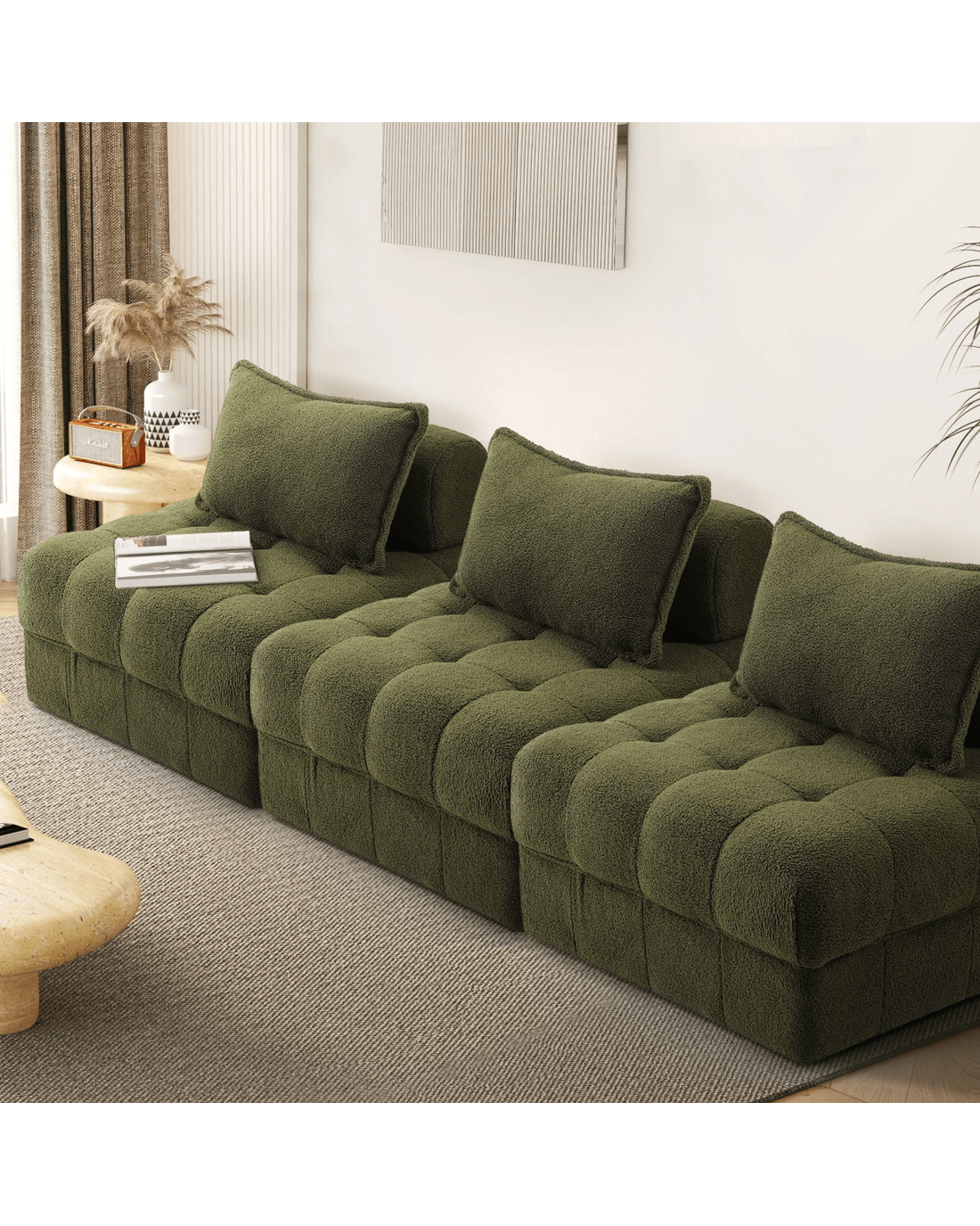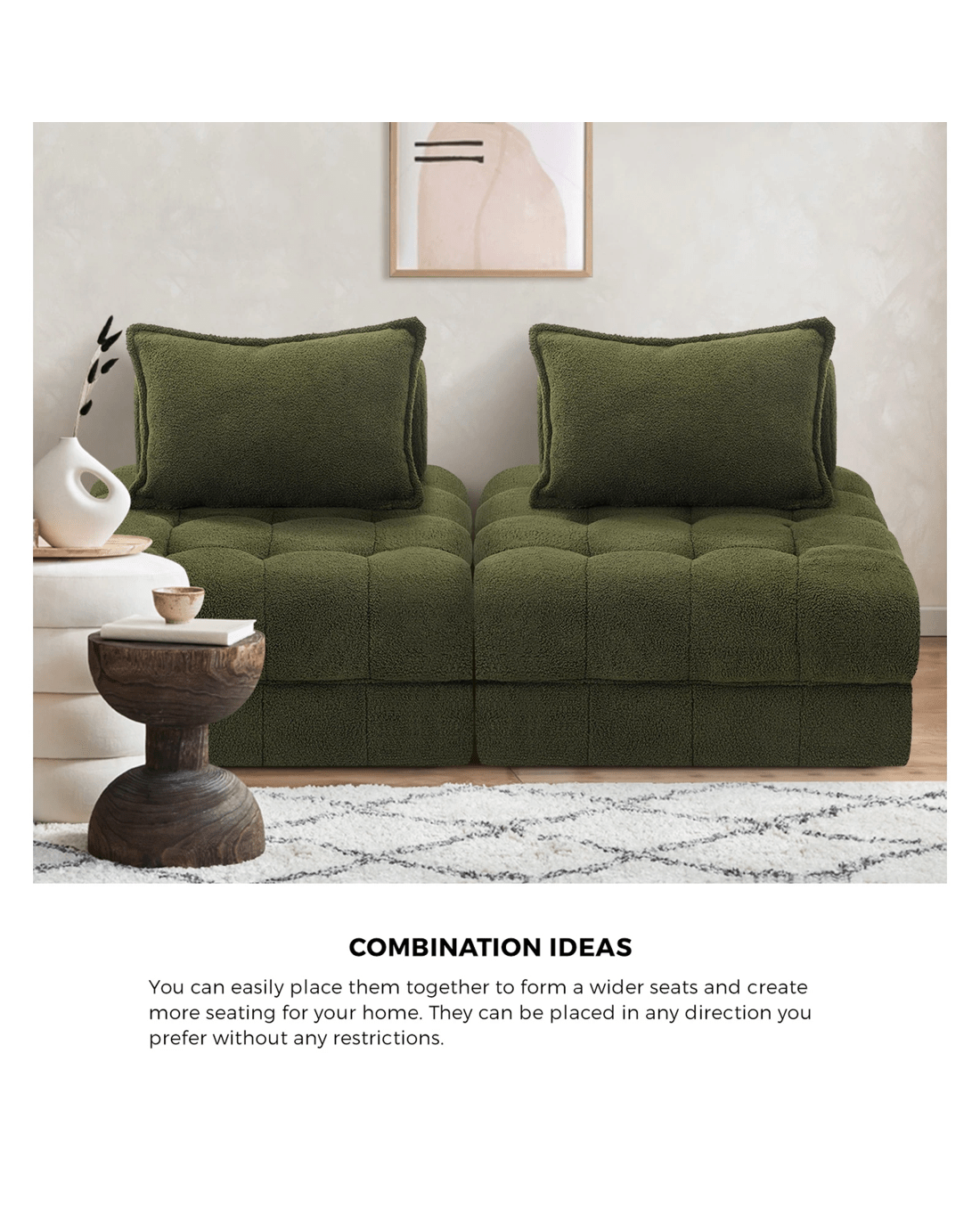 Sold by Kamprad's Oikos 1943Oikiture 3 Seater Boucle Modular Sofa Lounge Chair Armless Tofu Back - Green - Green