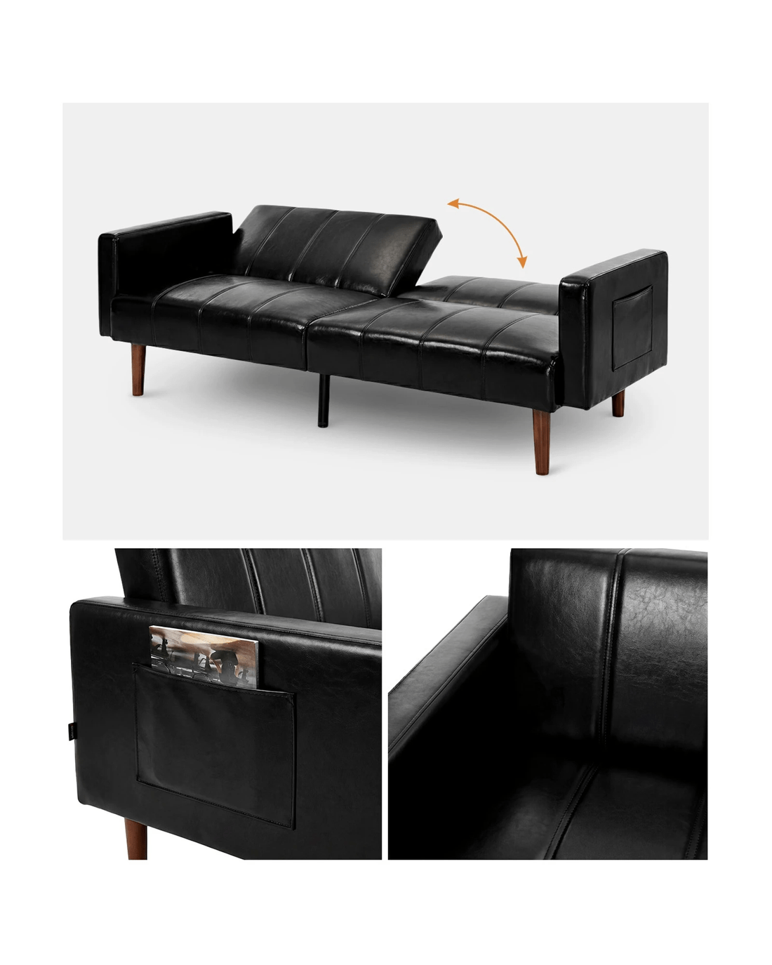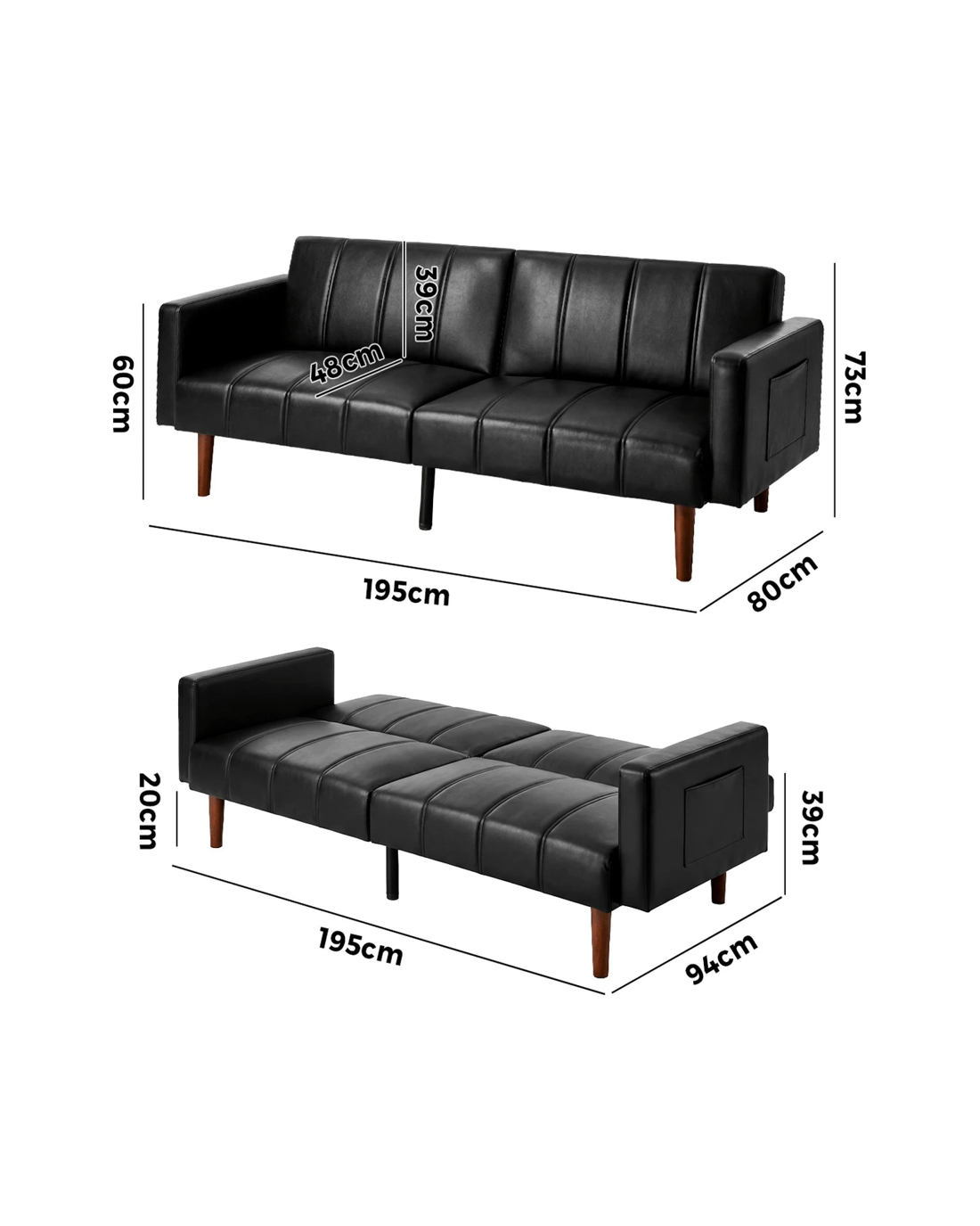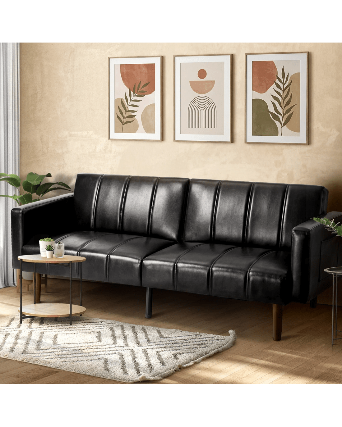 Oikiture 3 Seater Sofa Bed Sleeper Futon Faux Leather - Black