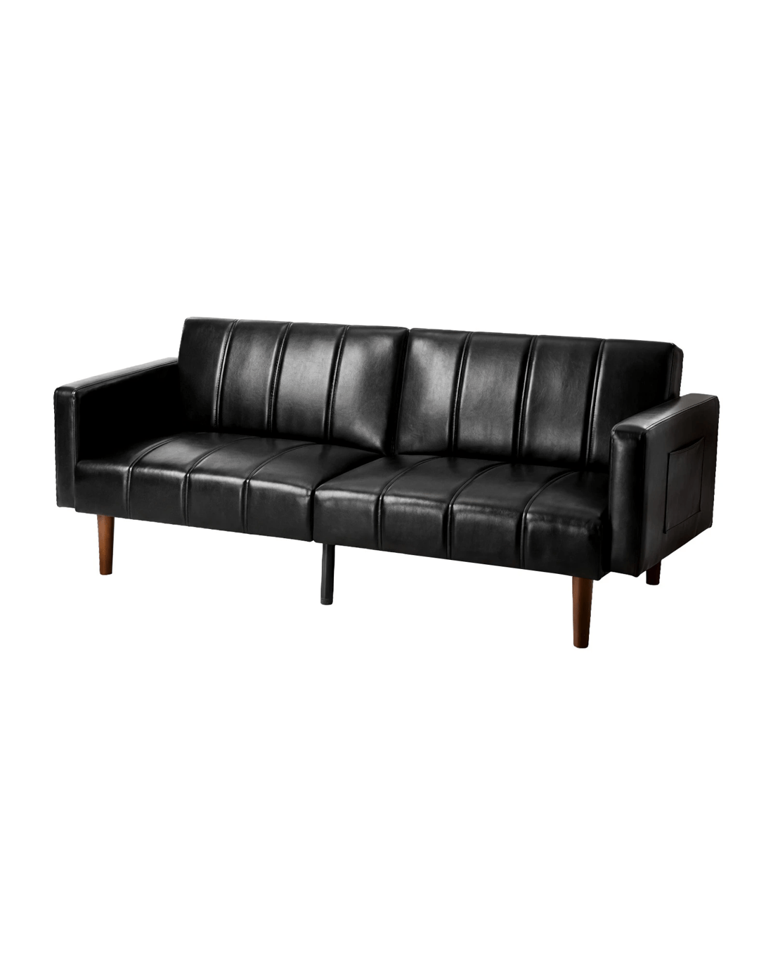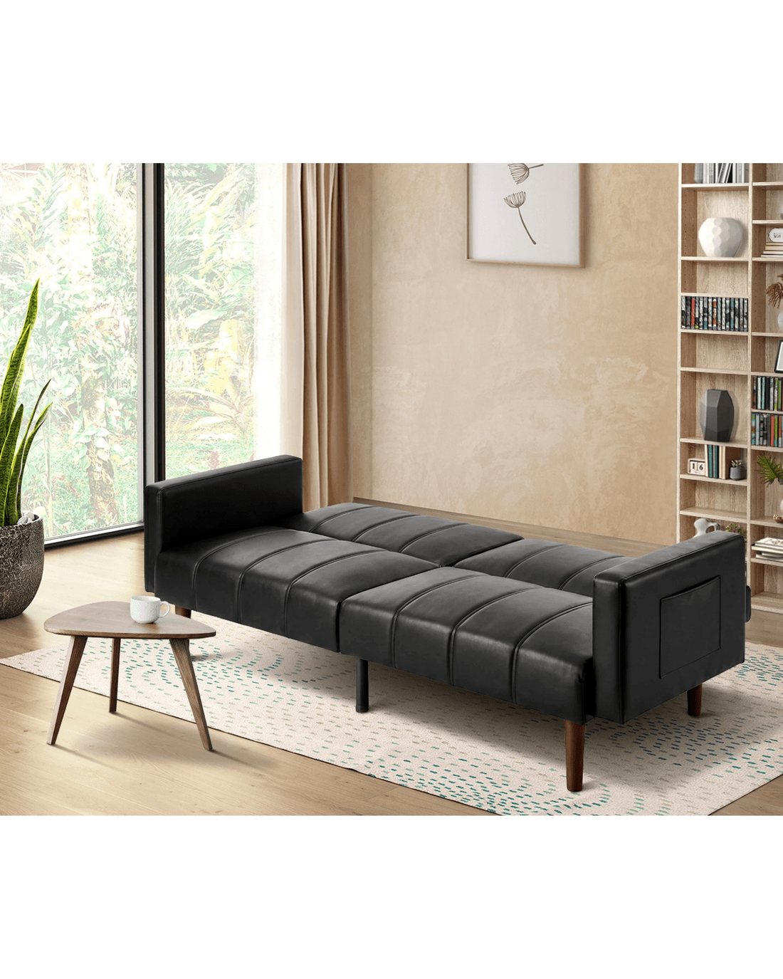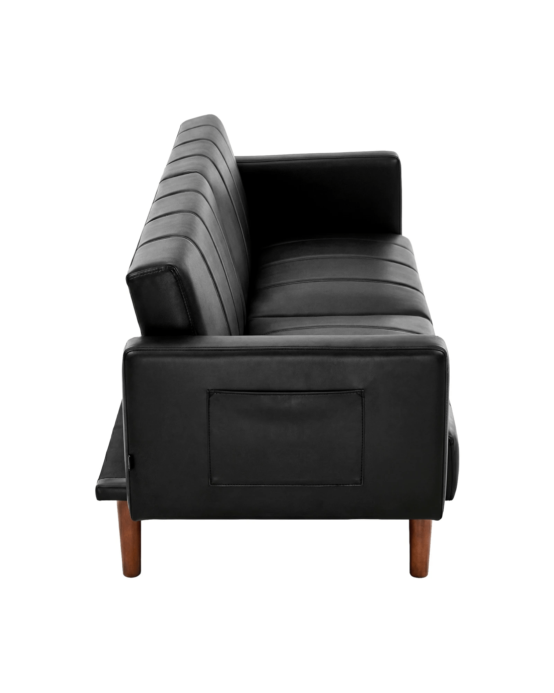 Oikiture 3 Seater Sofa Bed Sleeper Futon Faux Leather - Black