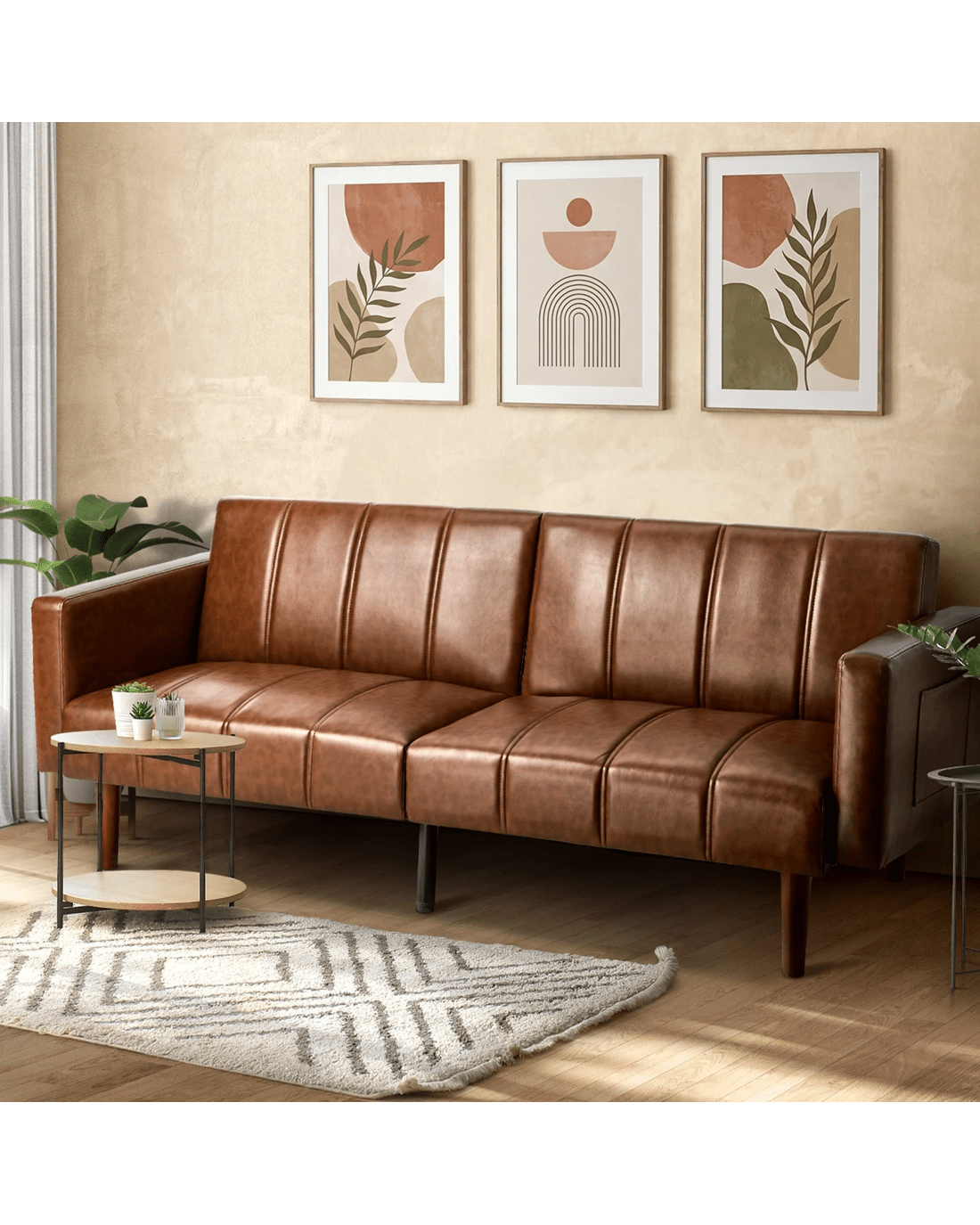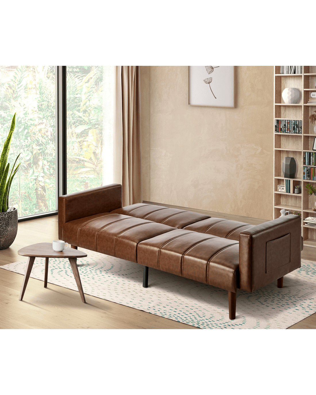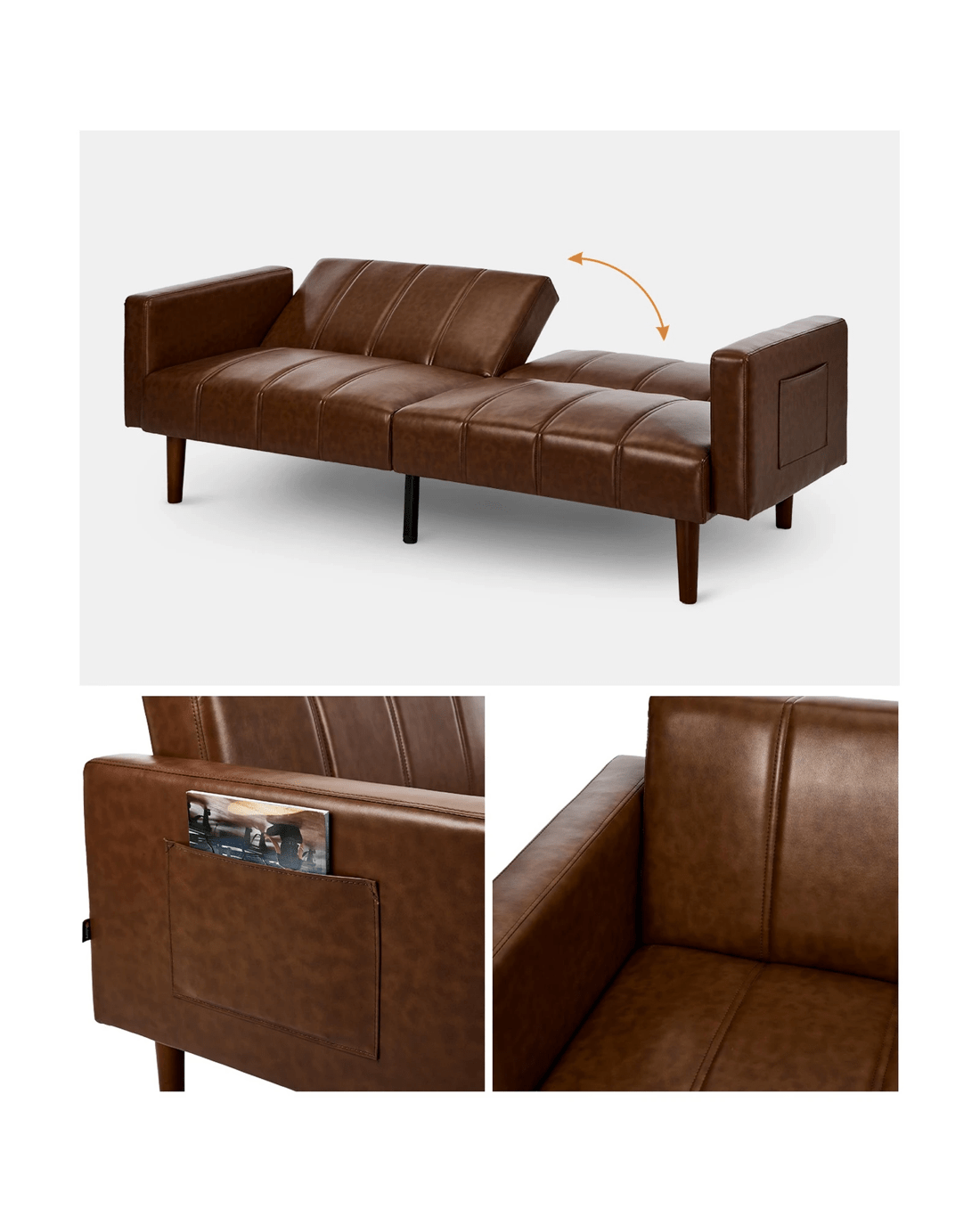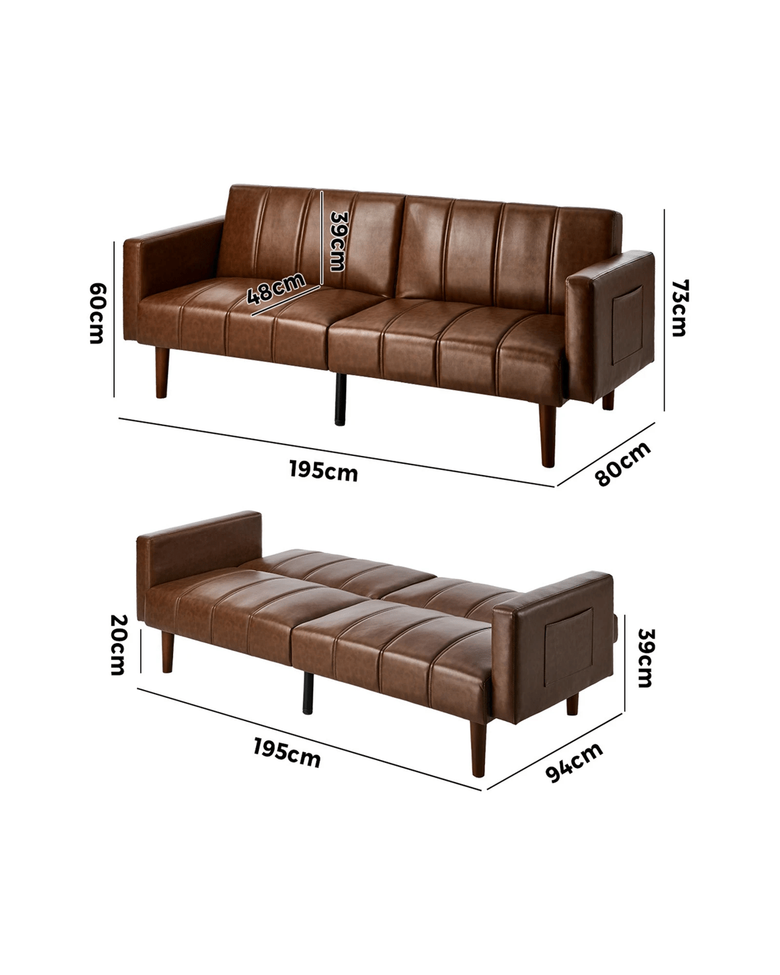 Oikiture 3 Seater Sofa Bed Sleeper Futon Faux Leather - Brown