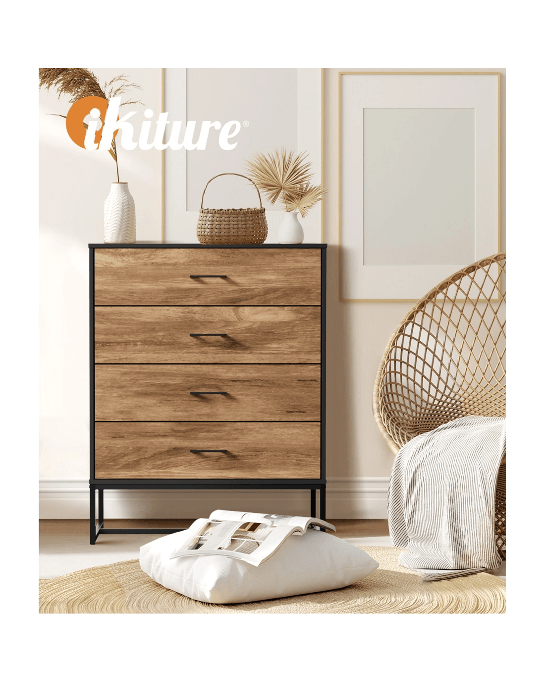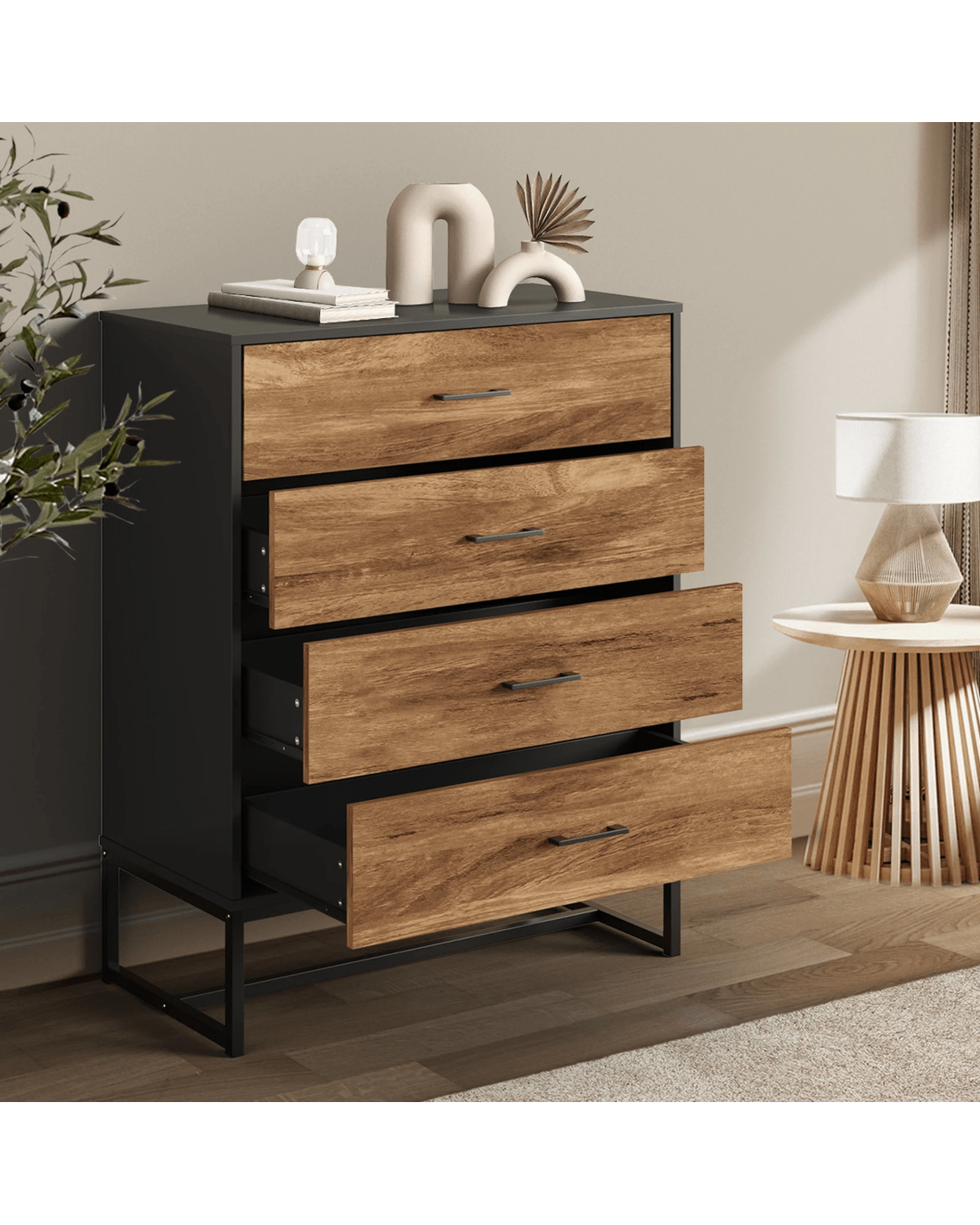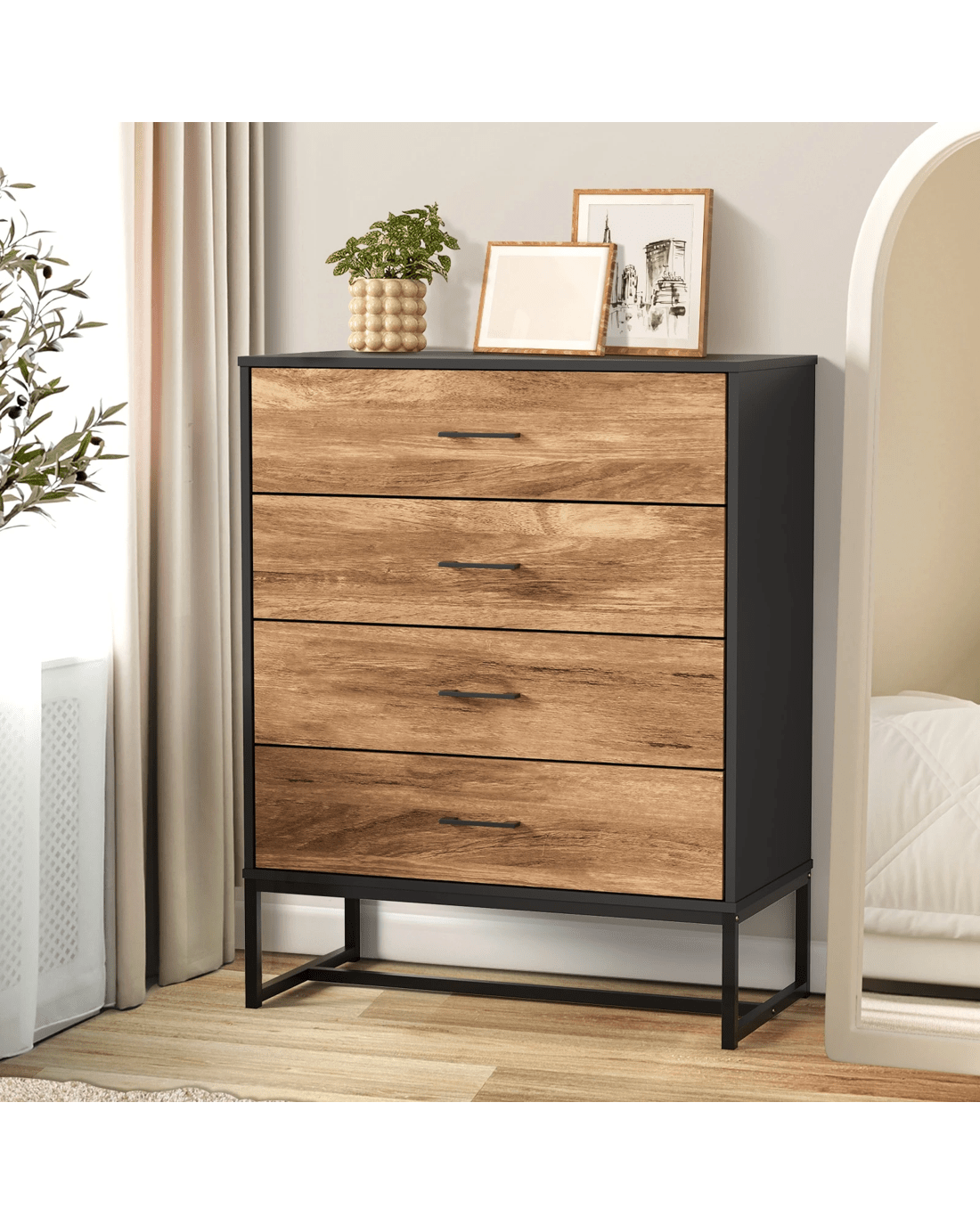 Oikiture 4 Chest Of Drawers Storage Cabinet Dresser Table Tallboy Metal - Multi