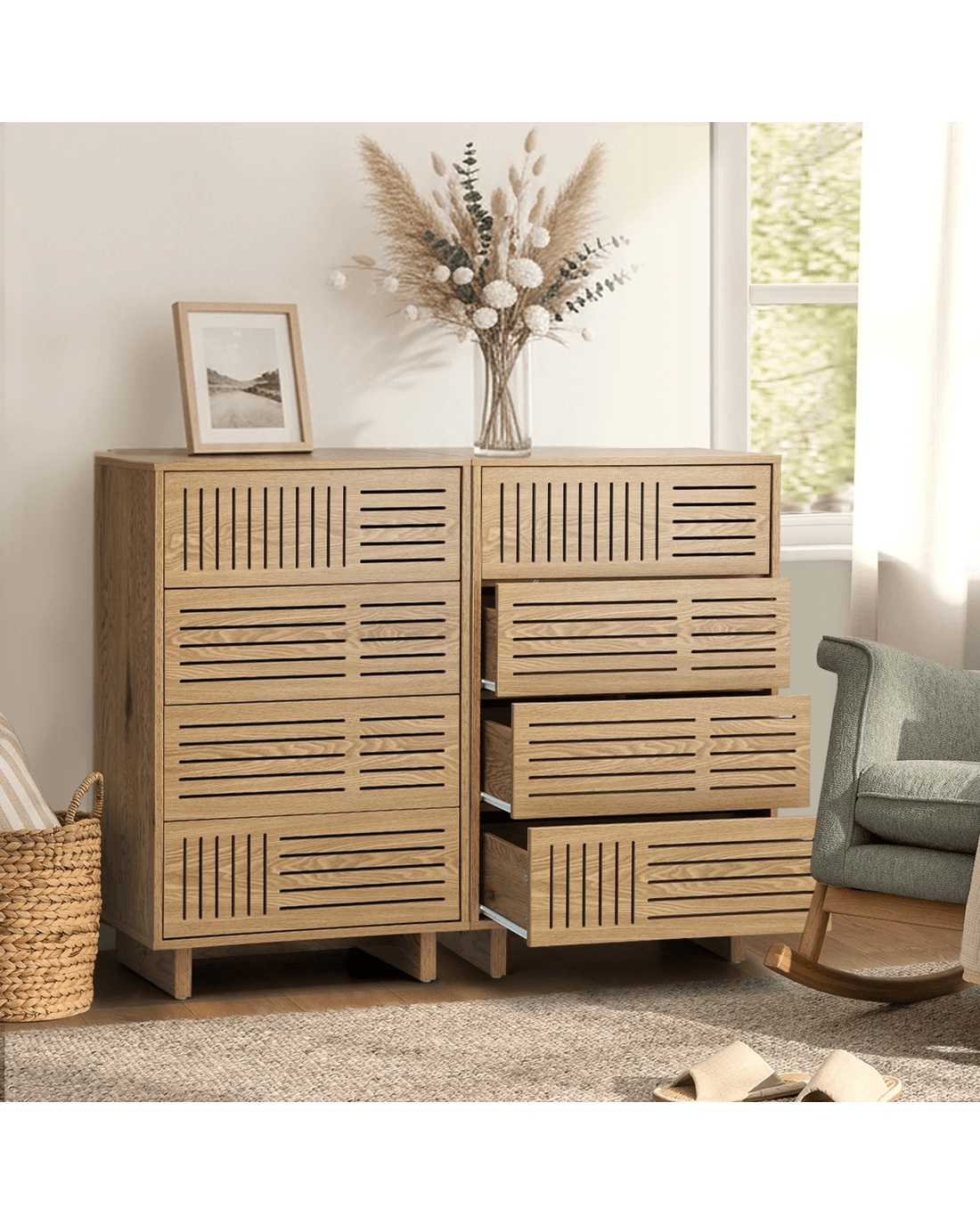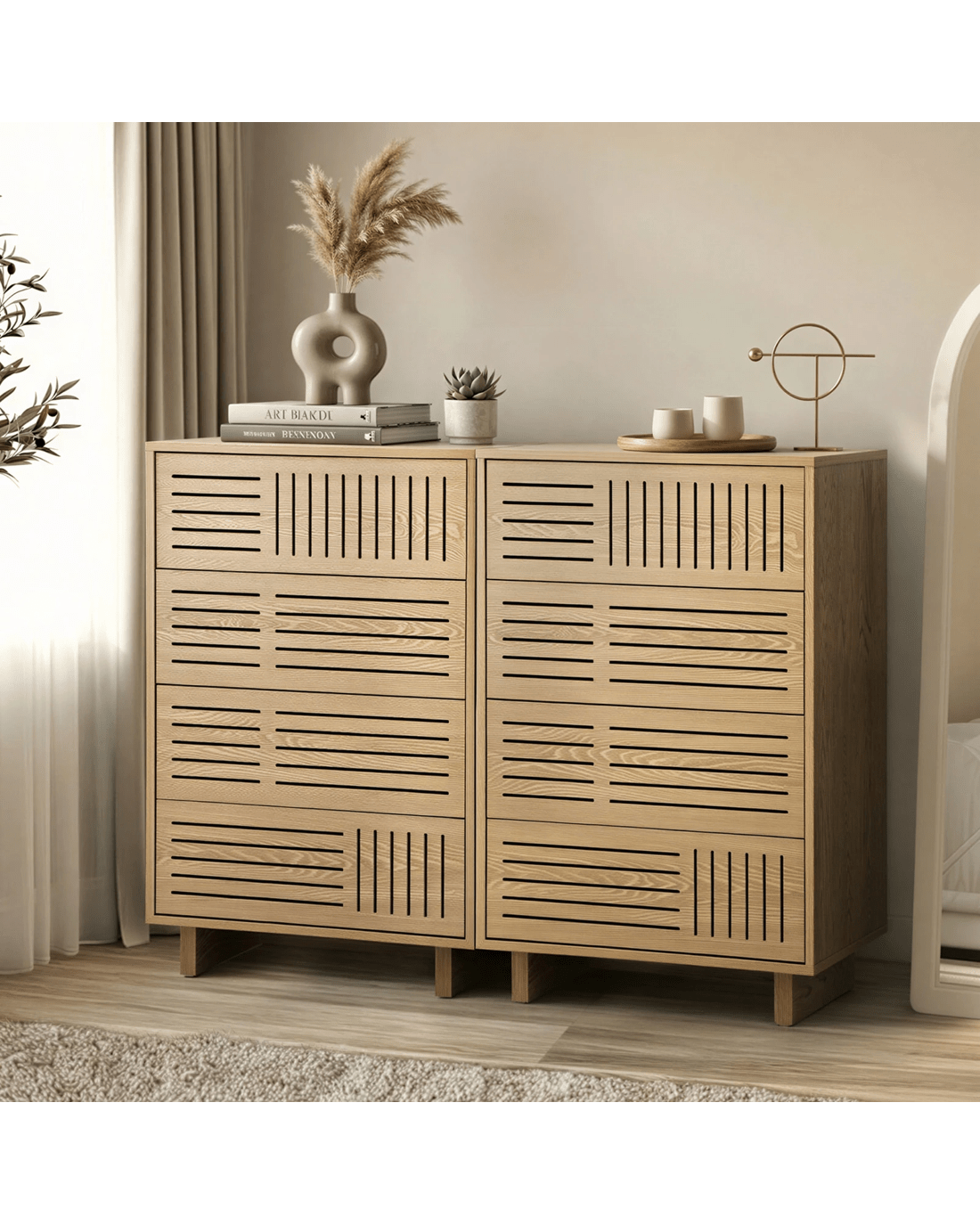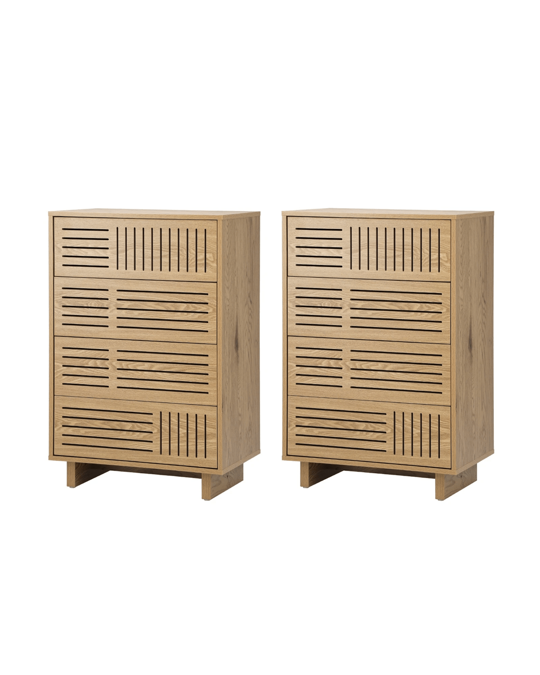 Oikiture 4 Chest of Drawers Storage Cabinet Dresser Tallboy Set of 2 - Natural