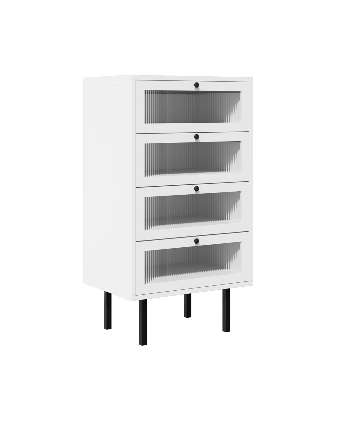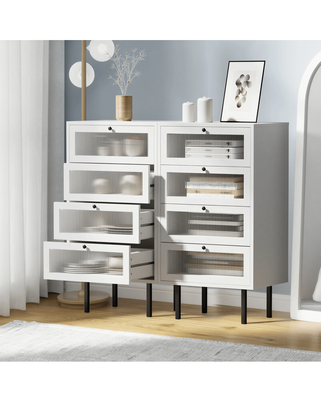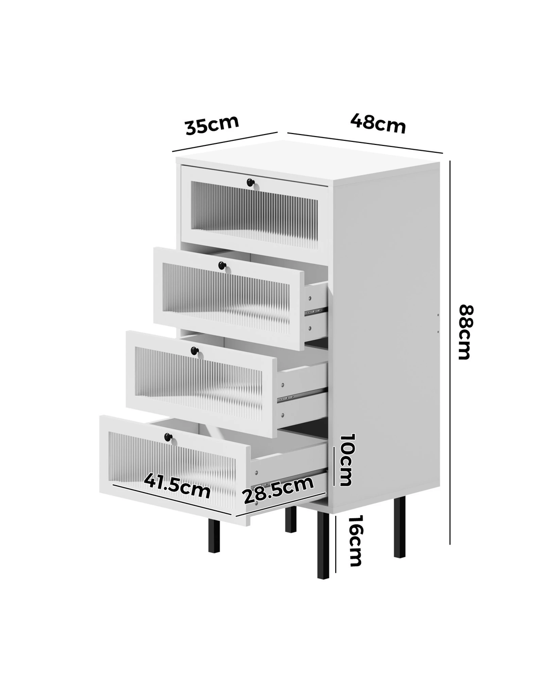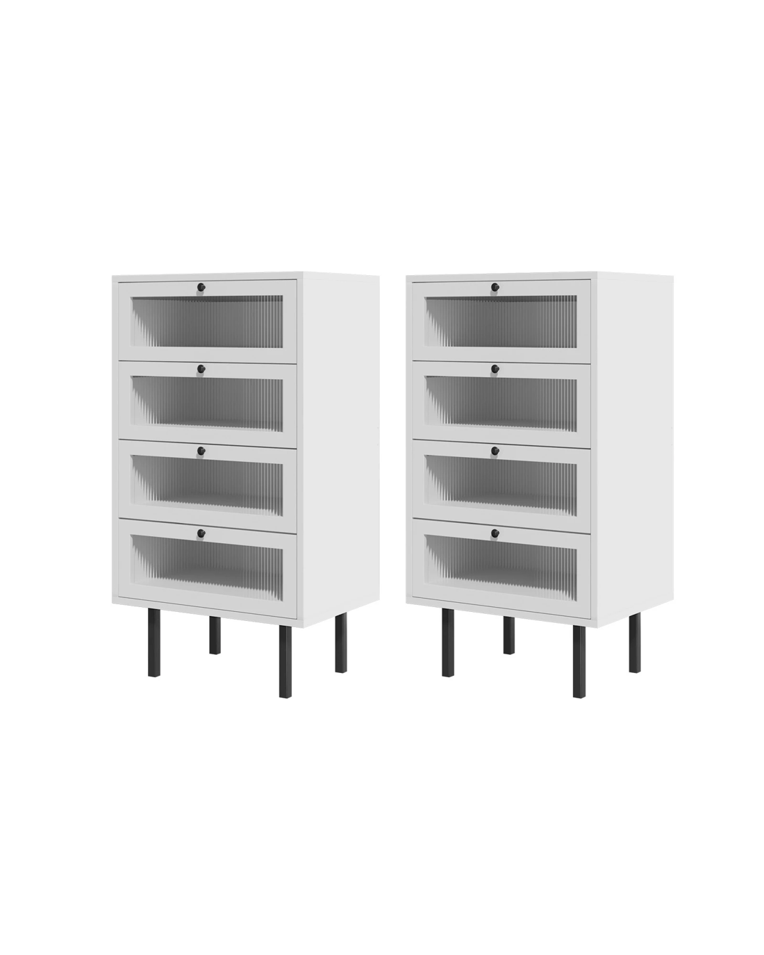 Oikiture 4 Chest of Drawers Tallboy Dresser Storage Cabinet Set of 2 - White