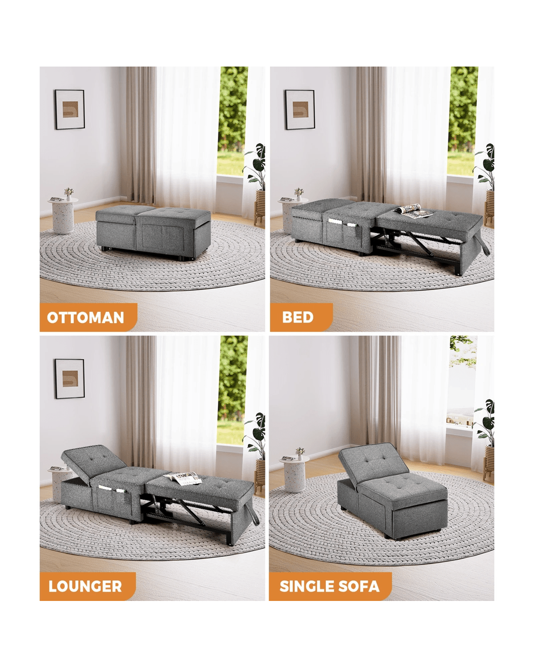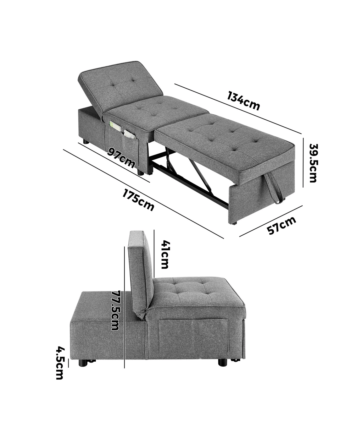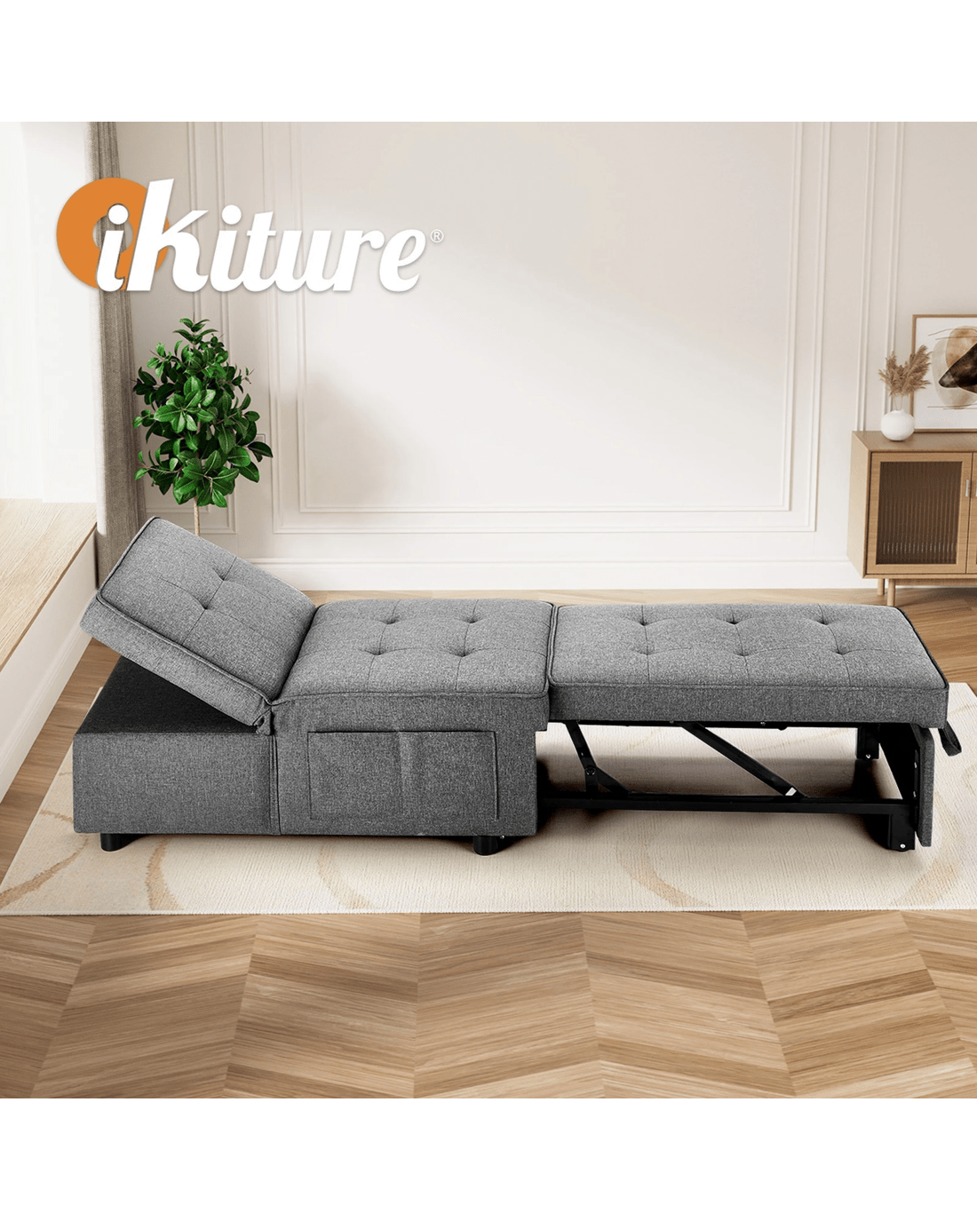 Oikiture 4 In 1 Convertible Sofa Bed Ottoman Couch Lounge Recliner Chair Linen - Grey