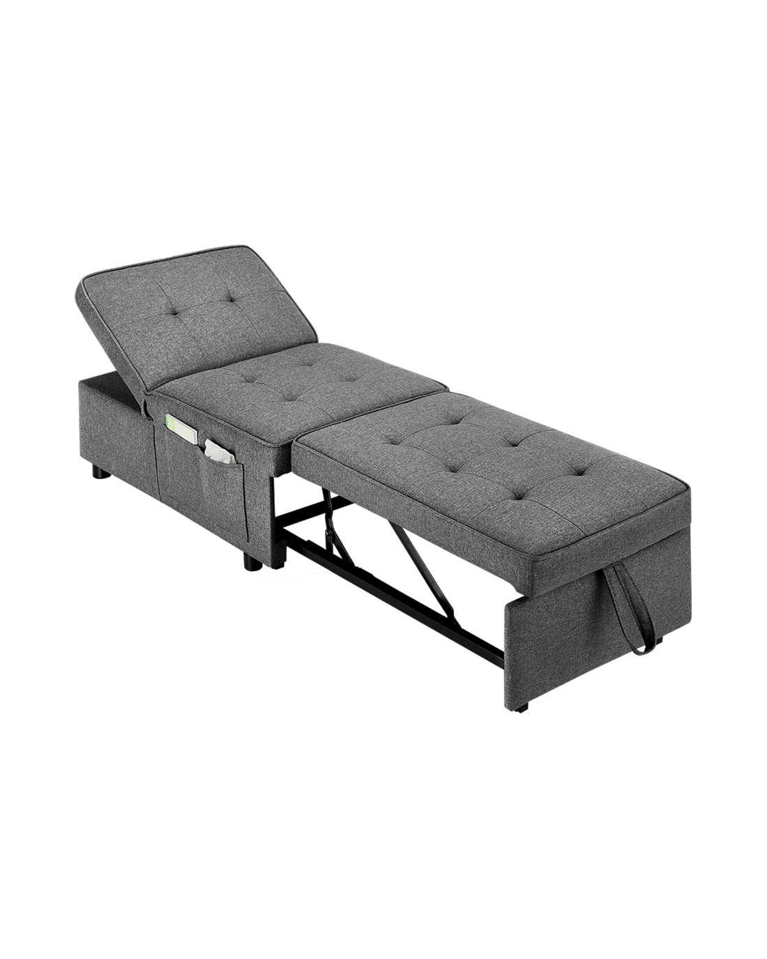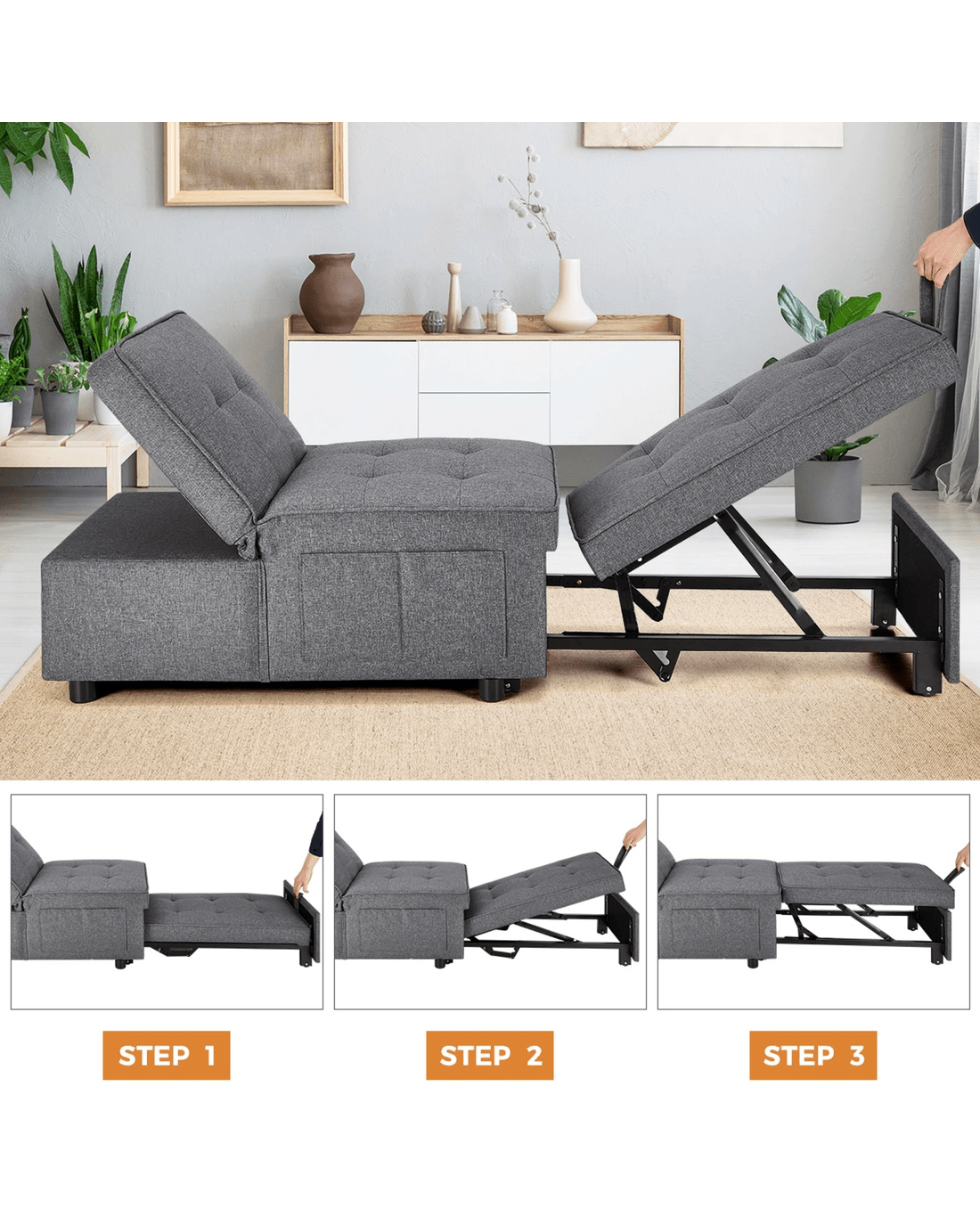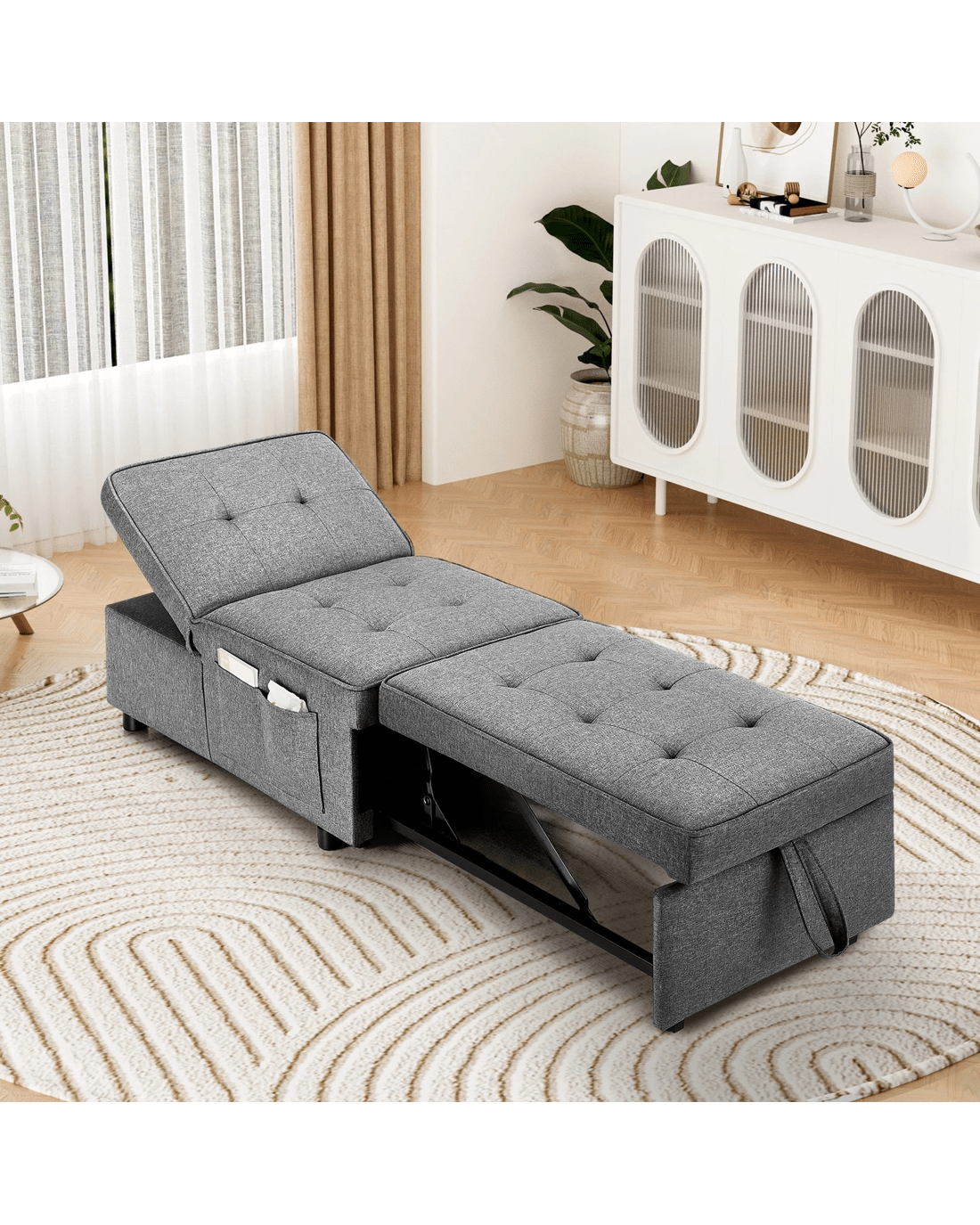 Oikiture 4 In 1 Convertible Sofa Bed Ottoman Couch Lounge Recliner Chair Linen - Grey
