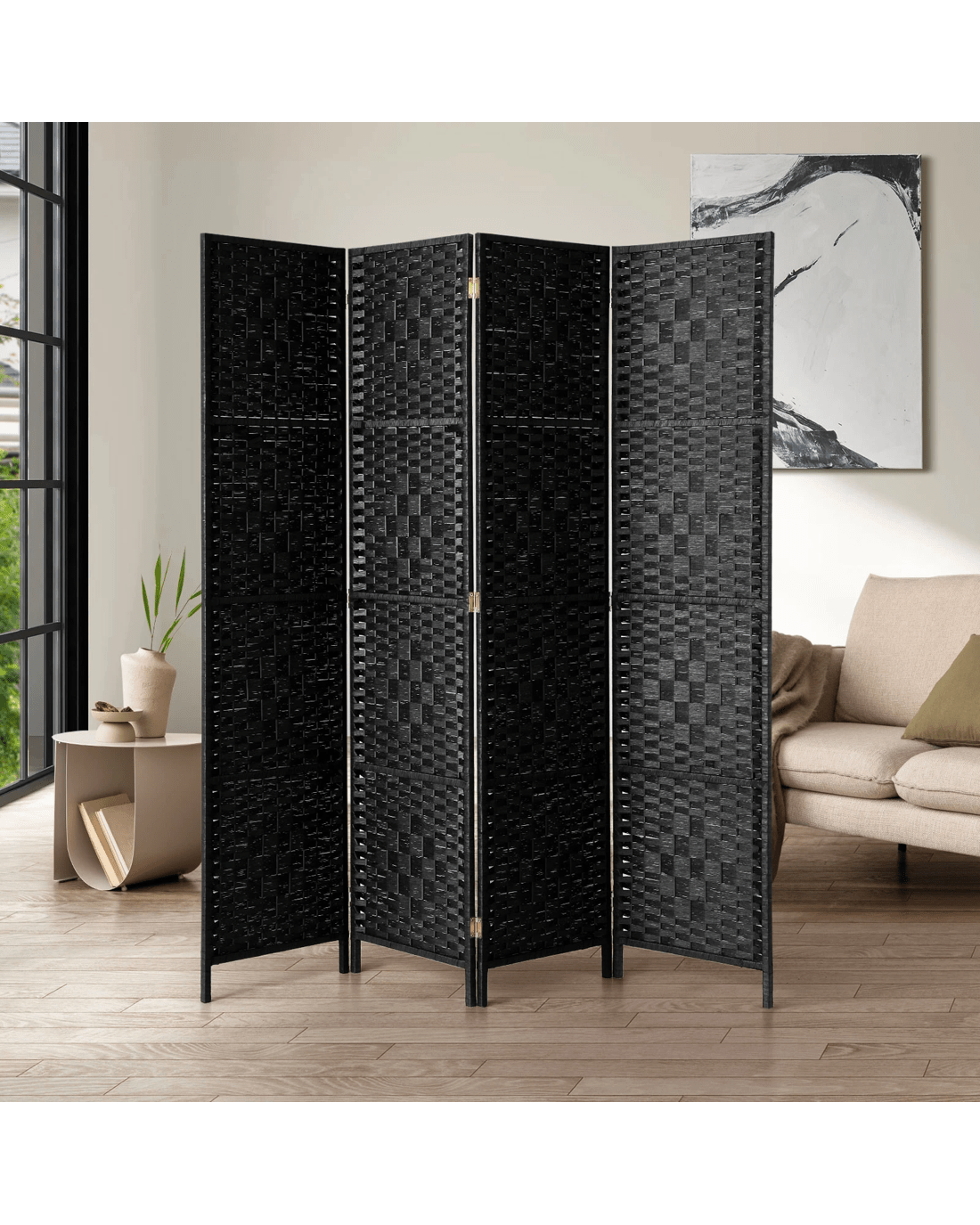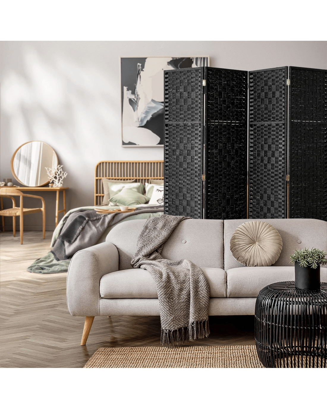 This is great as a privacy screen and also create a separation of spaces. The design of this room divider offers a good amount of privacy, with its tall design and stunning weaved rattan panels that also allows natural light to shine through.