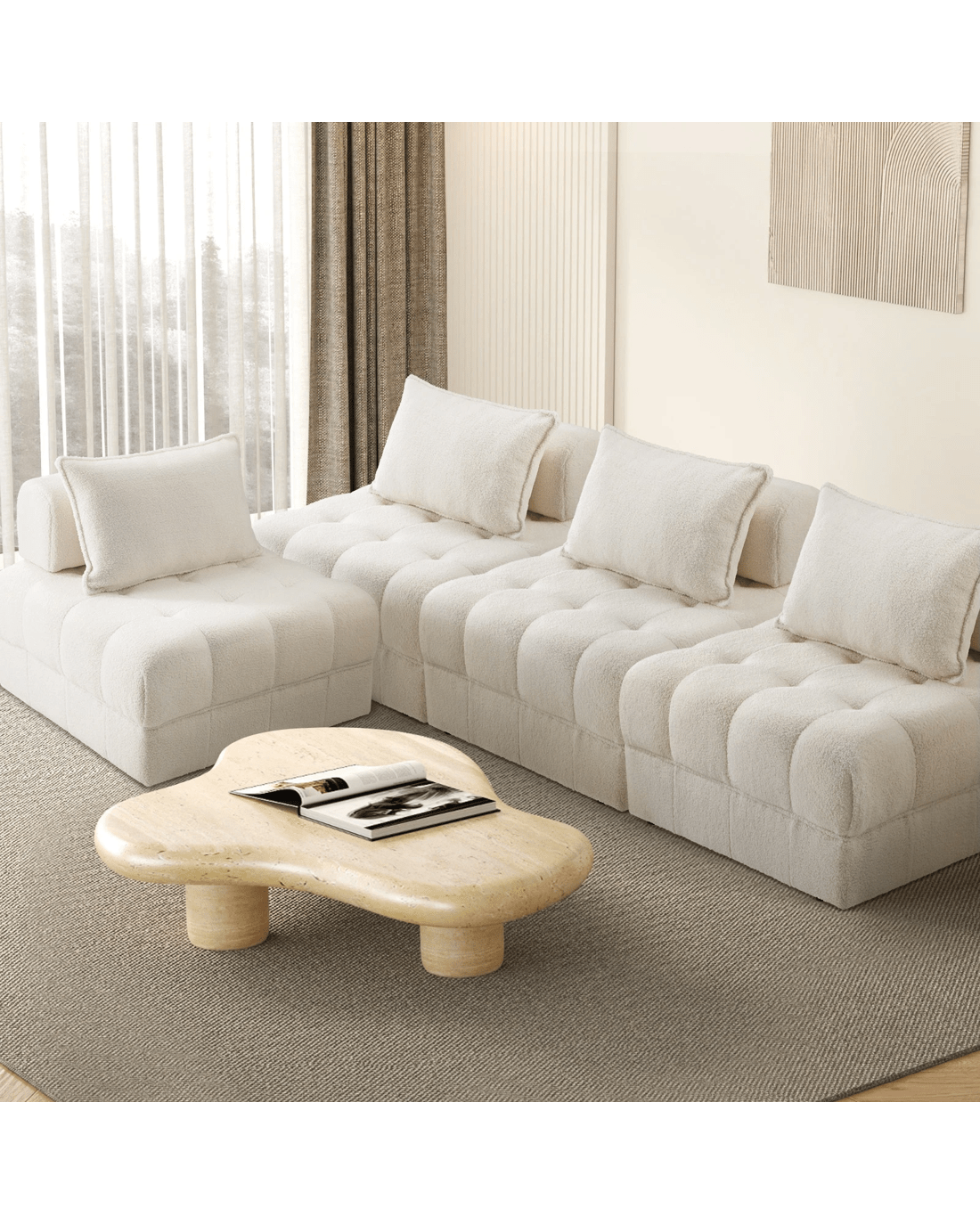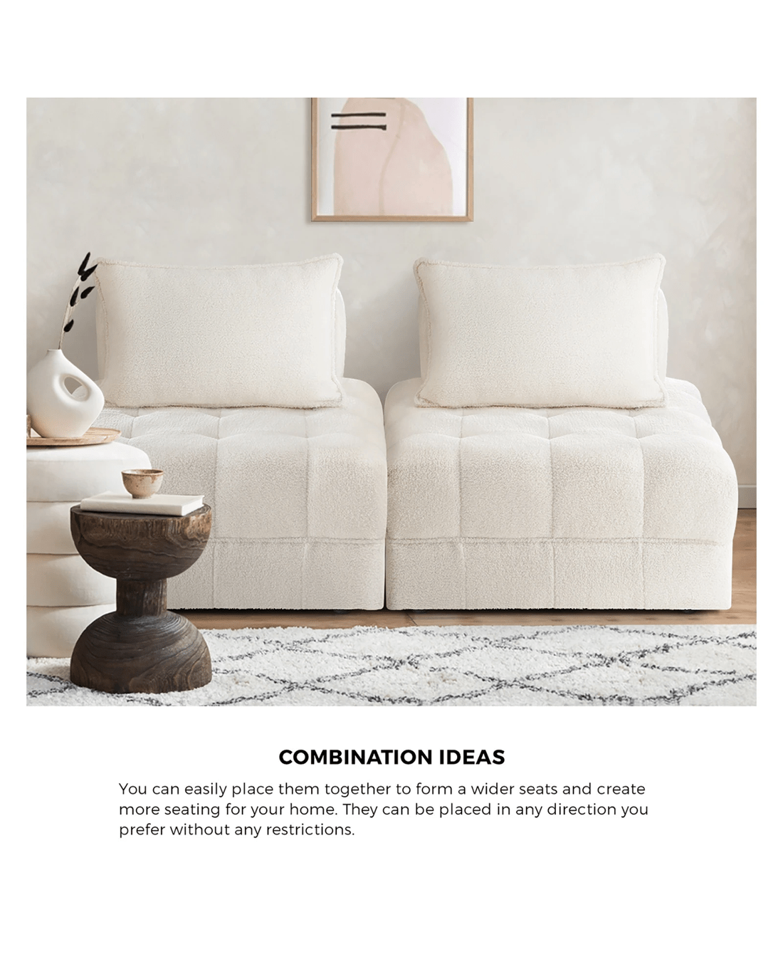 Sold by Kamprad's Oikos 1943Oikiture 4 Seater Boucle Modular Sofa Lounge Chair Armless Tofu Back - White - White