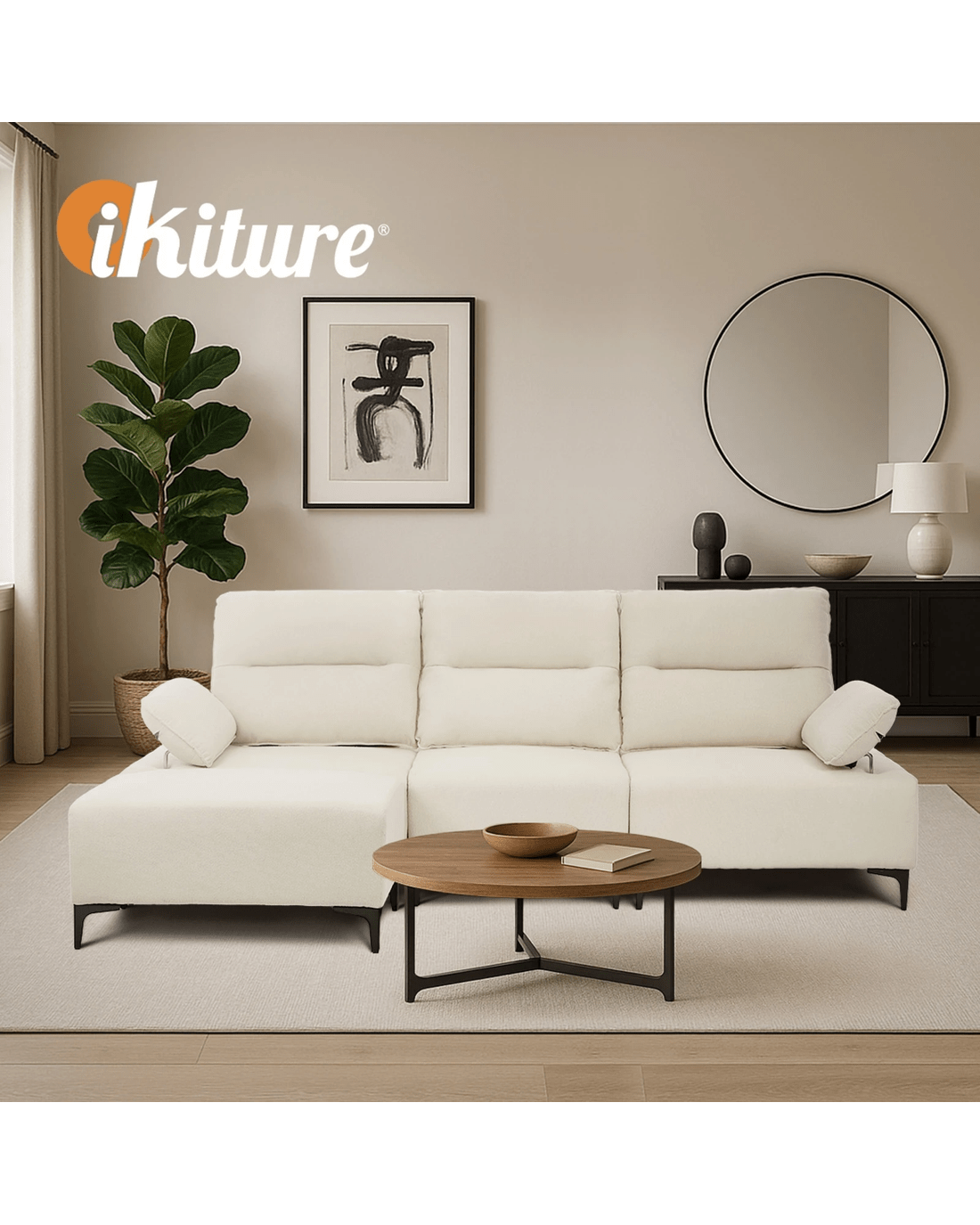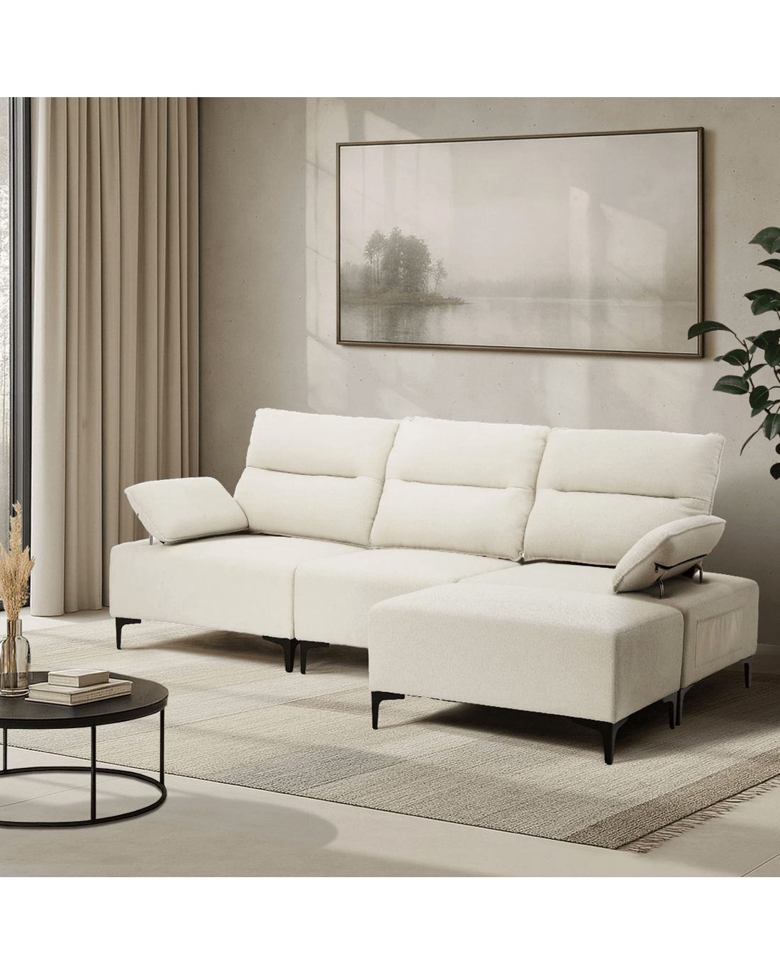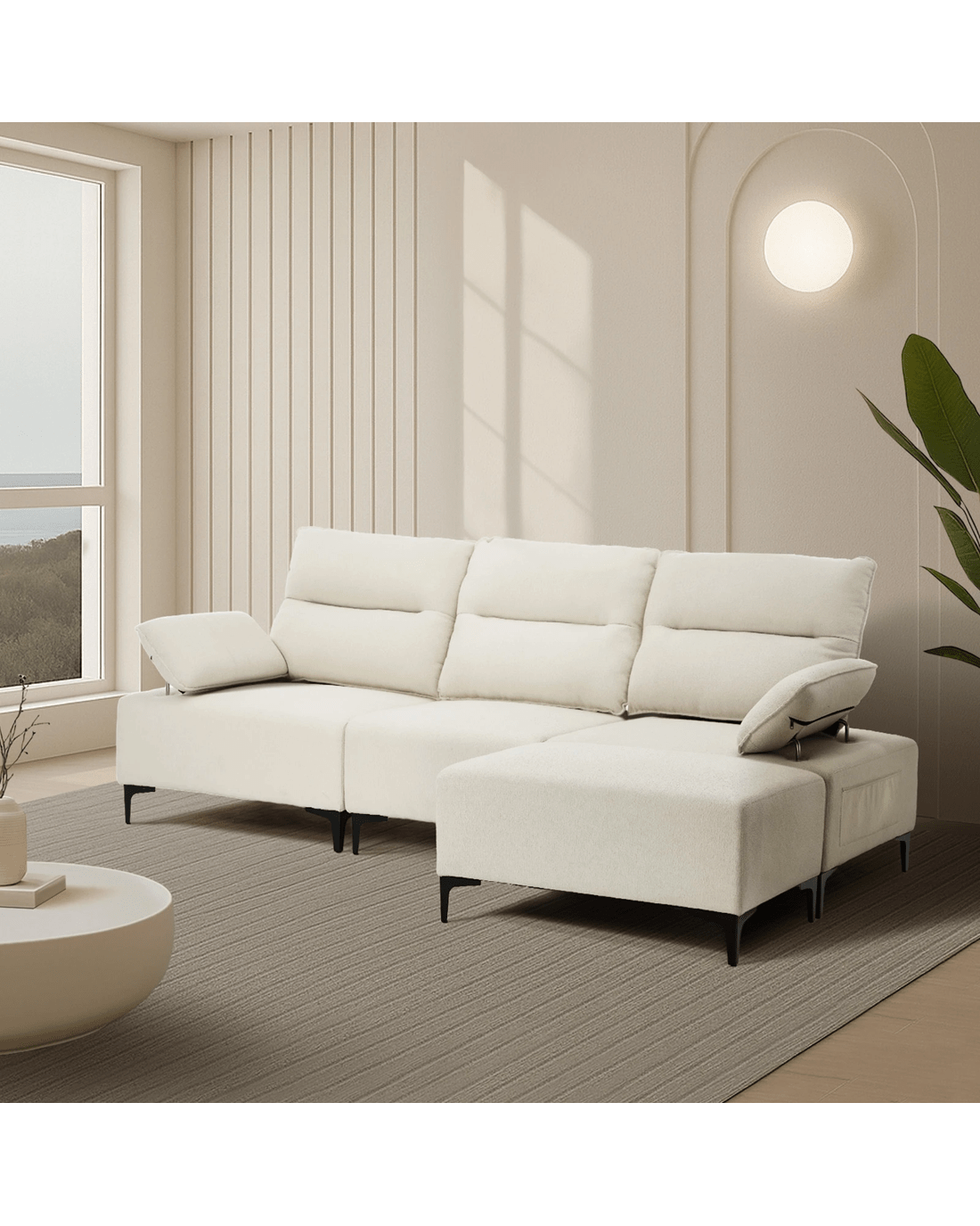 Sold by Kamprad's Oikos 1943Oikiture 4 Seater Chenille Modular Sofa Couch Ottoman - Beige