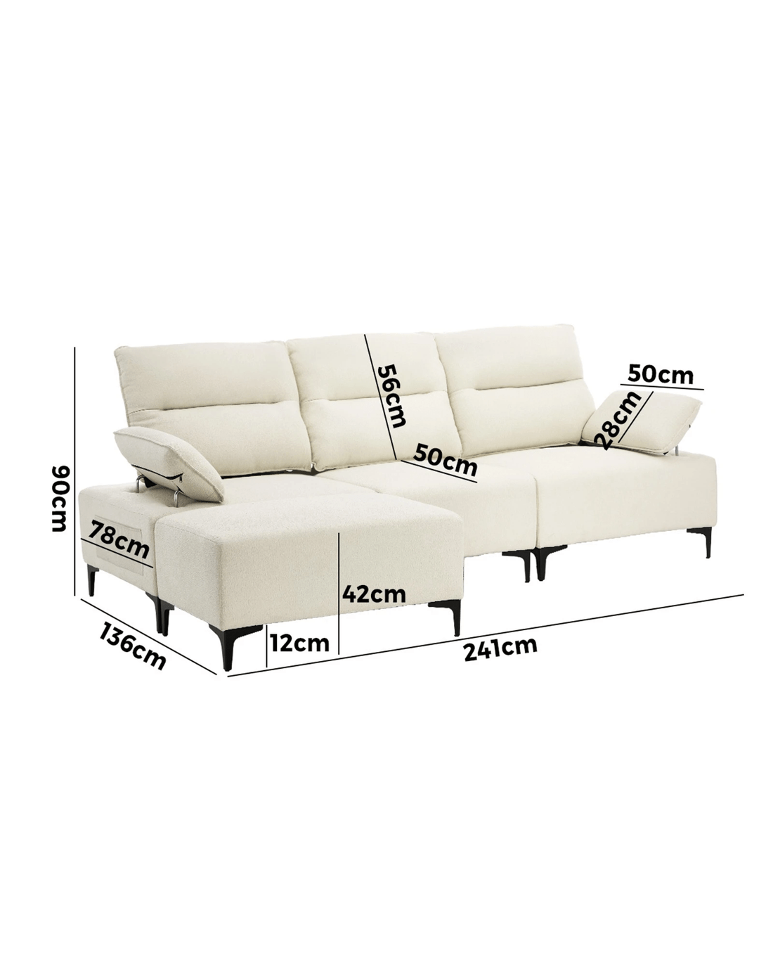 Seater dimensions: 241cm x 78cm x 90cm