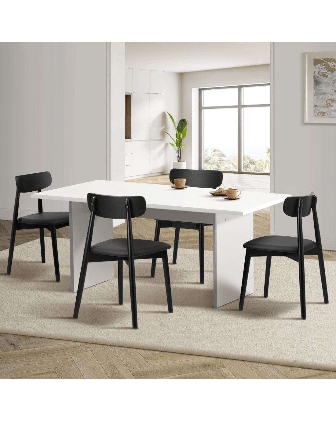 Oikiture 4-Seater Dining Table and Chairs Wooden Furniture Set - Black