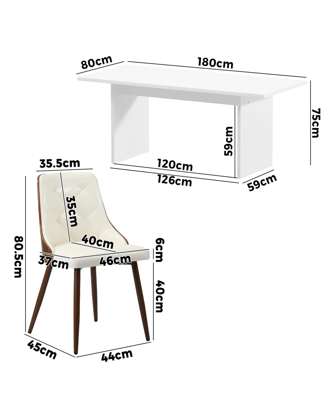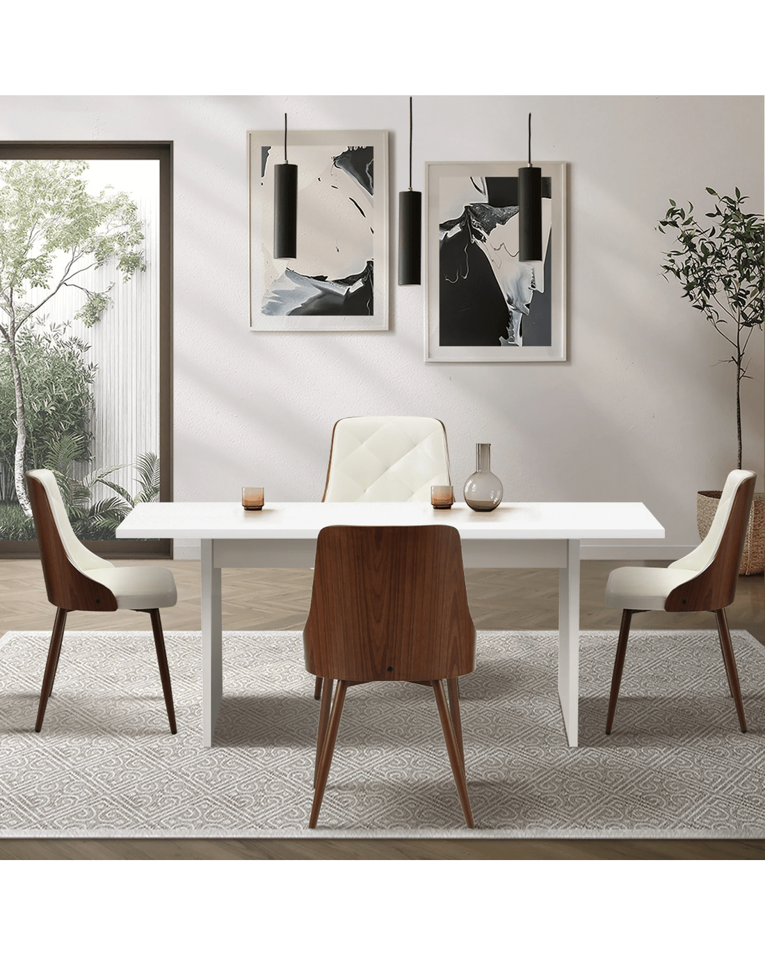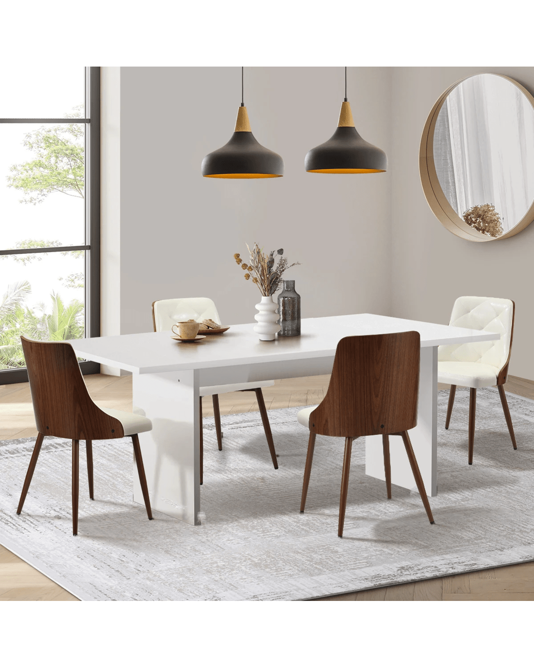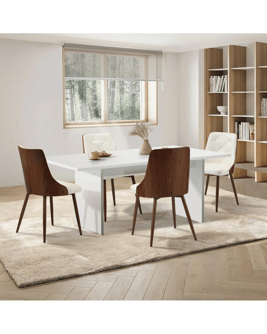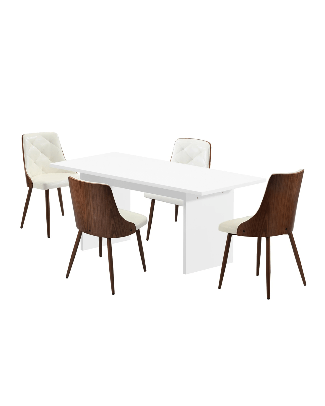 Oikiture 4-Seater Rectangular Dining Table and Chairs Wooden Kitchen Dining Set - White